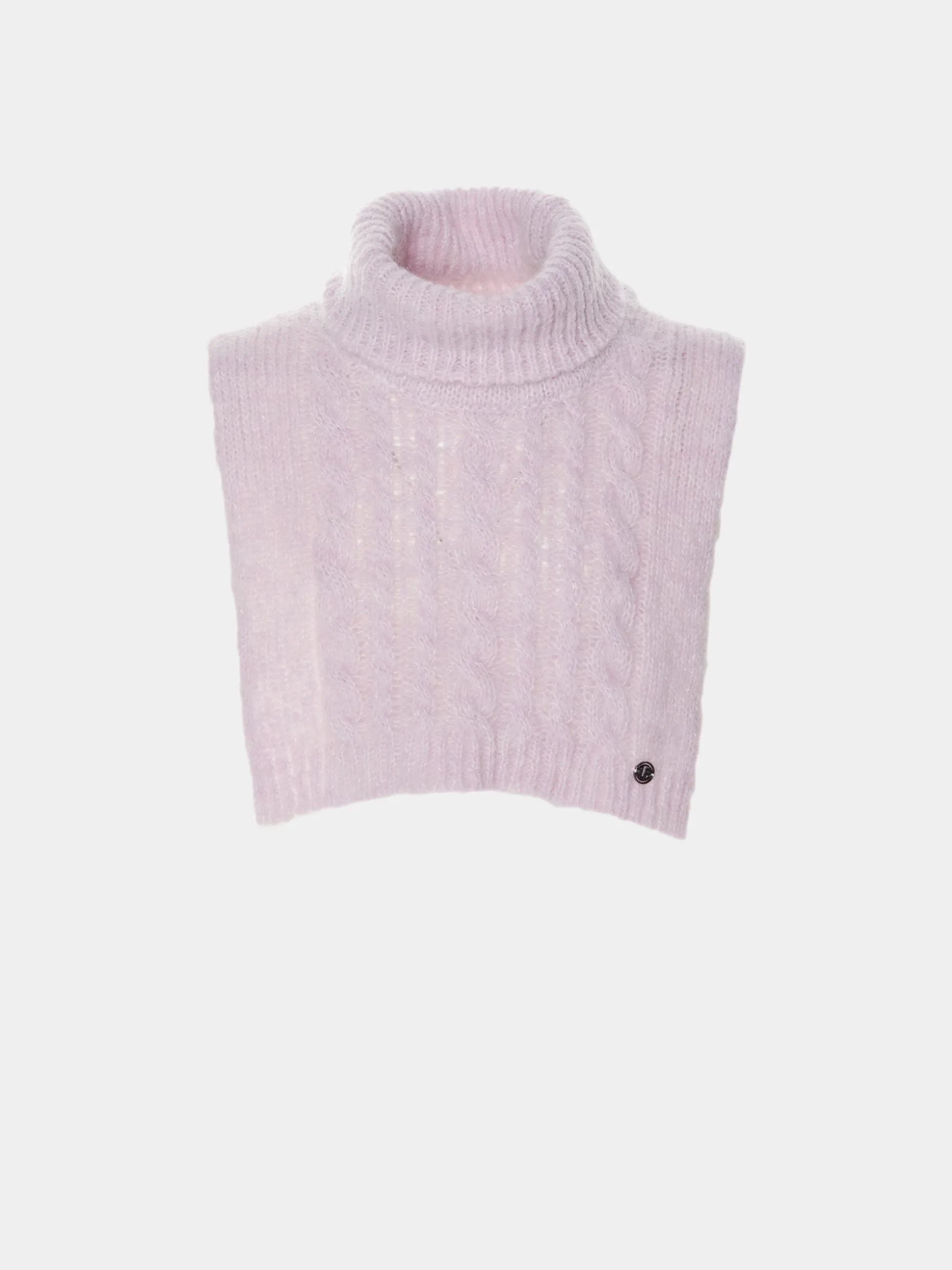 Capa de gola alta confecionada com alpaca e lã. Estrutura trançada.