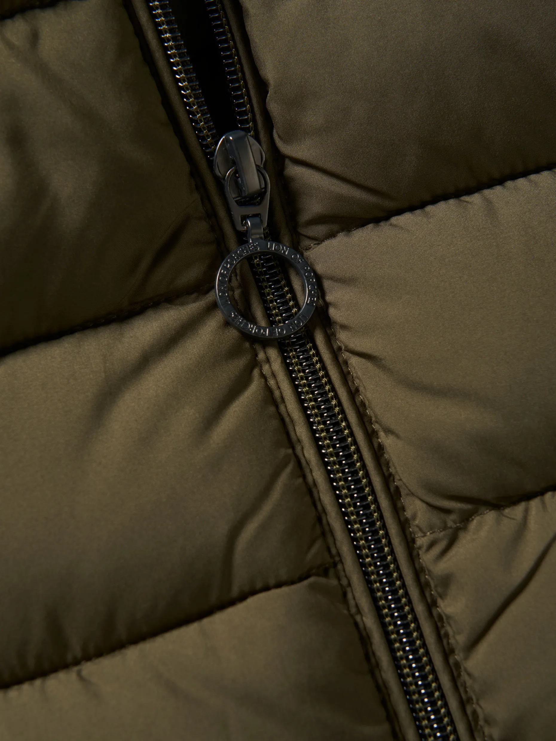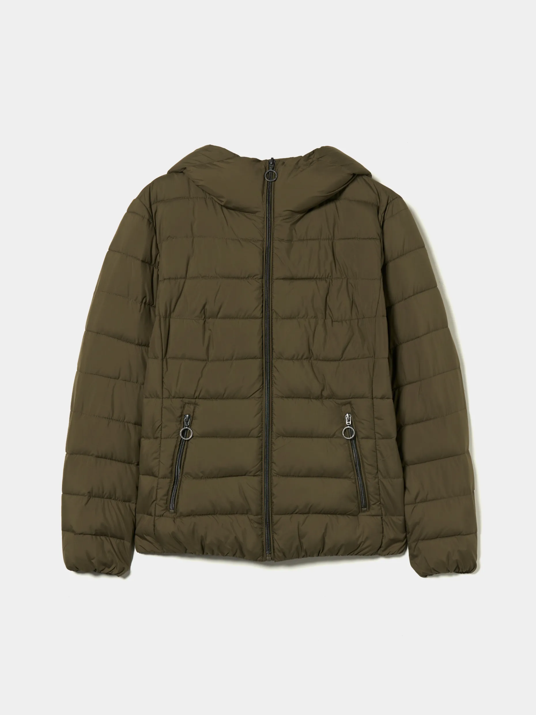 Proteja-se da chuva e do frio com este casaco acolchoado com capuz. Com abertura por fecho de correr e bolsos com fecho na frente.