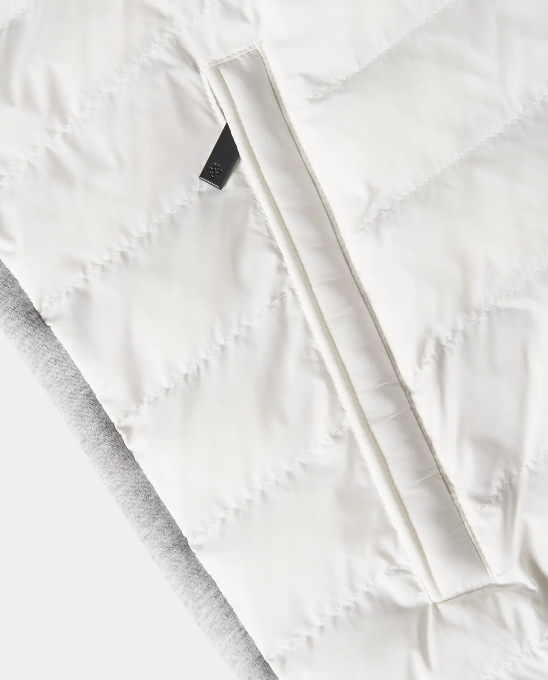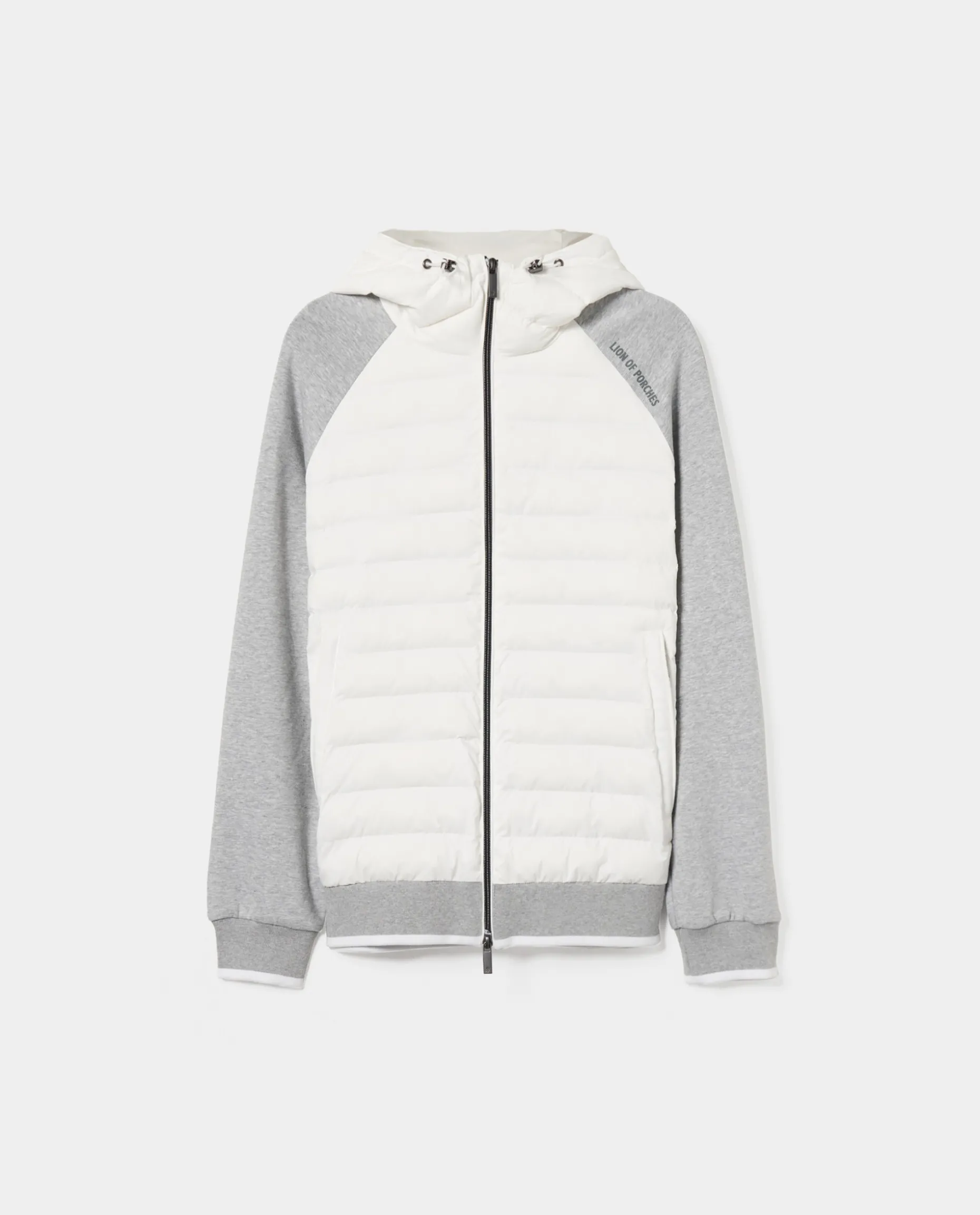 Adicione uma camada extra quente e confortável ao seu look mais descontraído com este casaco de malha combinado com frente e capuz acolchoados. Aperta através de fecho de correr de duplo cursor. O capuz é ajustável. Pormenores canelados na base e punhos que finalizam com risca em contraste. Conta ainda com bolsos laterais.