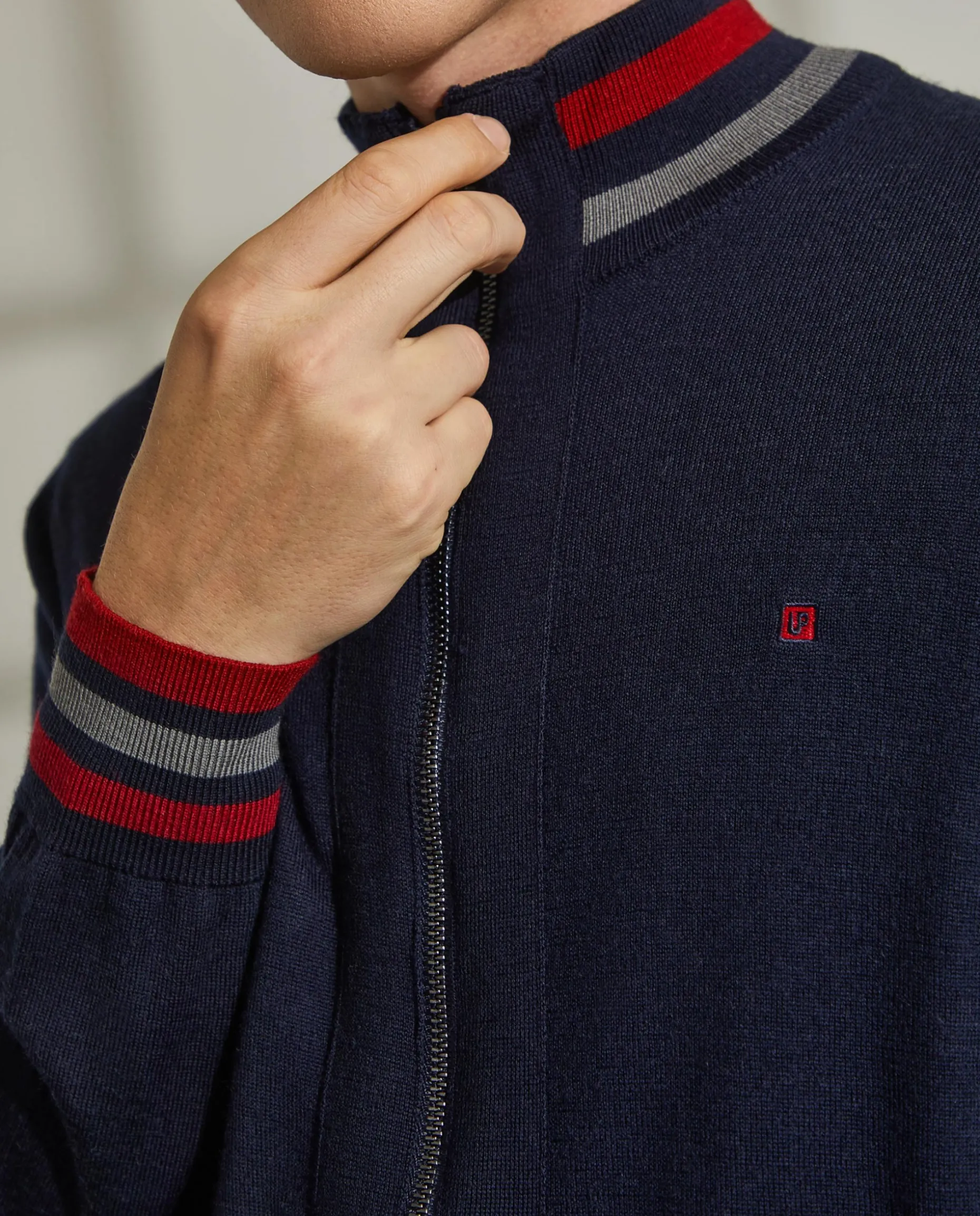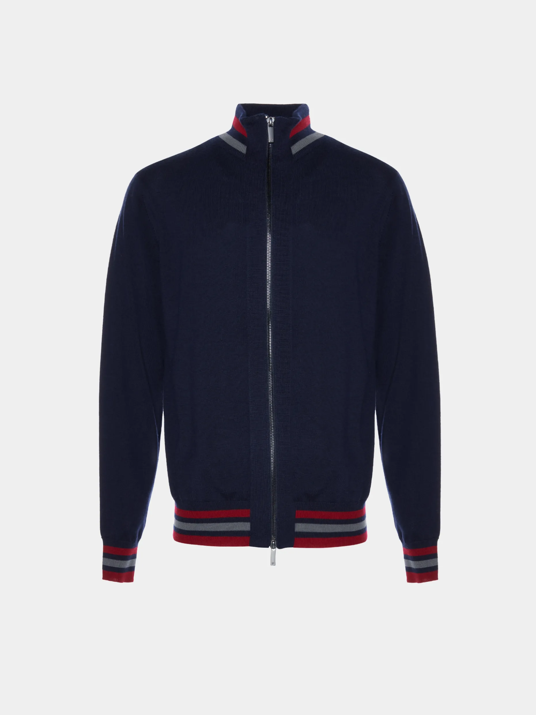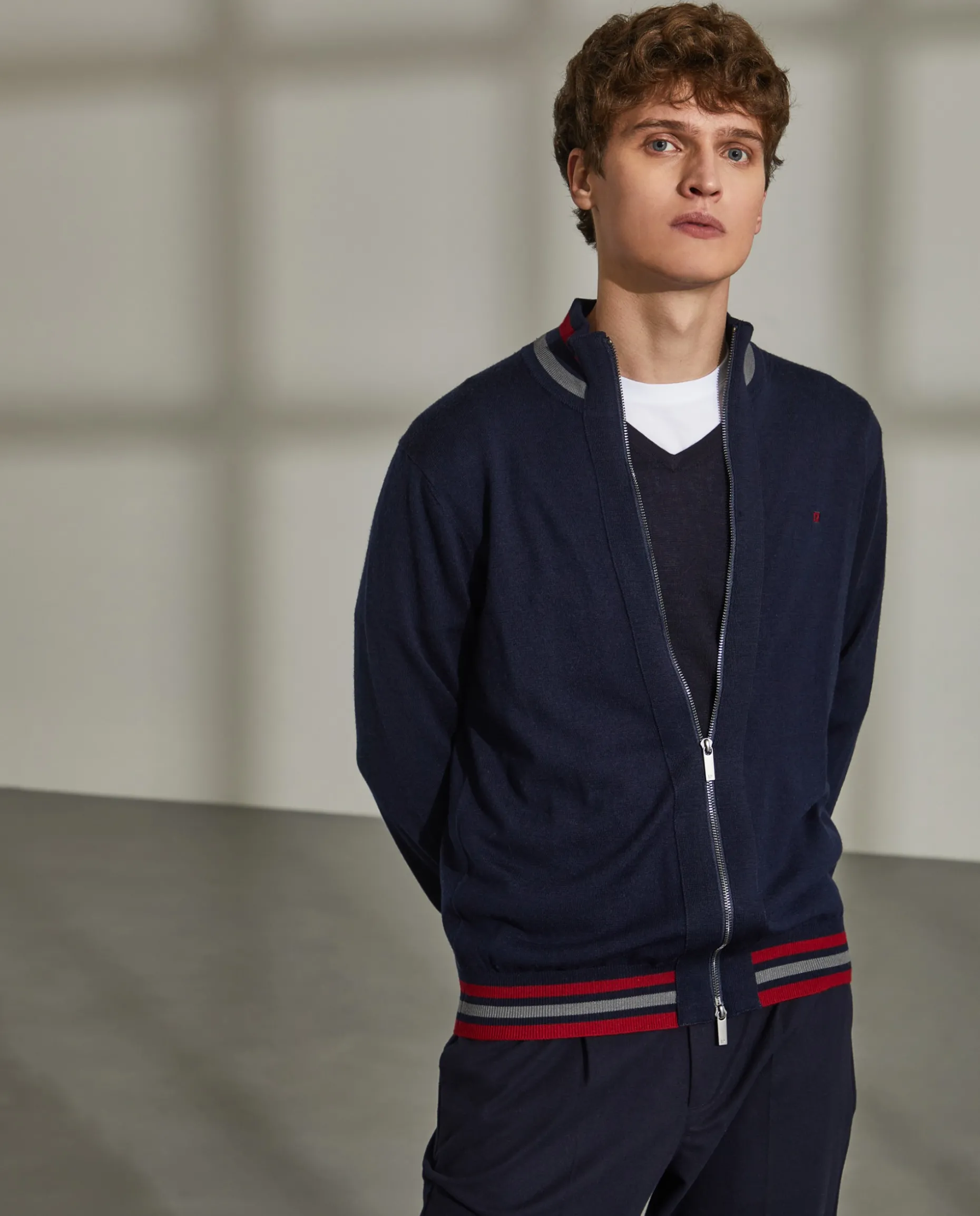 Agasalhe-se com sofisticação graças a este casaco de lã merino. Com mangas compridas, apresenta um fecho duplo na frente e com riscas contrastantes na gola, punhos e cintura. O bordado LP no peito é o toque final perfeito.