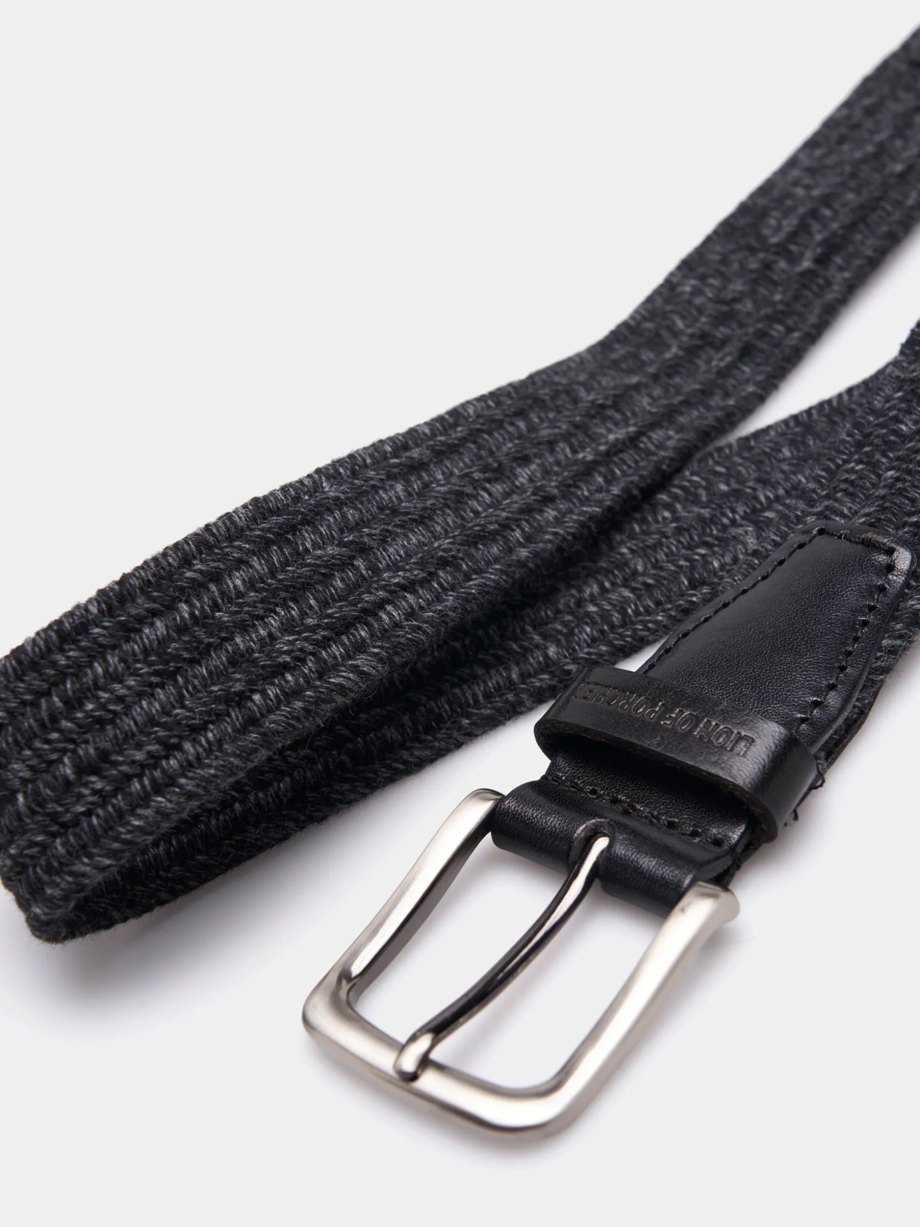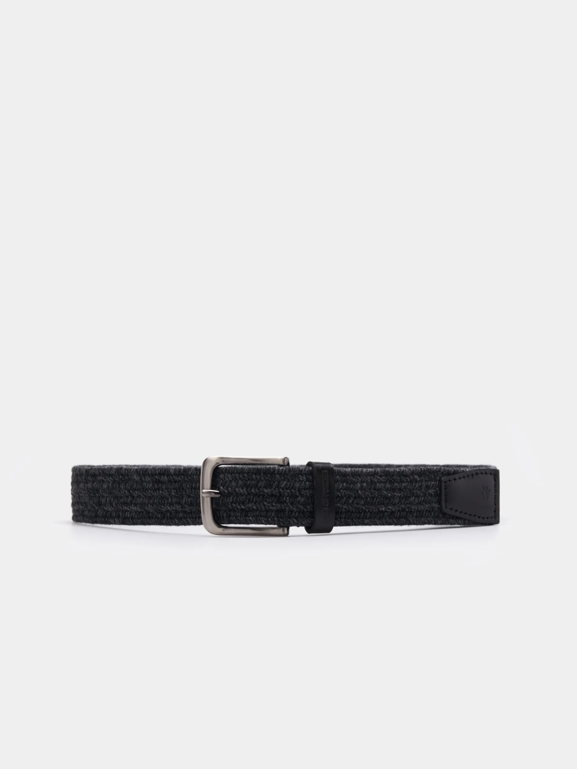 Cinto elástico entrançado. Fivela em metal e pormenor de branding Lion of Porches gravado na presilha.