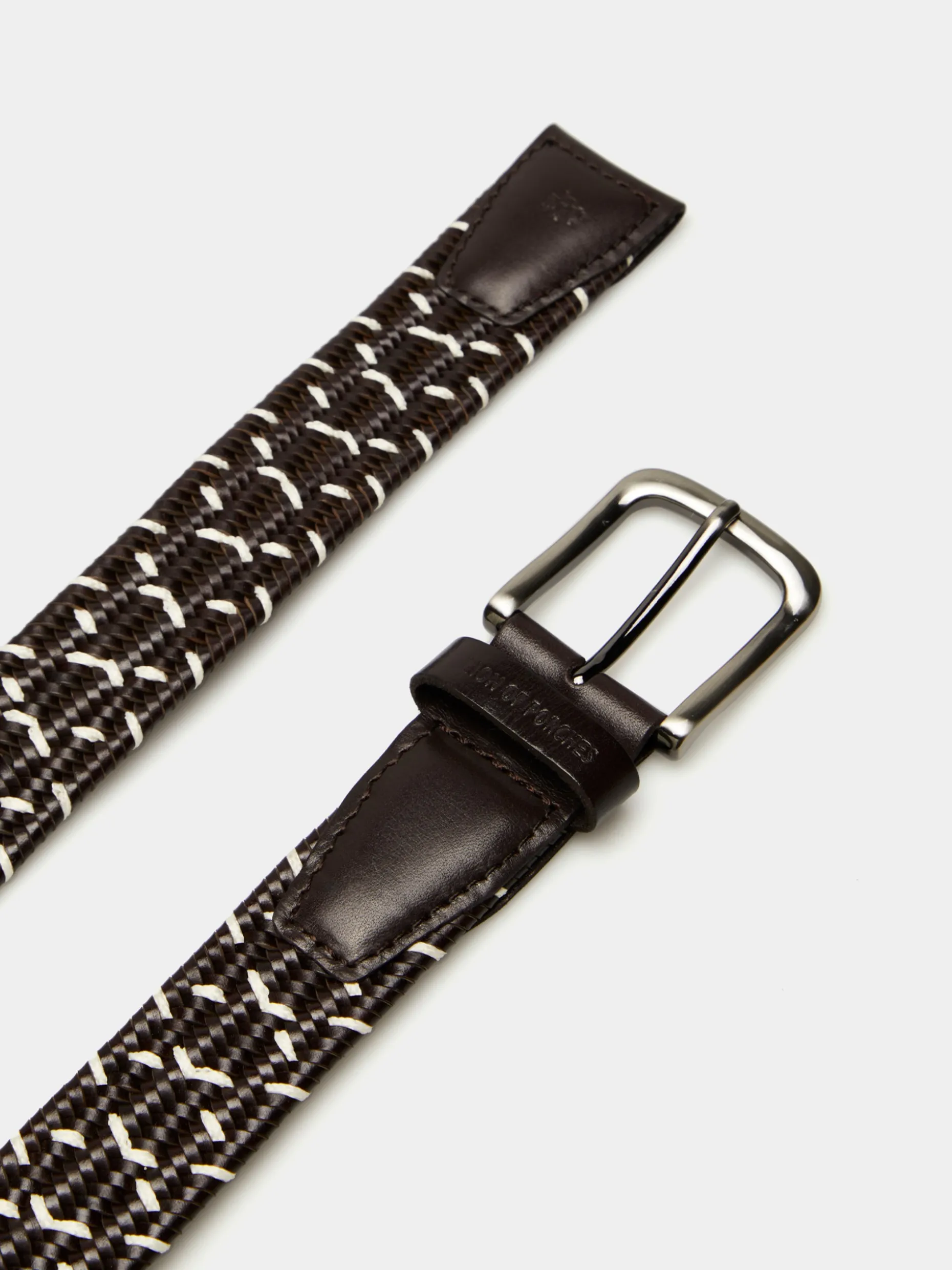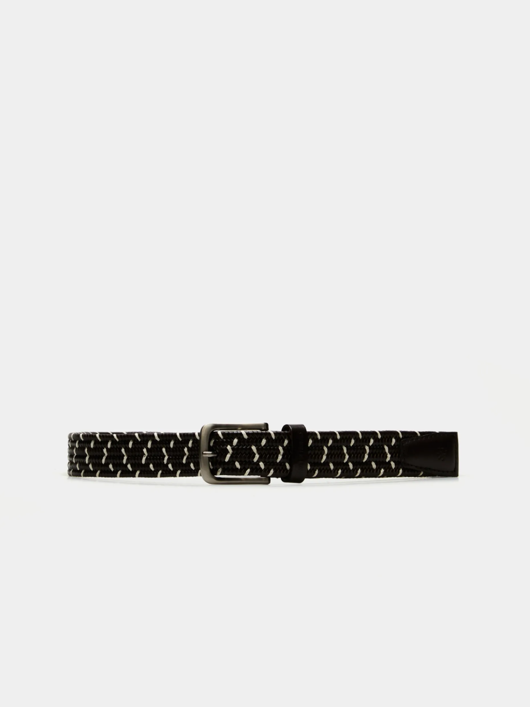 Cinto entrançado 100% pele. Fivela em metal e pormenor de branding Lion of Porches gravado na presilha.