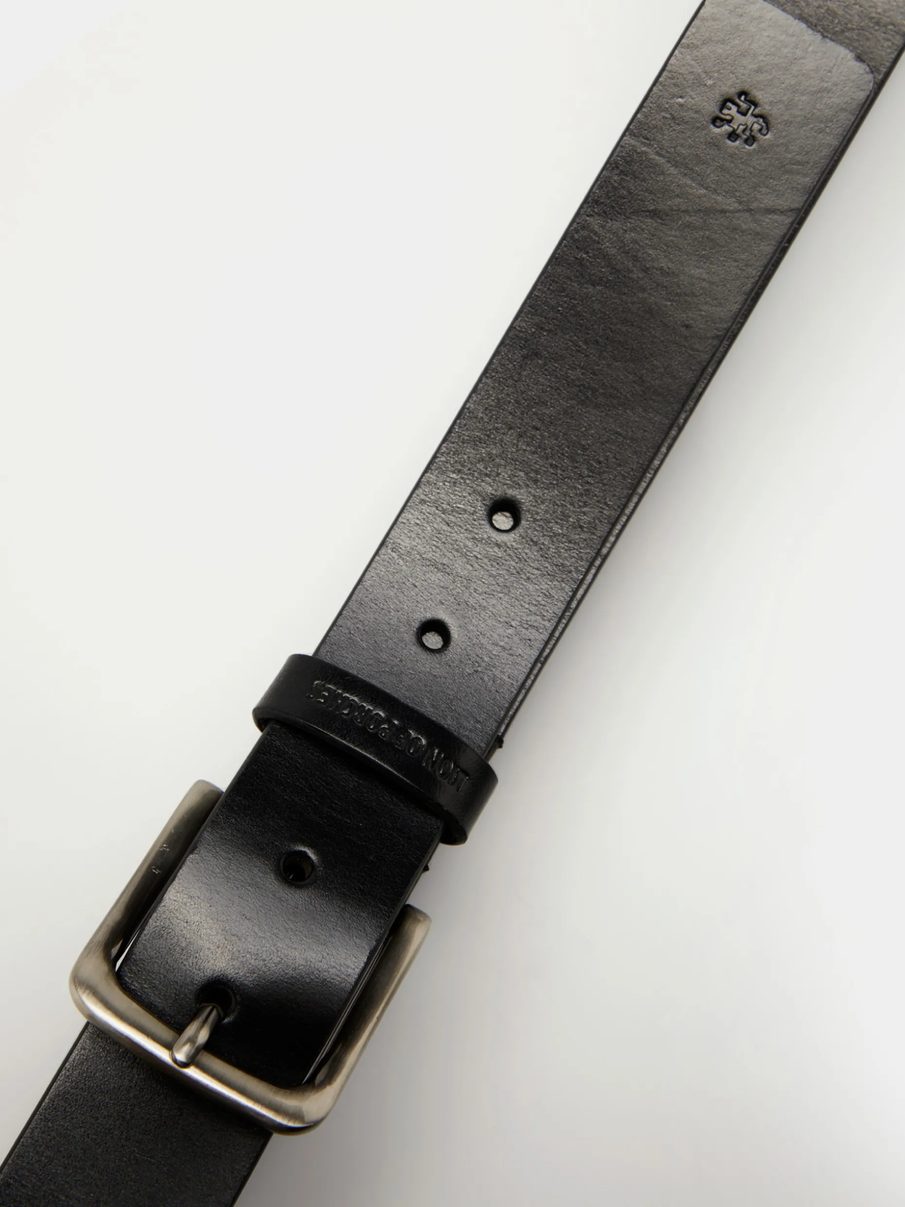 Cinto liso em pele com 3,5cm de largura. Fivela em metal e pormenor de branding Lion of Porches gravado na presilha.