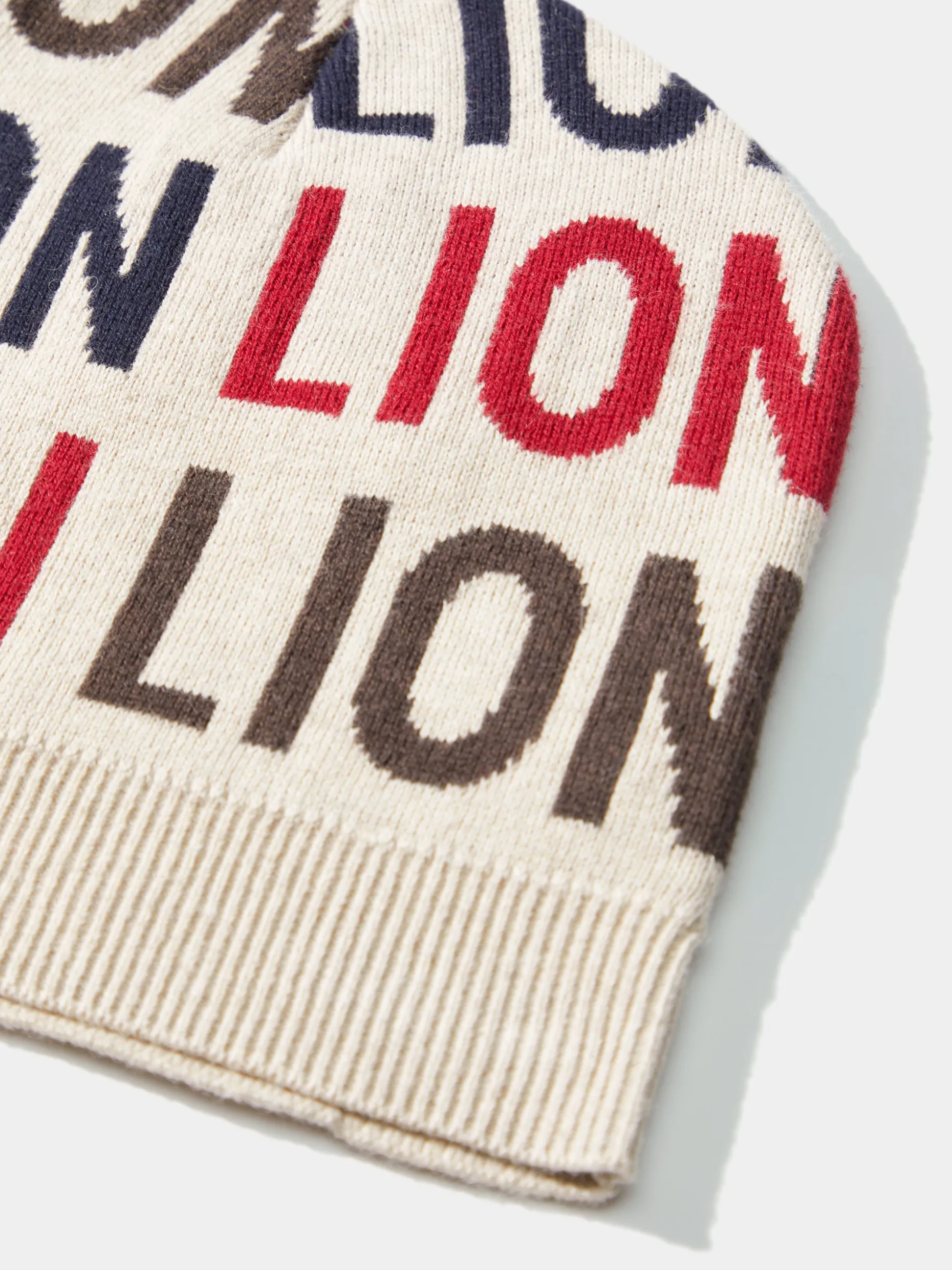 Gorro confecionado em algodão e caxemira com lettering em jacquard.