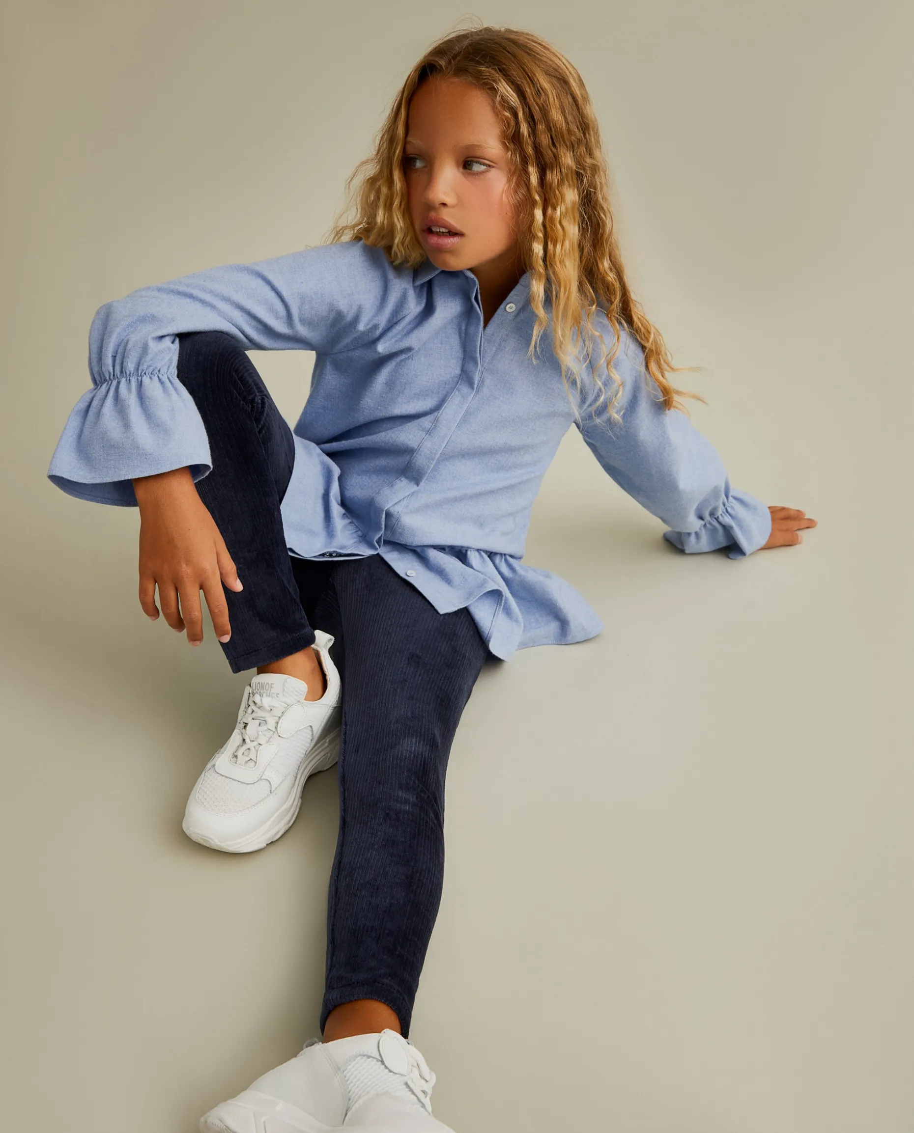 Leggings de veludo canelado confecionadas com algodão stretch. A cintura é elástica e finalizam com duas aberturas laterais na bainha. Pelo conforto, são perfeitas para usar no dia-a-dia, pelo toque aveludado, são também uma excelente escolha para um evento mais formal.