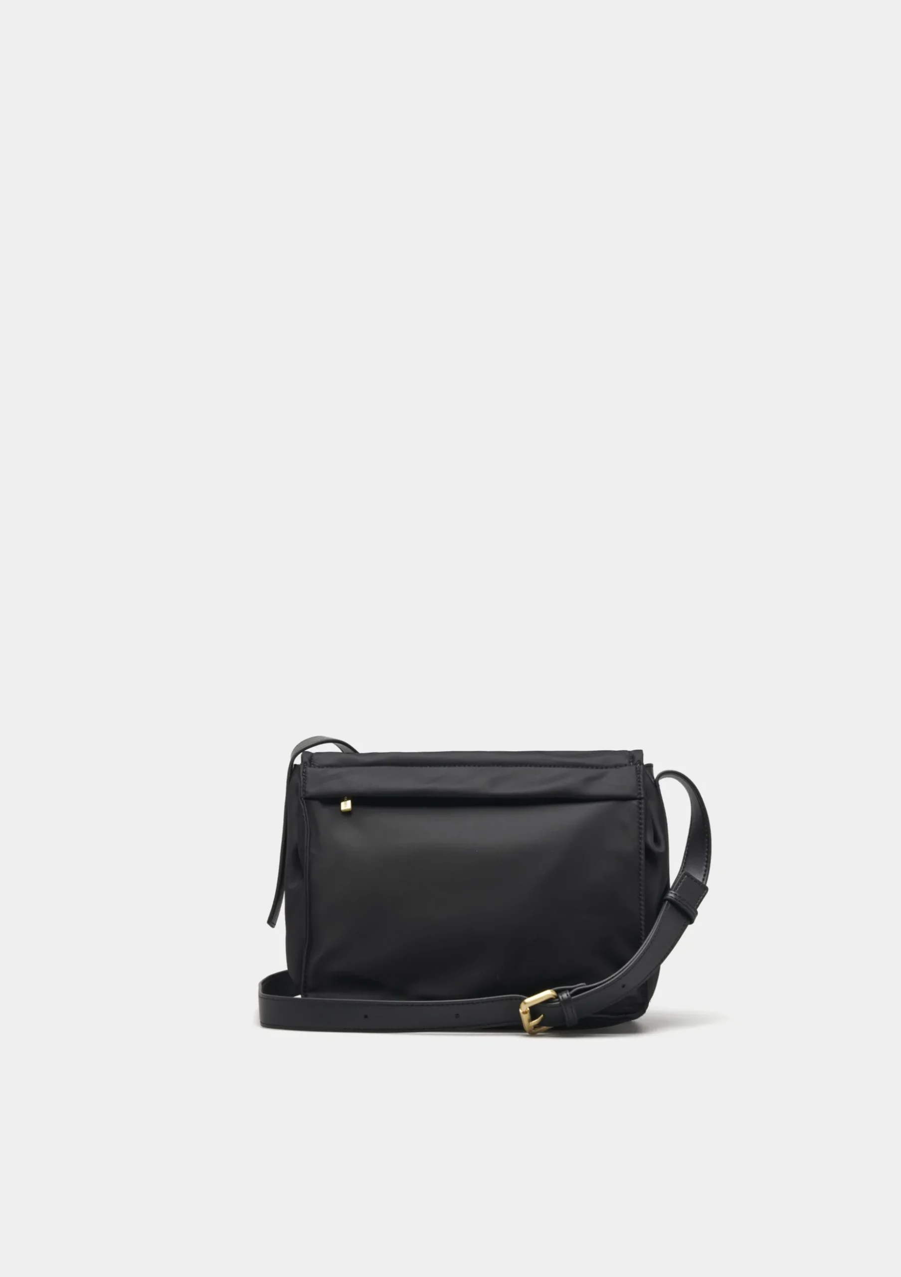 Perfeita para o dia-a-dia, esta mala a tiracolo em nylon tem formato retangular. Com alça fixa ajustável. Fecha na frente através de íman na pala. No interior, três compartimentos.