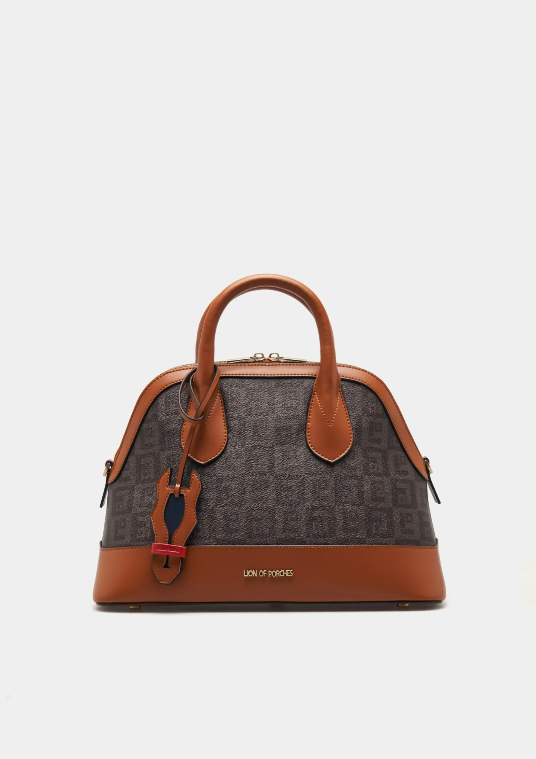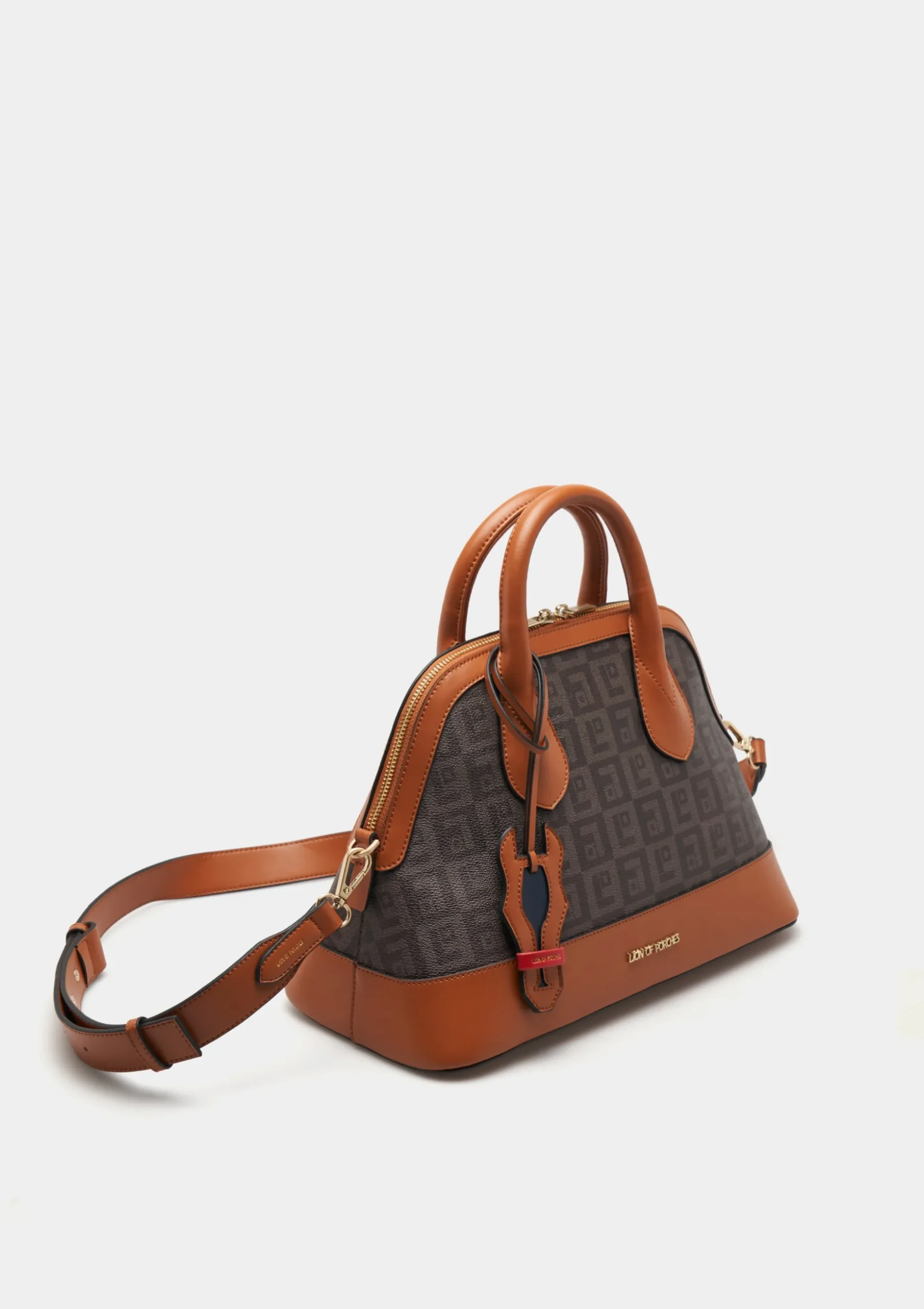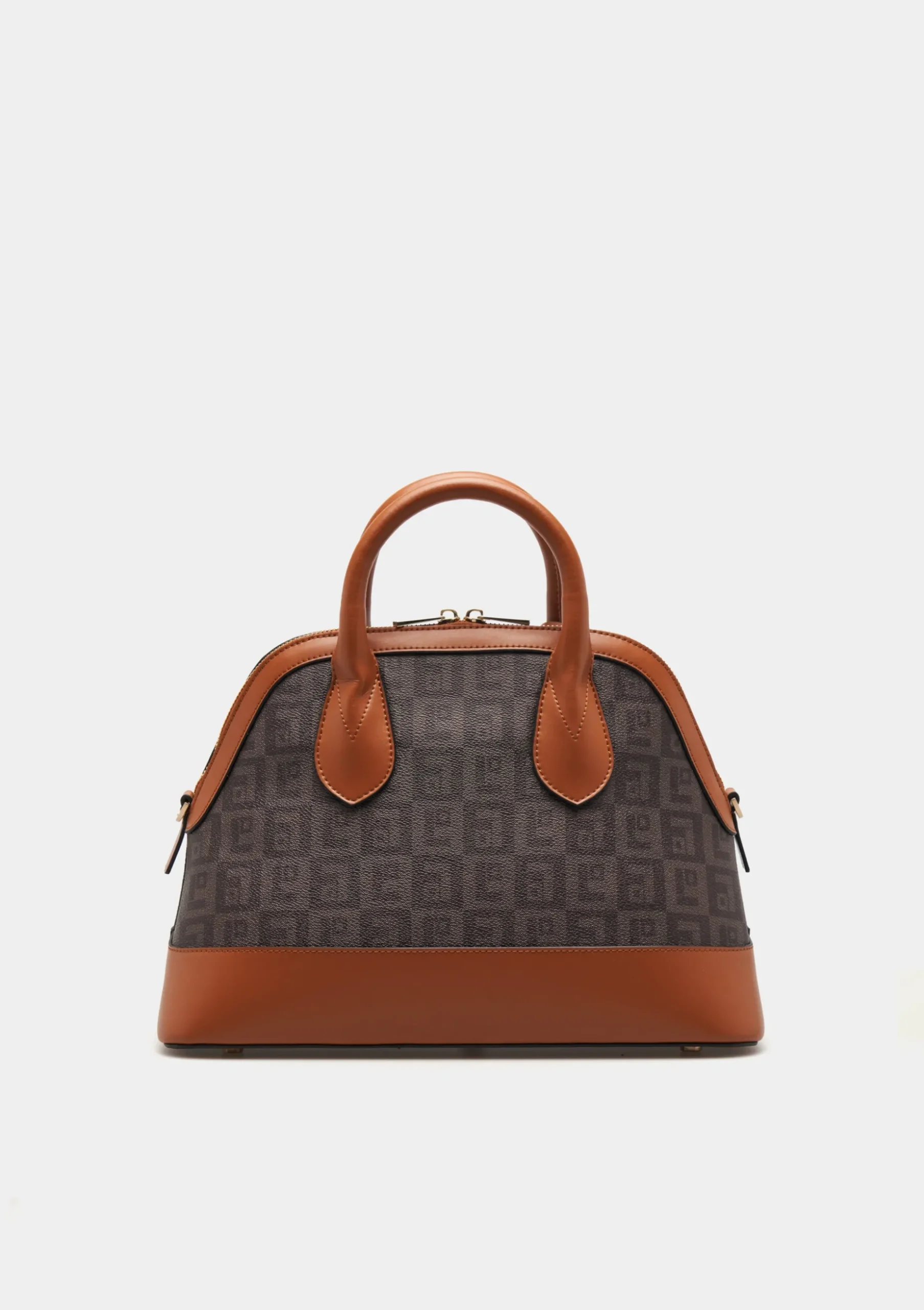Adicione um toque de personalidade ao seu outfit com esta city bag com monograma estampado. Com contraste de cor na base, alças e parte do fecho. Tem dupla alça de mão fixa e outra alça longa ajustável e removível. Pormenor de penduro com forma de cavalo.