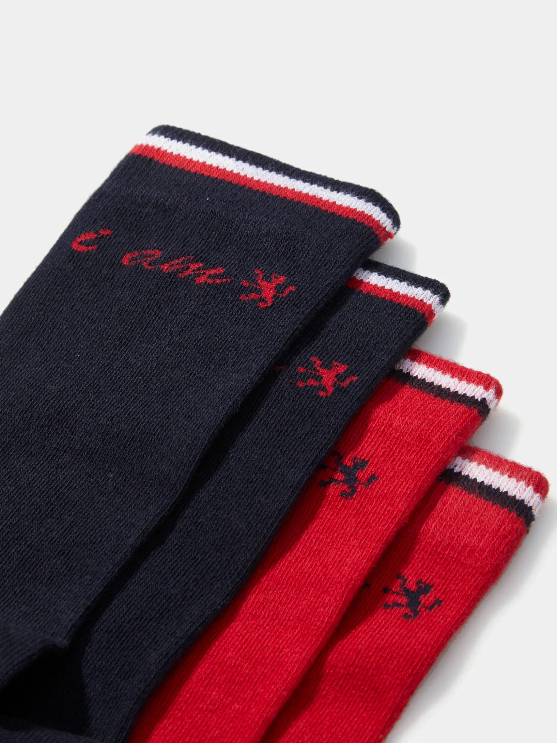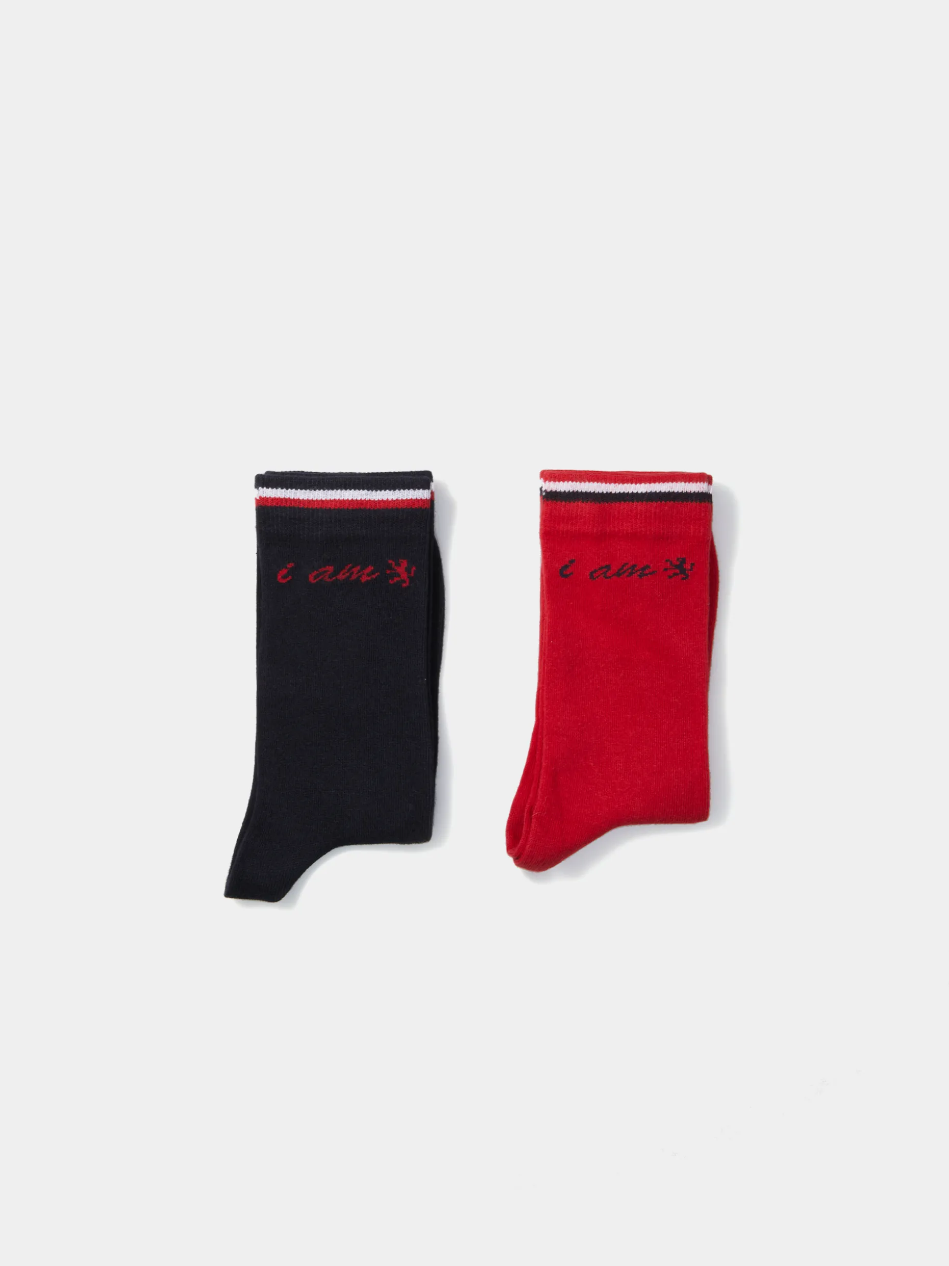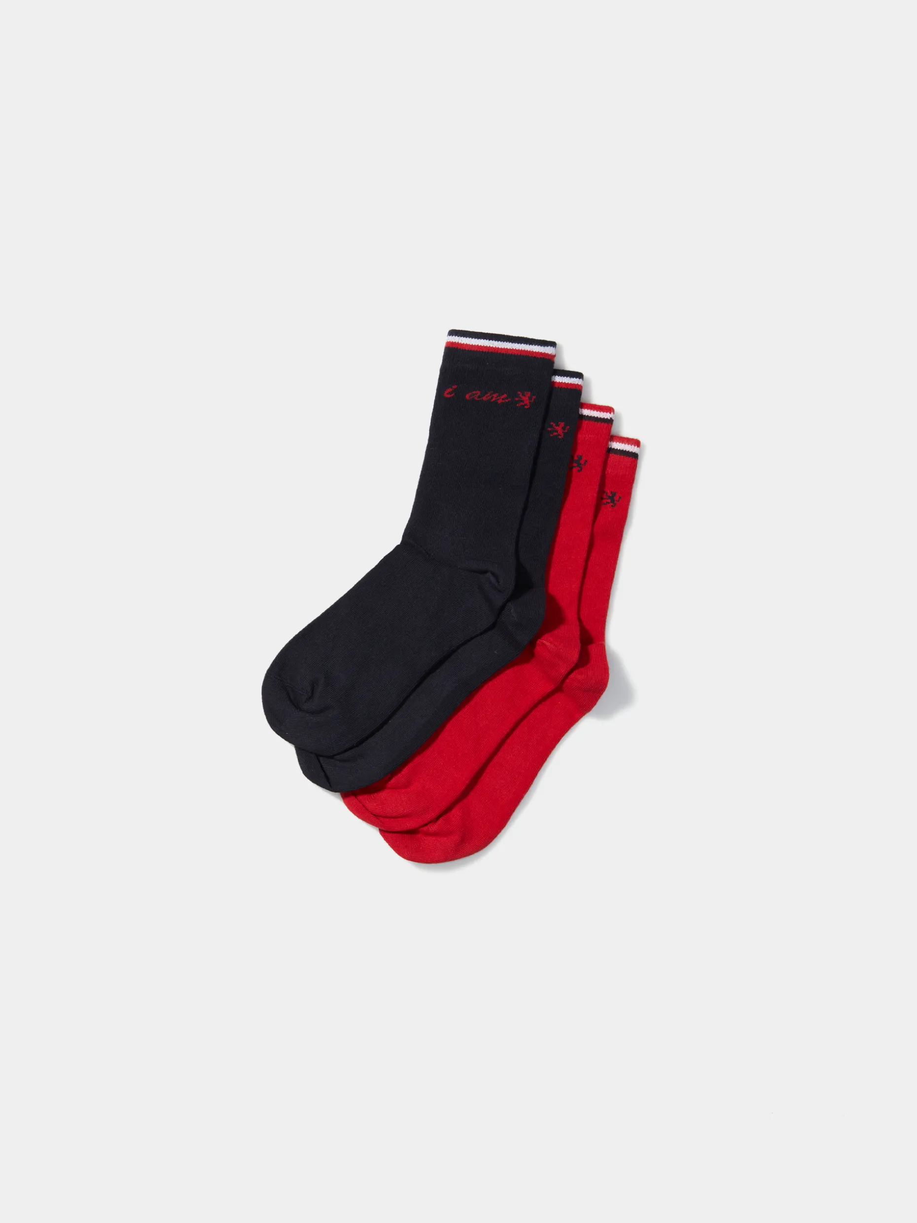 Pack de 2 meias lisas com 3 riscas tricolor no topo com estampado personalizado em contraste a meio.