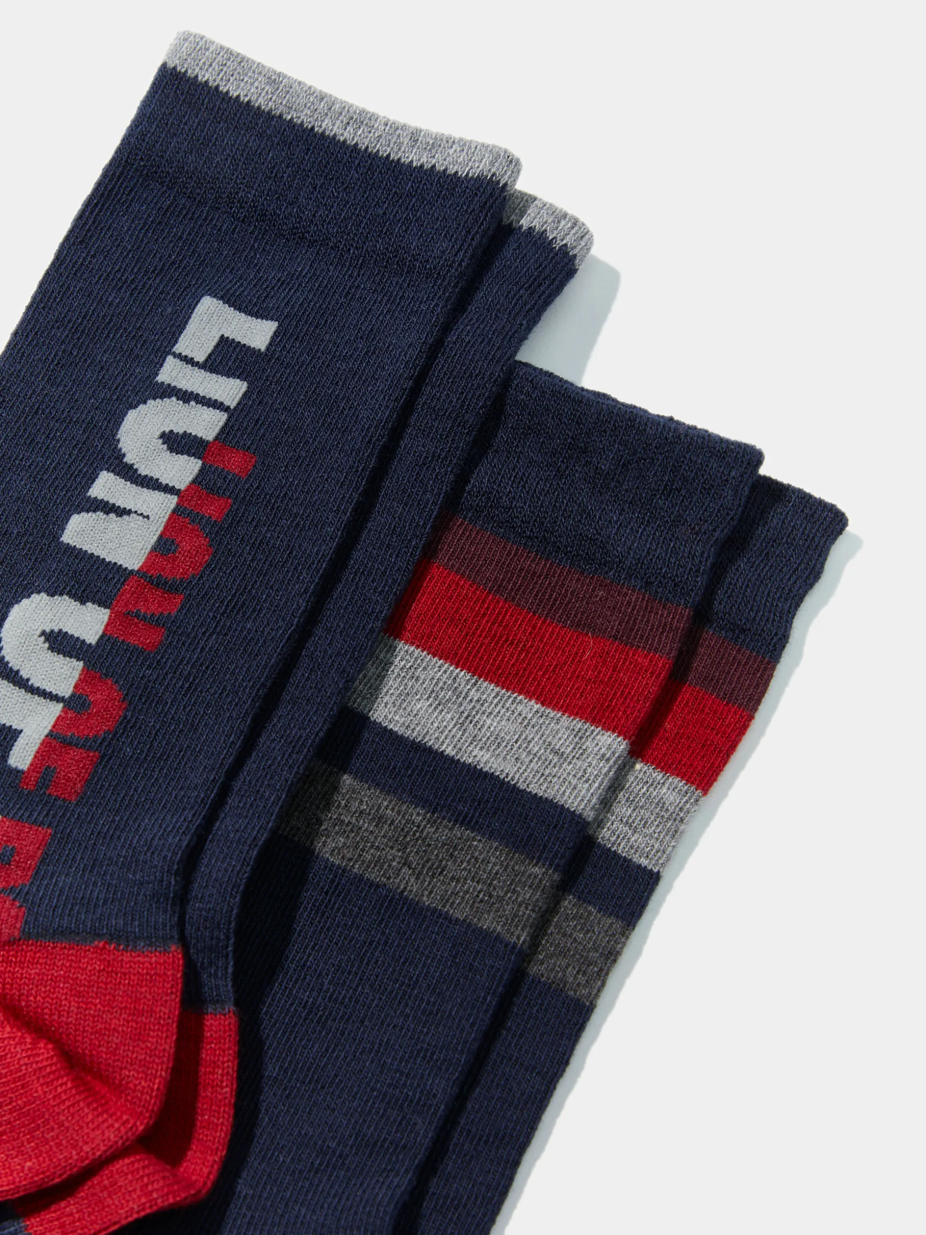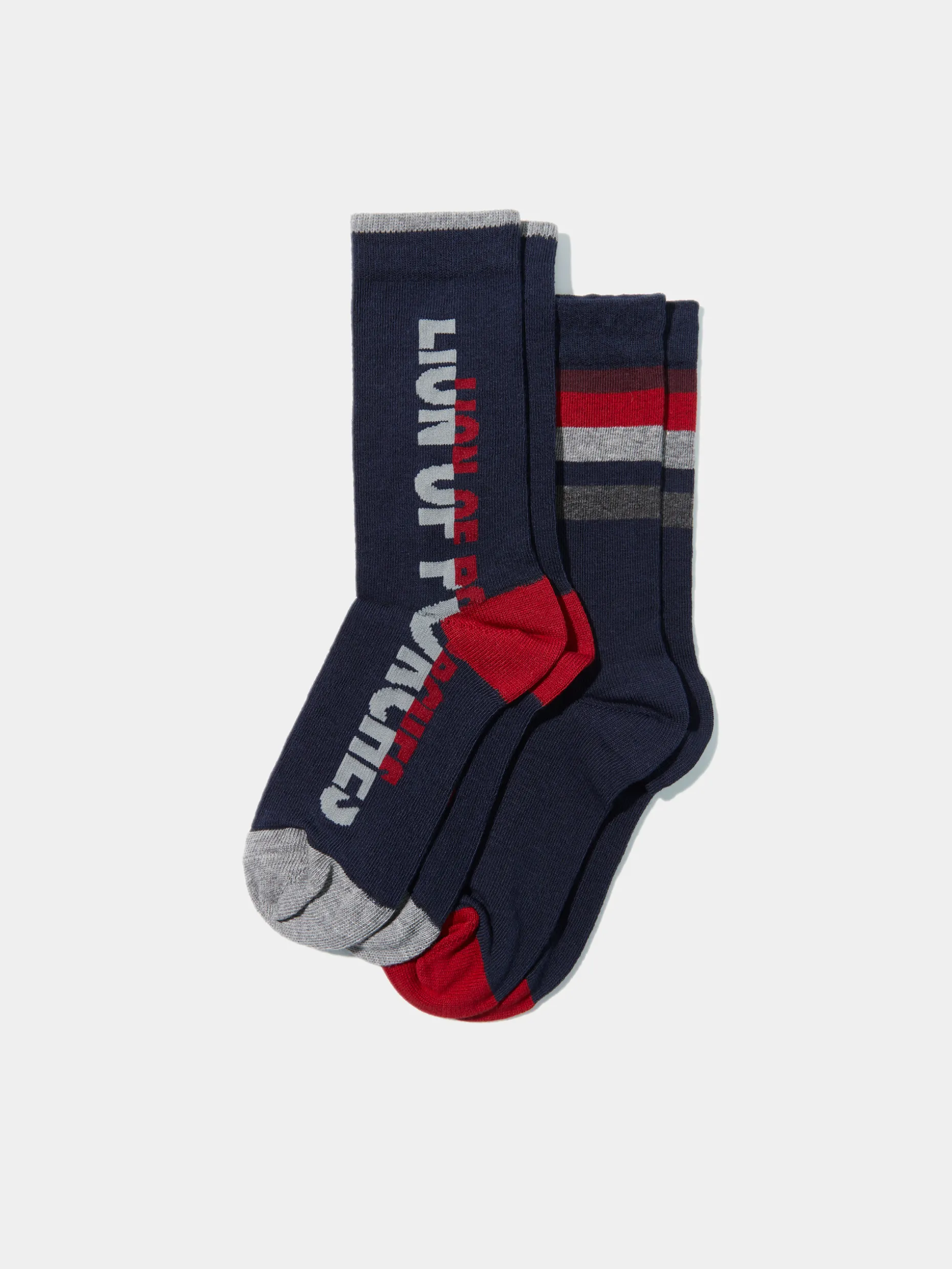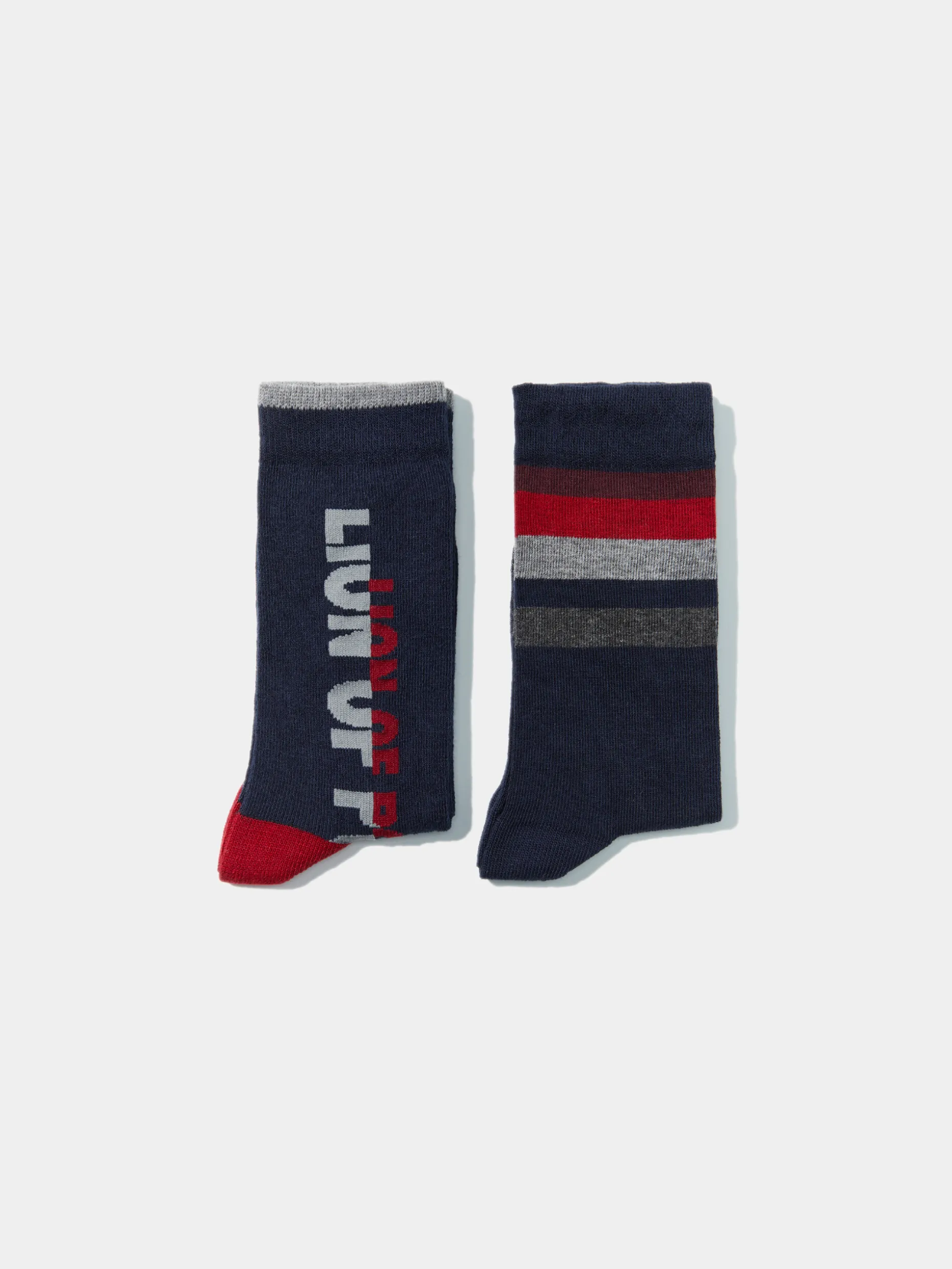 Garanta que está confortável com este pack de dois pares de meias. Um par apresenta um jacquard Lion of Porches em contraste e o outro par riscas multicolor na ponta.