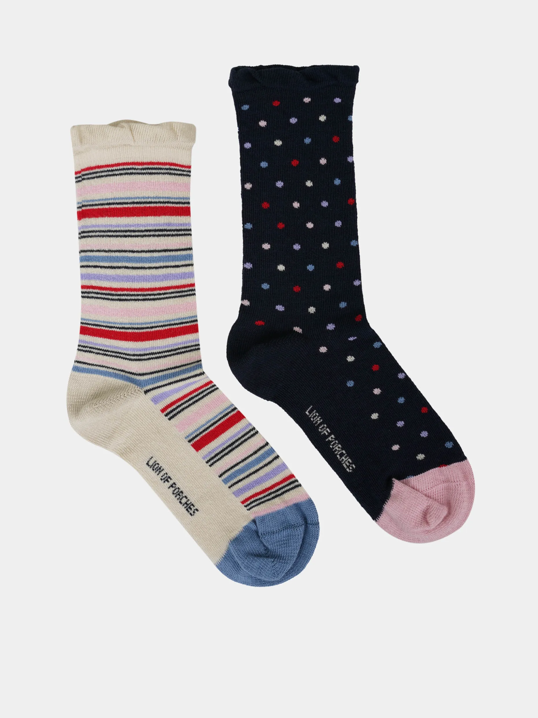Meias com folho na ponta às riscas e meias às bolinhas com estampado Lion of Porches.