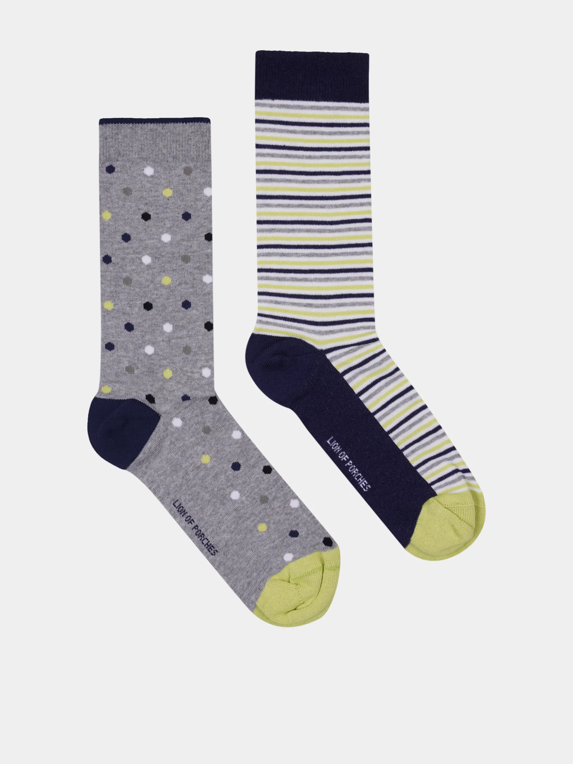 Pack de meias com diferentes padrões. Biqueira e calcanhar em cor contraste. Personalização na planta do pé.
