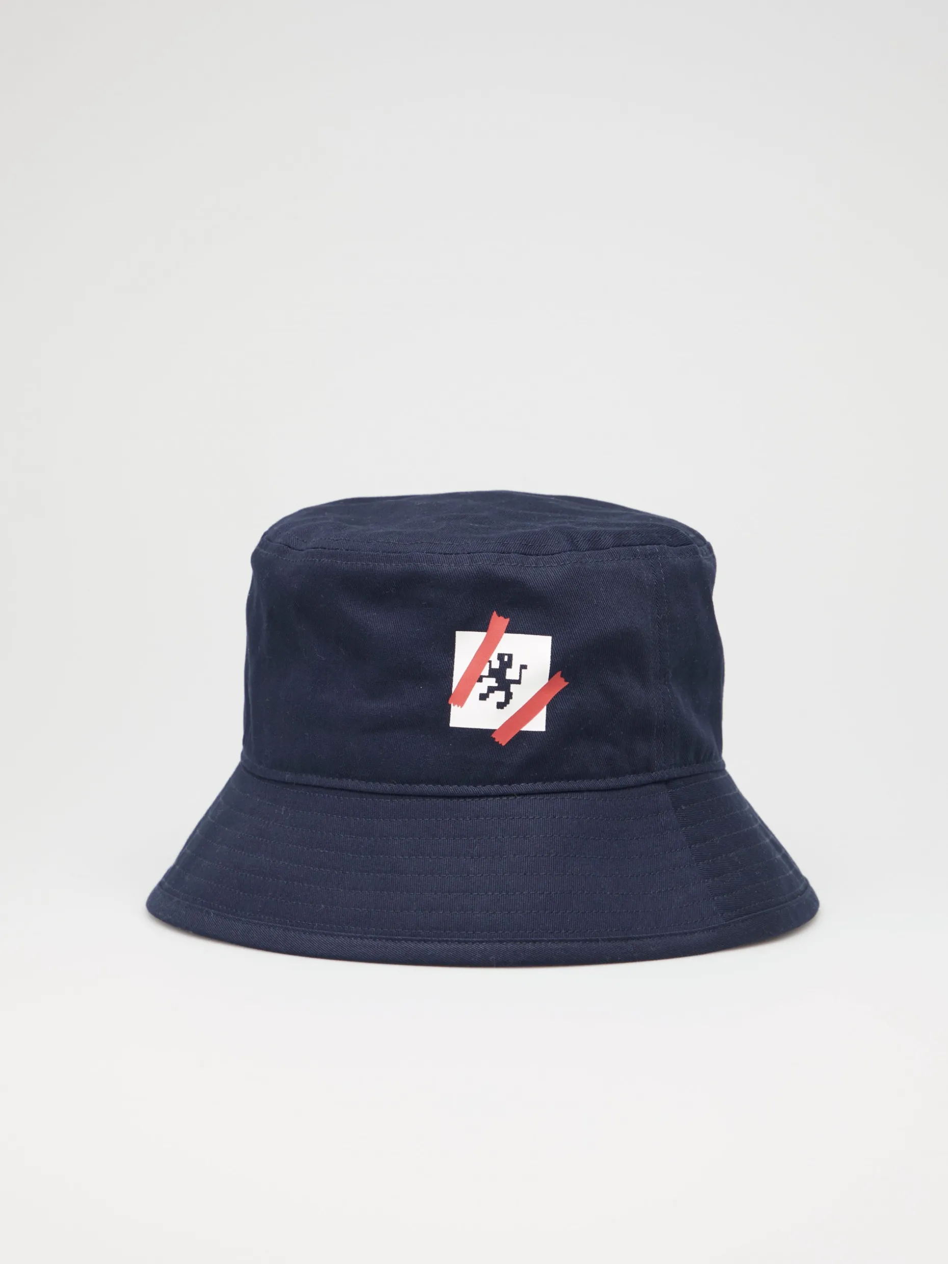 Panamá de algodão com branding Lion of Porches estampado em transfer aborrachado na frente. Detalhe de debrum em navy. Forro de algodão.