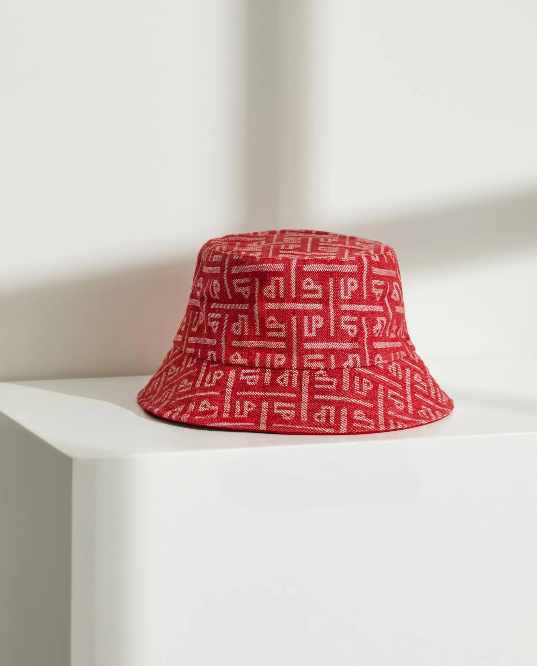 Panamá com relevo de monograma. Etiqueta em pele com branding. Confecionado e mistura de algodão.