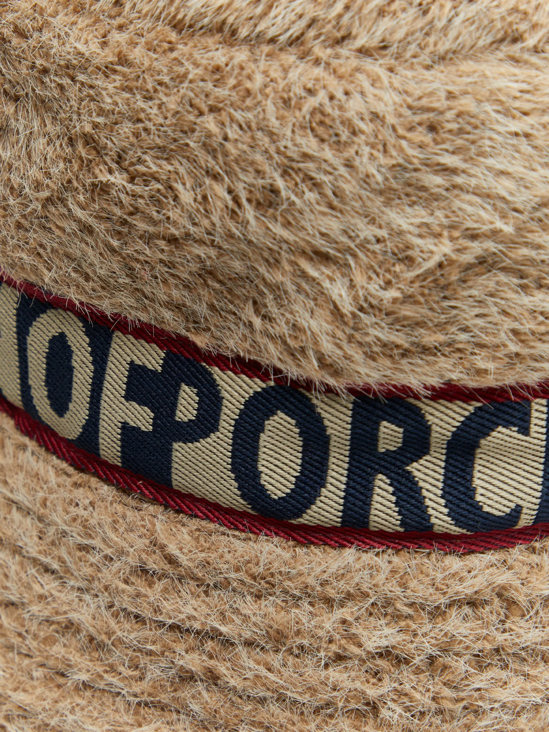 Panamá reversível com pelo. Uma face em pelo com fita personalizada e a outra face em xadrez.