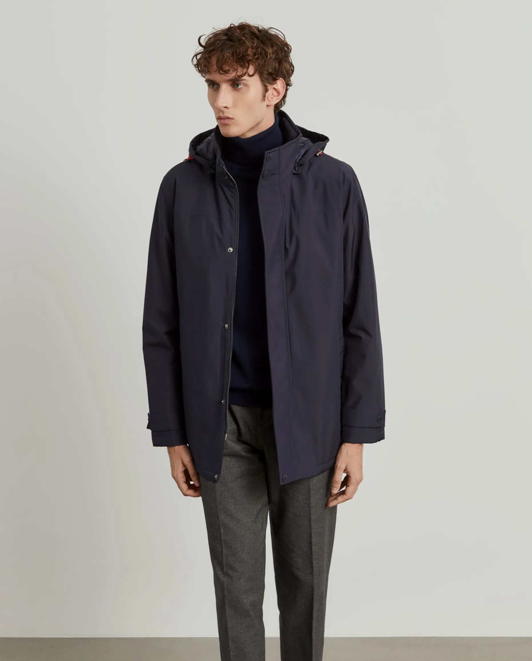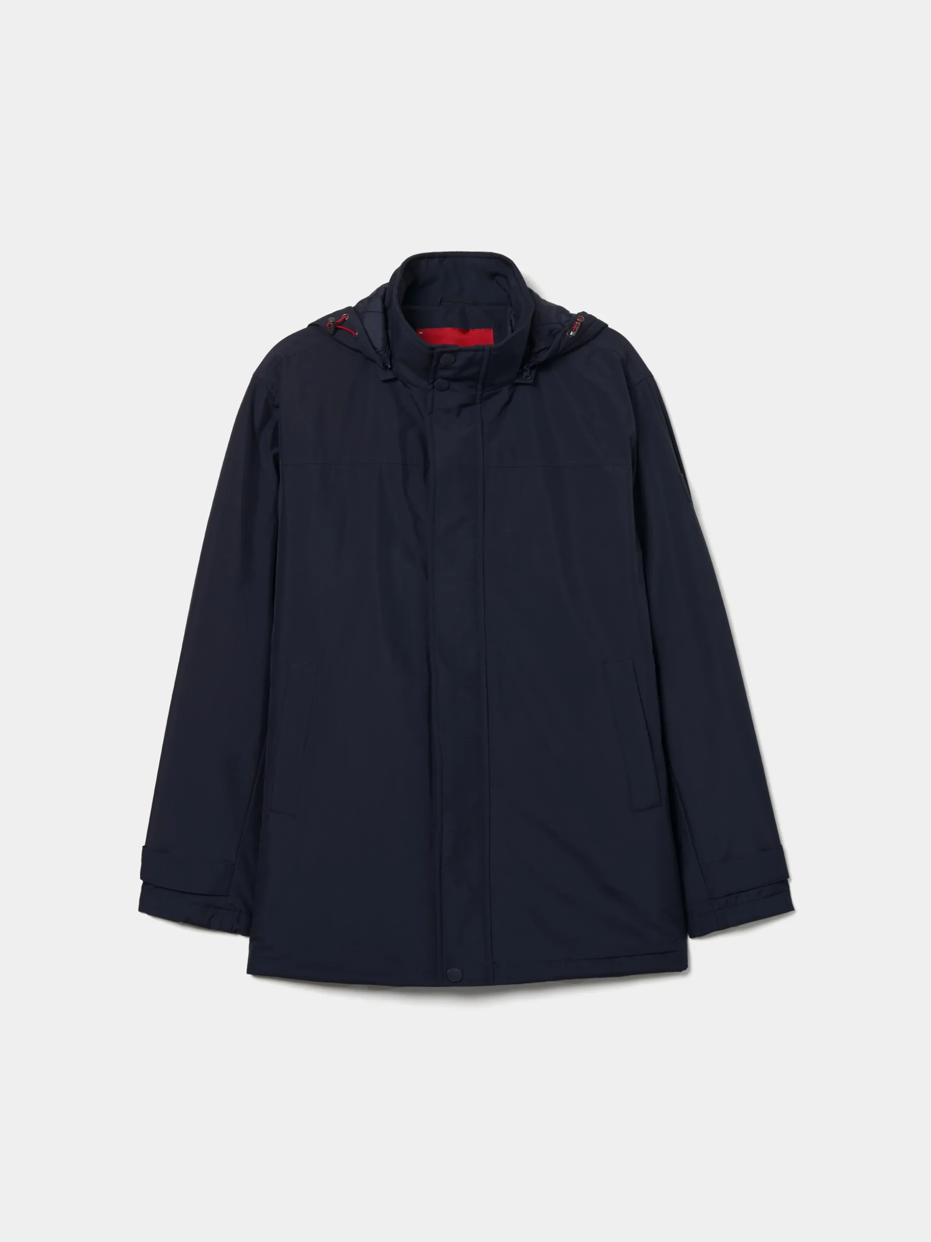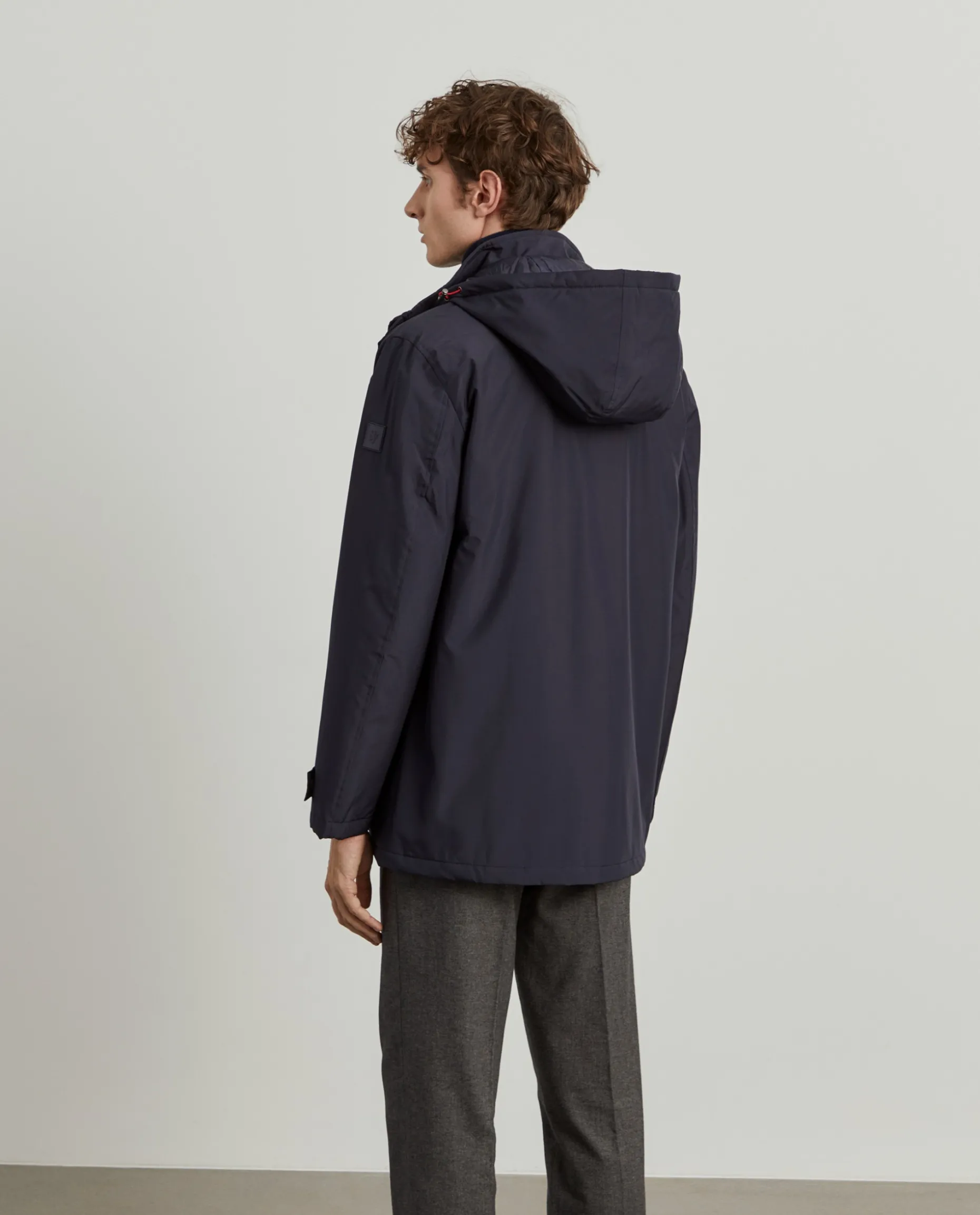 Parka acolchoada com capuz. Aperta com fecho e molas. Emblema Lion Of Porches na manga esquerda. Dois bolsos na frente e dois bolsos de fecho no interior.