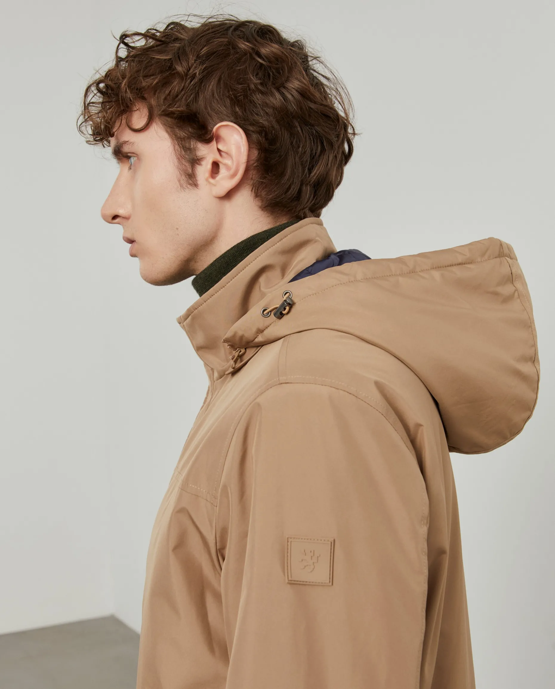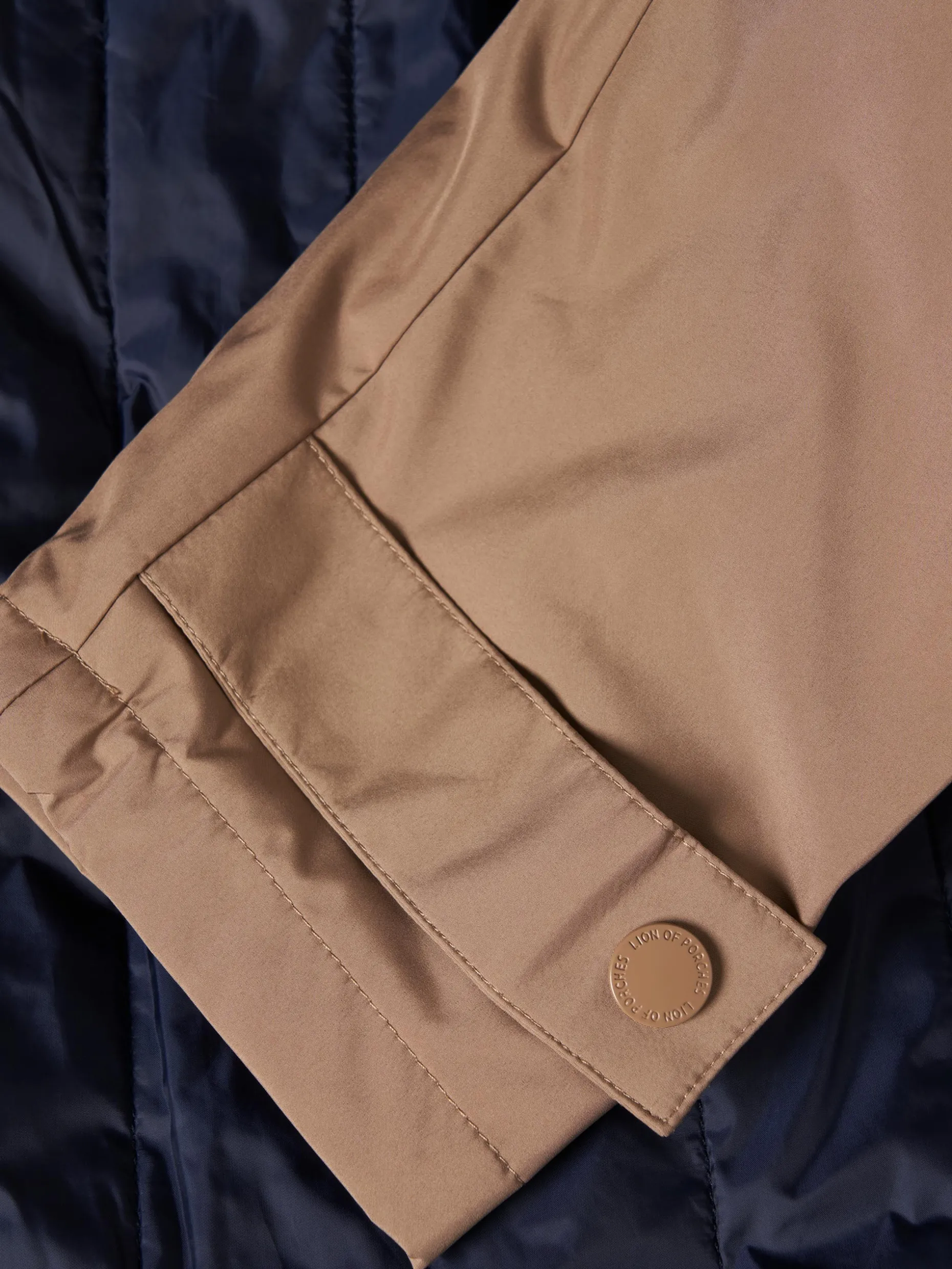 Parka acolchoada com capuz. Aperta com fecho e molas. Emblema Lion Of Porches na manga esquerda. Dois bolsos na frente e dois bolsos de fecho no interior.