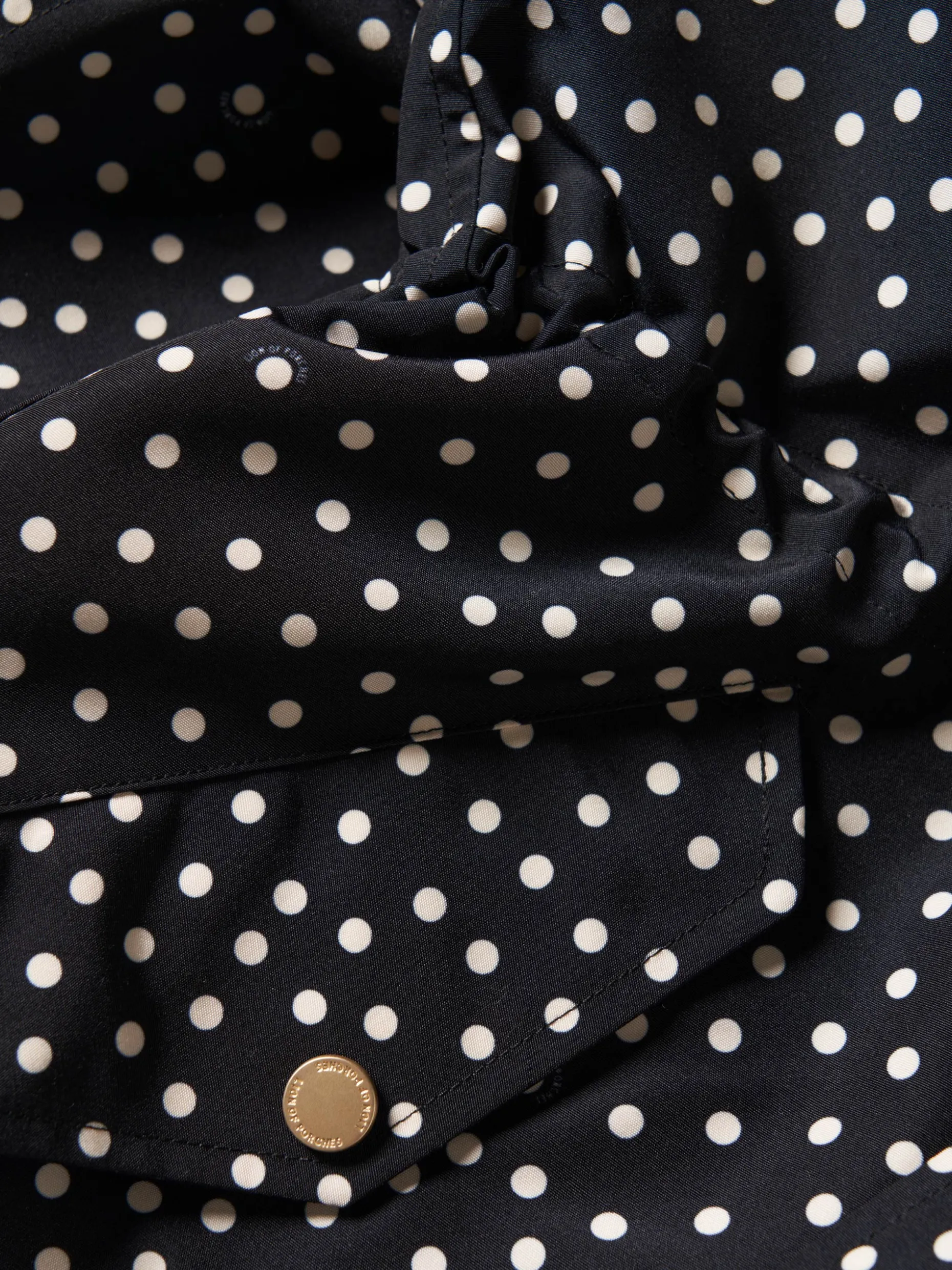 Proteja-se da chuva e do vento com esta parka comprida com padrão polka dots. Tem capuz e bolsos frontais e aperta através de molas. Os punhos são elásticos.
