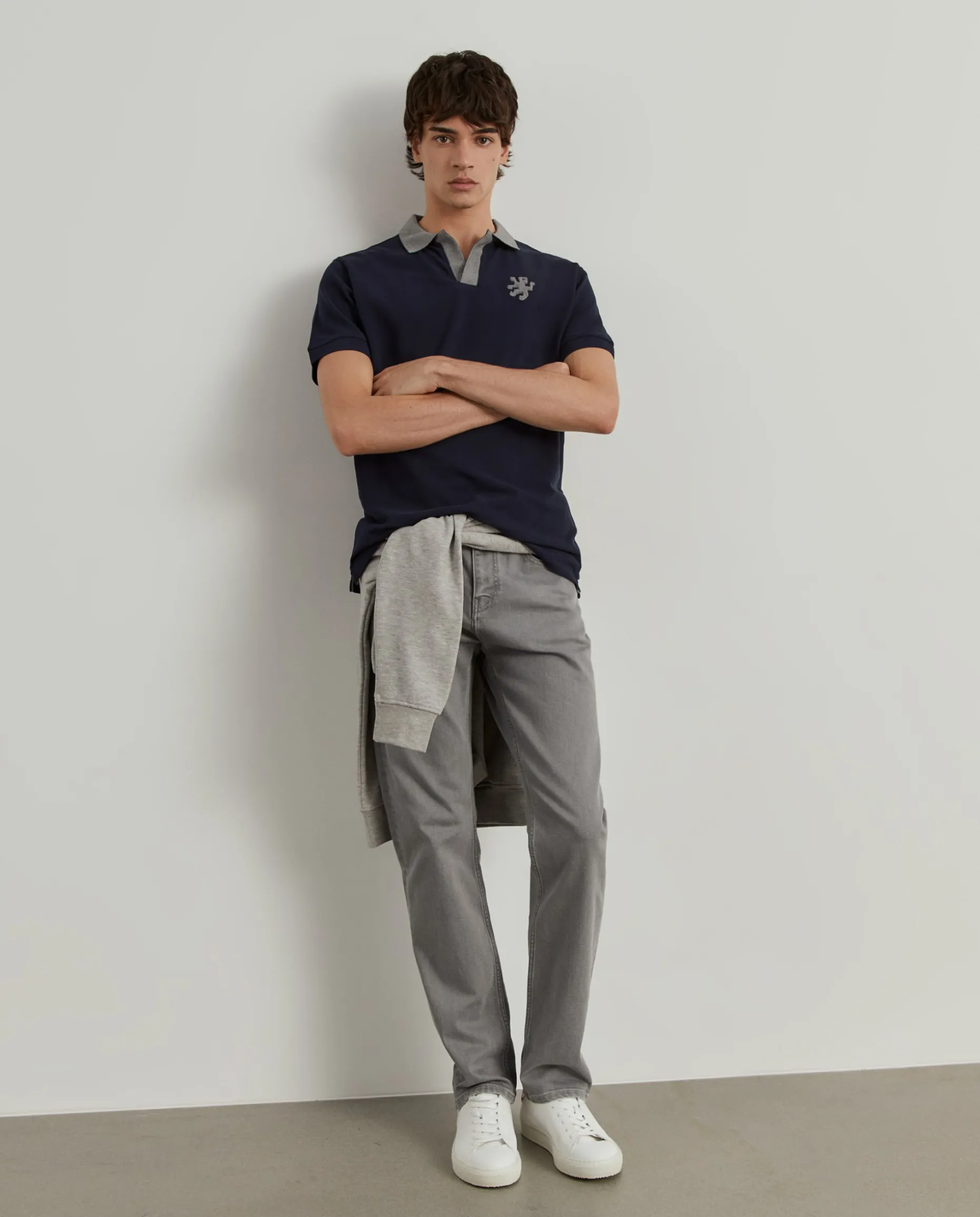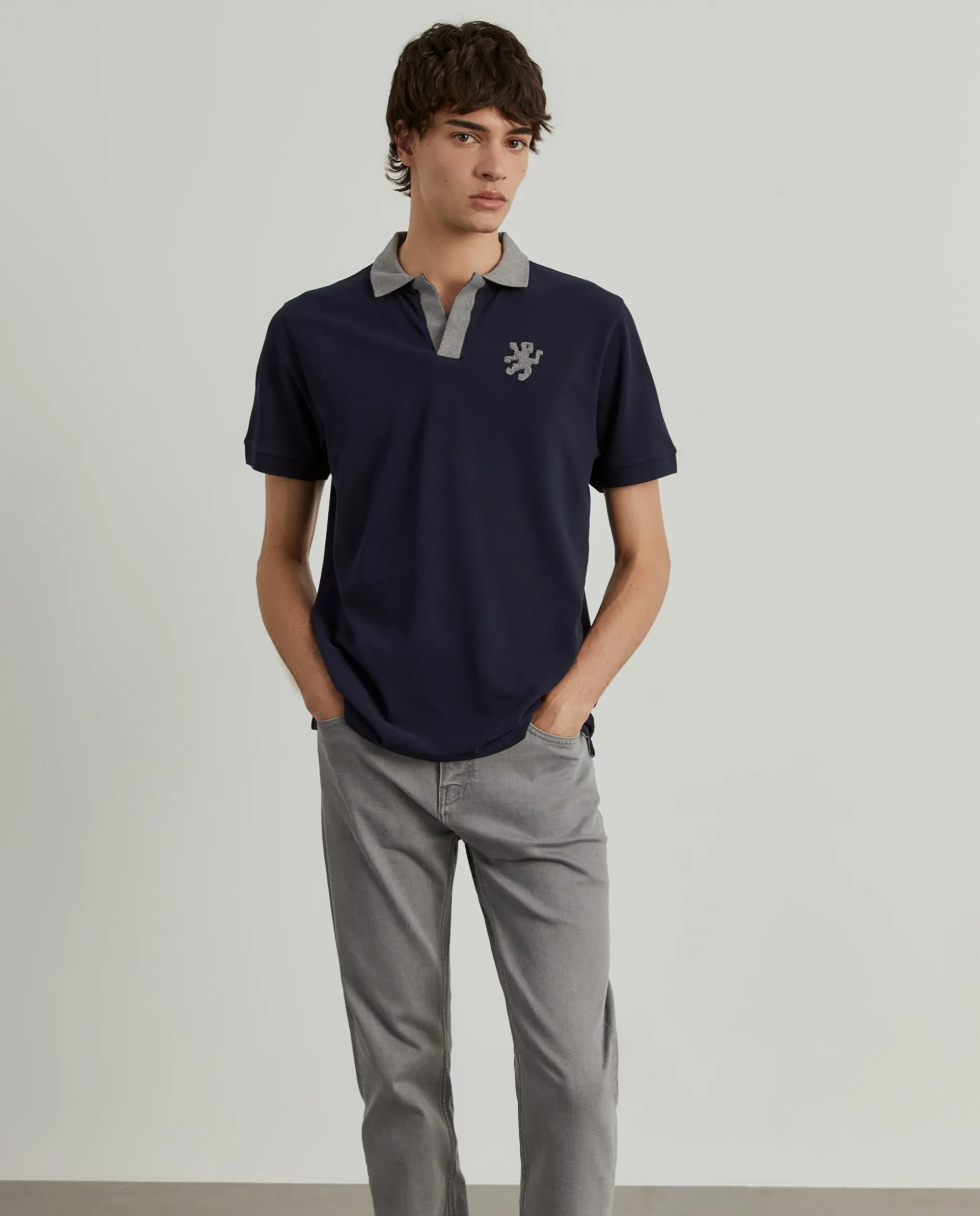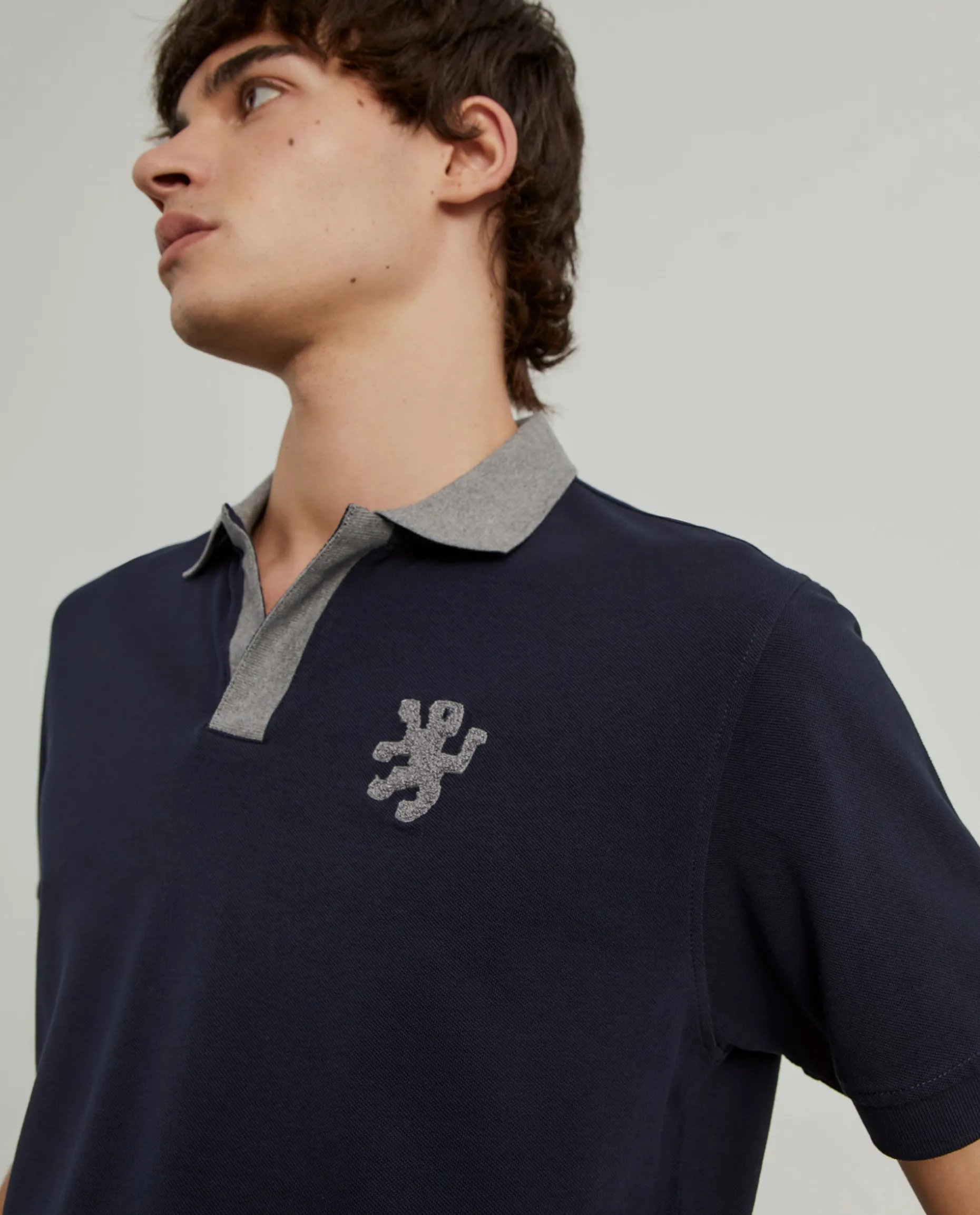 Polo piqué de manga curta, sem botões, com pormenor de gola e carcela em contraste. Leão da marca em bordado chenille no peito. Confecionado, na totalidade, em algodão para maior conforto.