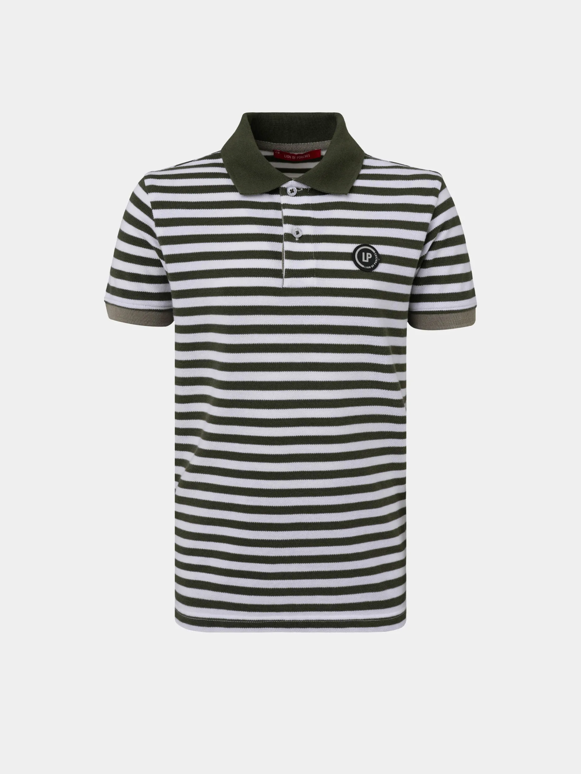 Pólo manga curta riscador. Tapa costuras, interior das rachas e interior da carcela em contraste. Etiqueta de borracha redonda personalizada no peito. Gola e punhos em contraste.