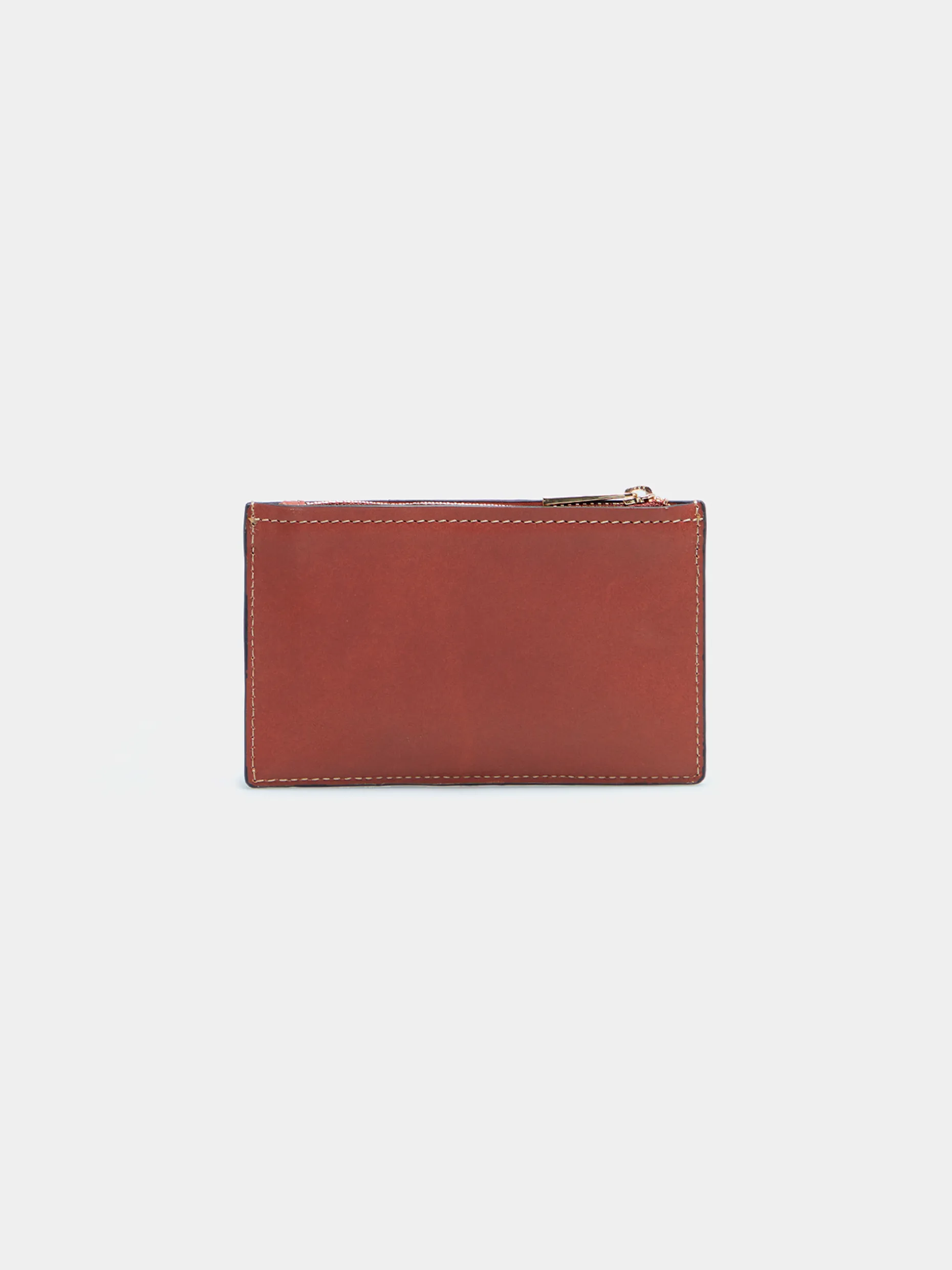 Porta-moedas retangular 100% pele com pespontos em contraste. Logotipo Lion of Porches estampado a dourado na frente e fecho com zíper personalizado.