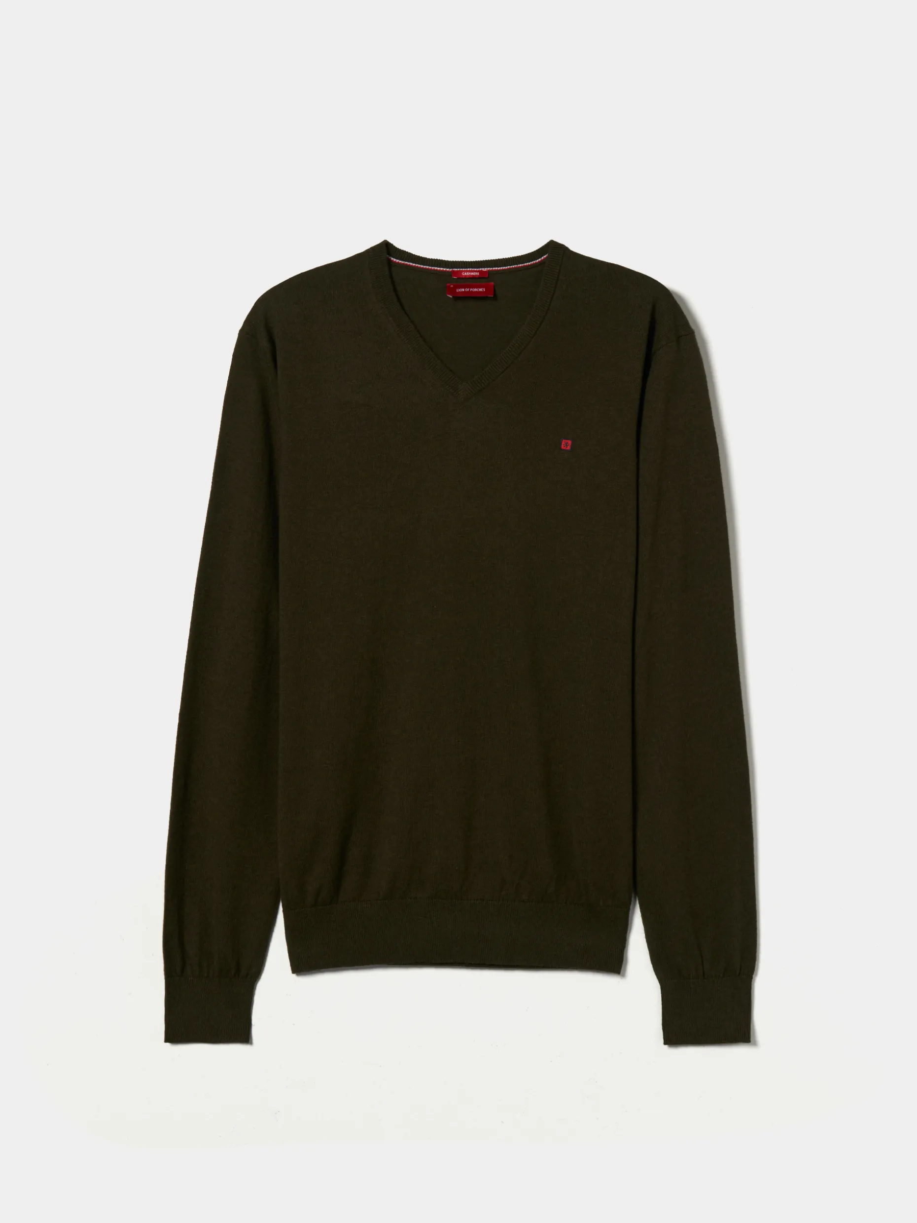 Pullover de manga comprida com decote em V confecionado em algodão com caxemira que conferem à peça um toque suave e confortável. Pormenor diferenciador de riscas em contraste nos punhos. A base, gola e punhos são canelados. Finaliza com bordado LP da marca no peito.