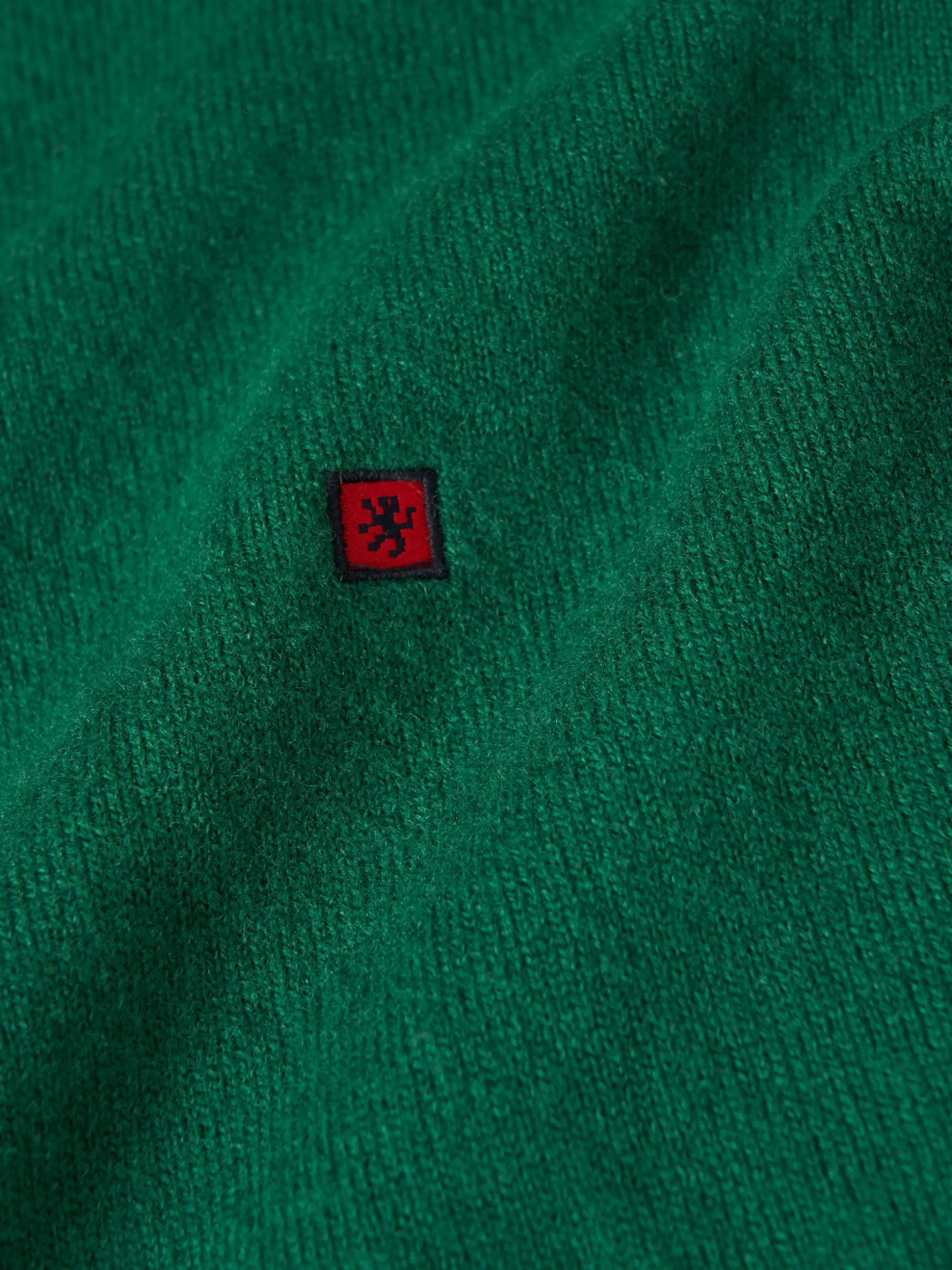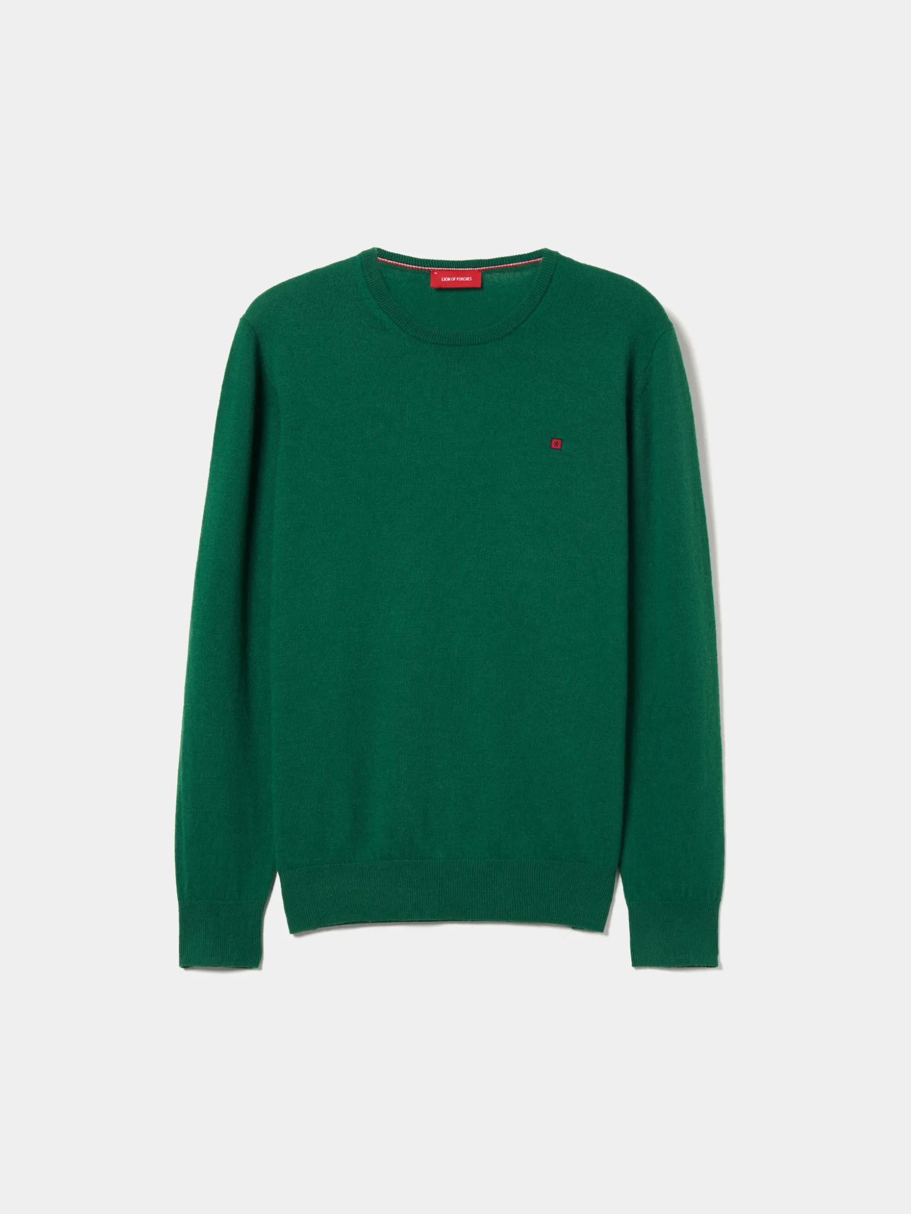 Camisola decote redondo manga comprida com etiqueta leão no peito. Riscas tricolor no interior da gola. Confecionada, na totalidade, em lã para maior isolamento térmico.