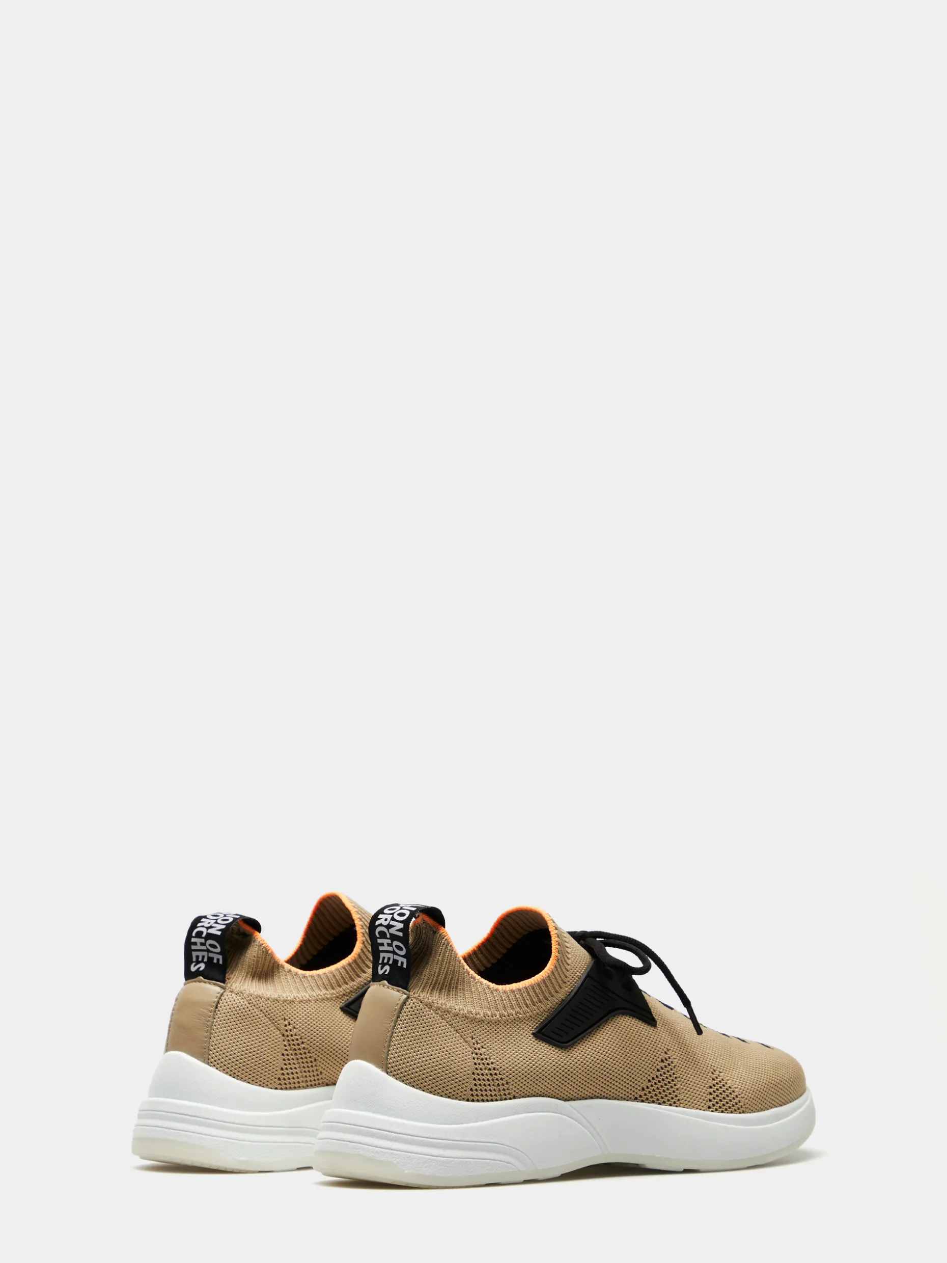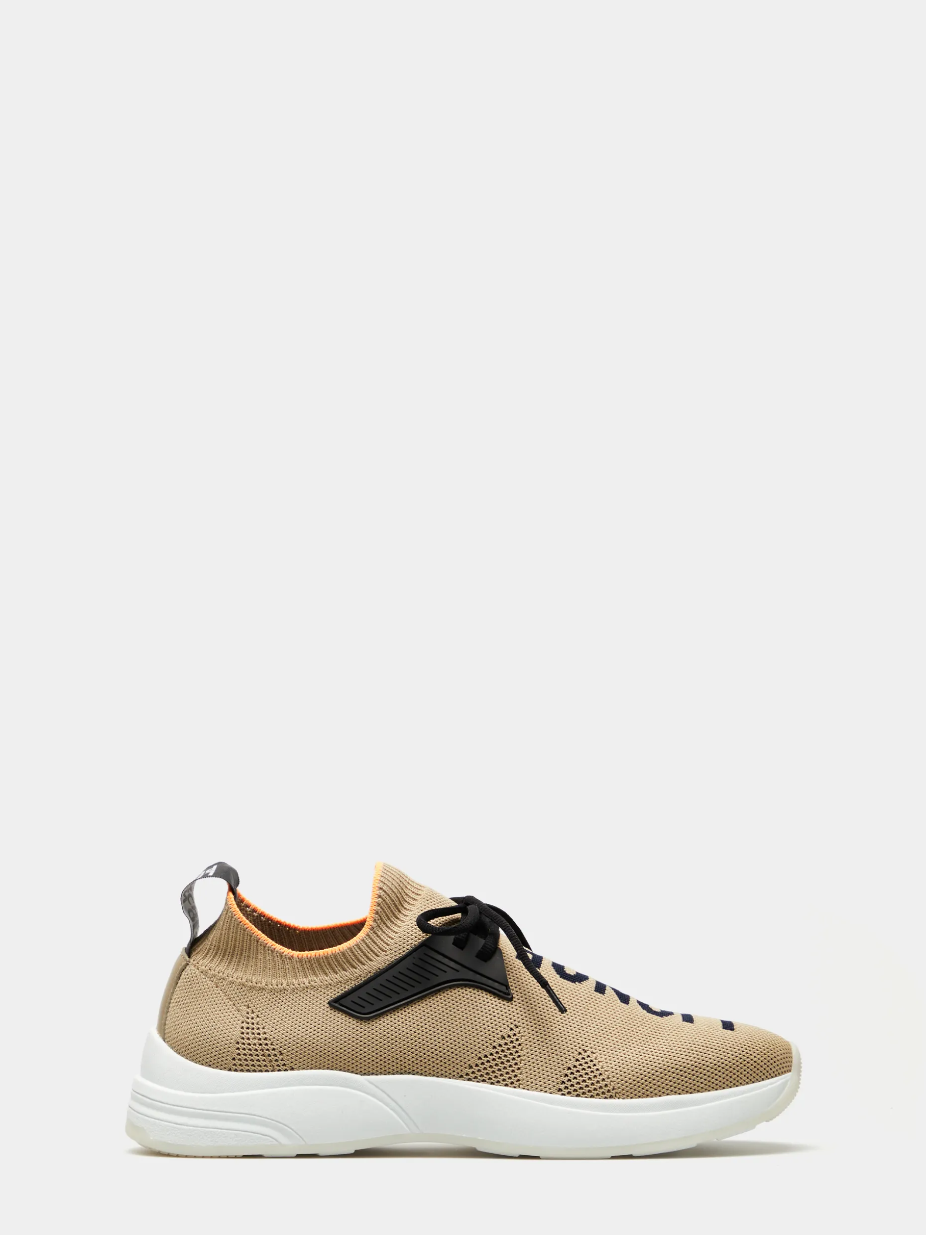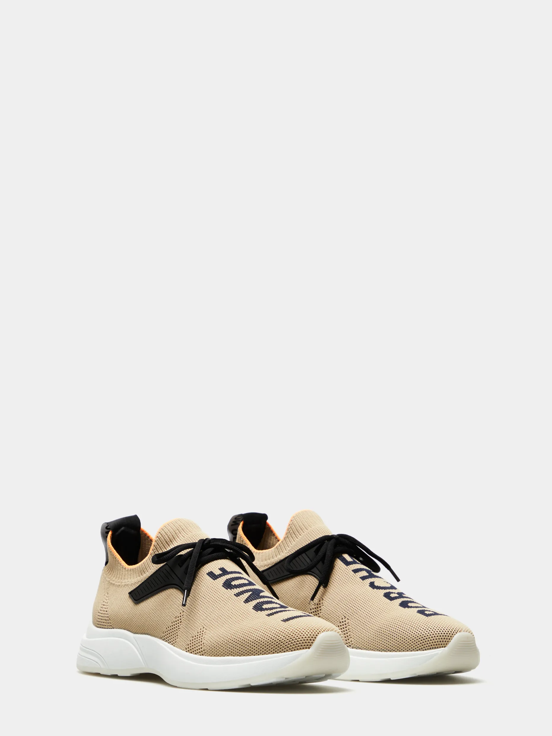 Sapatilha de malha com logotipo Lion of Porches ao longo do peito do pé. Etiqueta da marca tecida na parte de trás. Peça de borracha para atacadores. Sola de borracha assimétrica branca. Biqueira redonda.