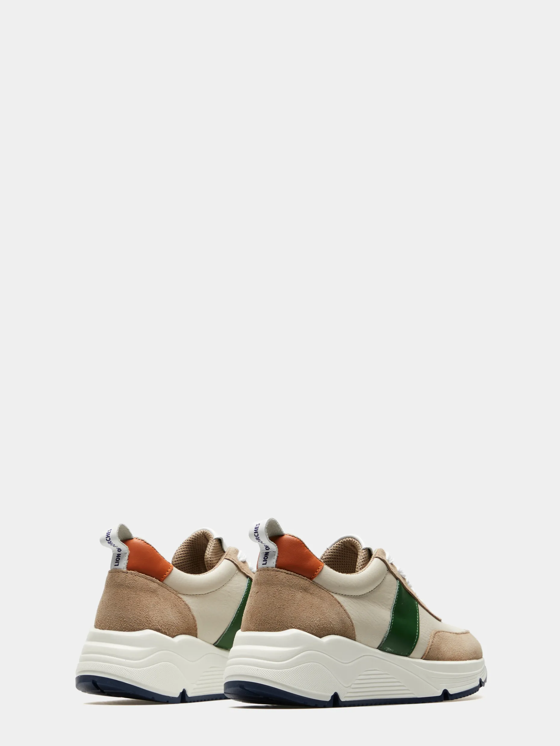 Sapatilha multicolor em pele e camurça. Branding Lion of Porches estampado em contraste na língua e atrás no calcanhar. Sola de borracha assimétrica.