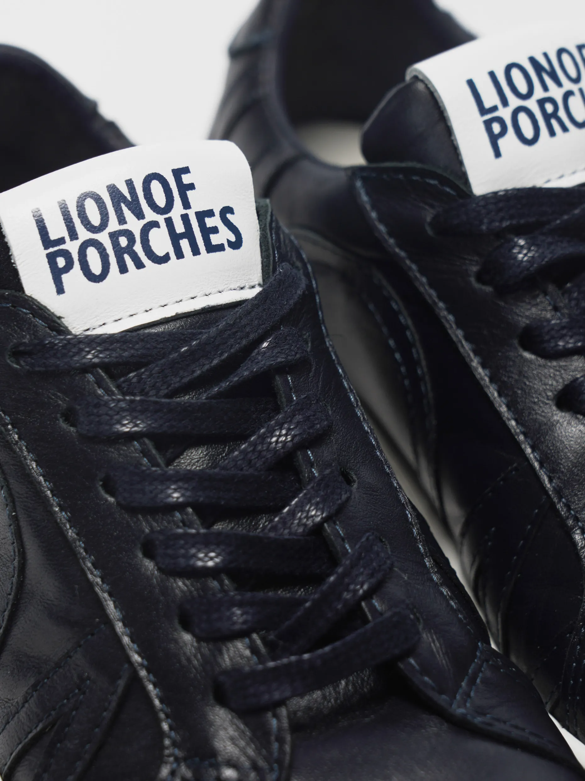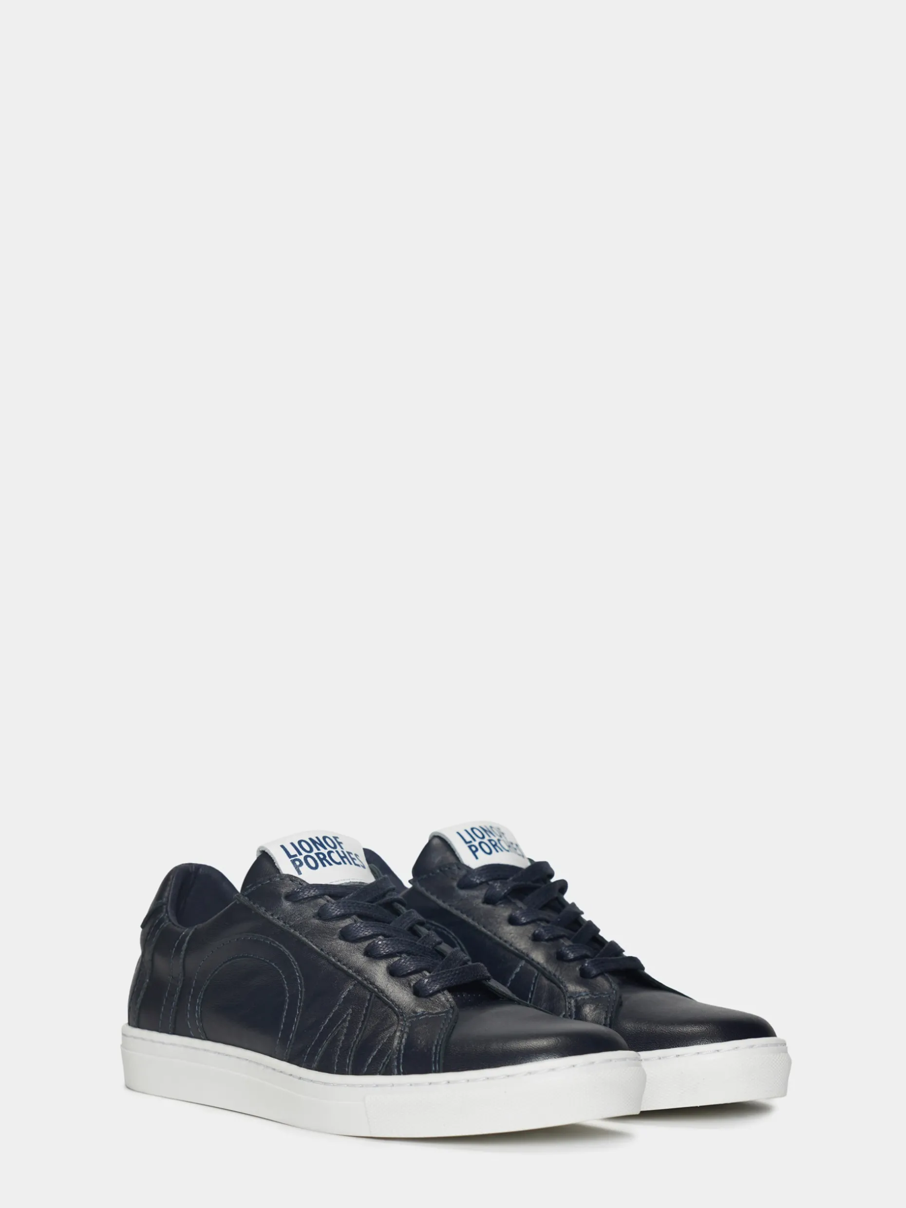 Sapatilhas 100% pele com relevo lateral Lion of Porches. Apertam com cordões. Sola de borracha a contraste. Branding da marca na língua e na parte traseira.