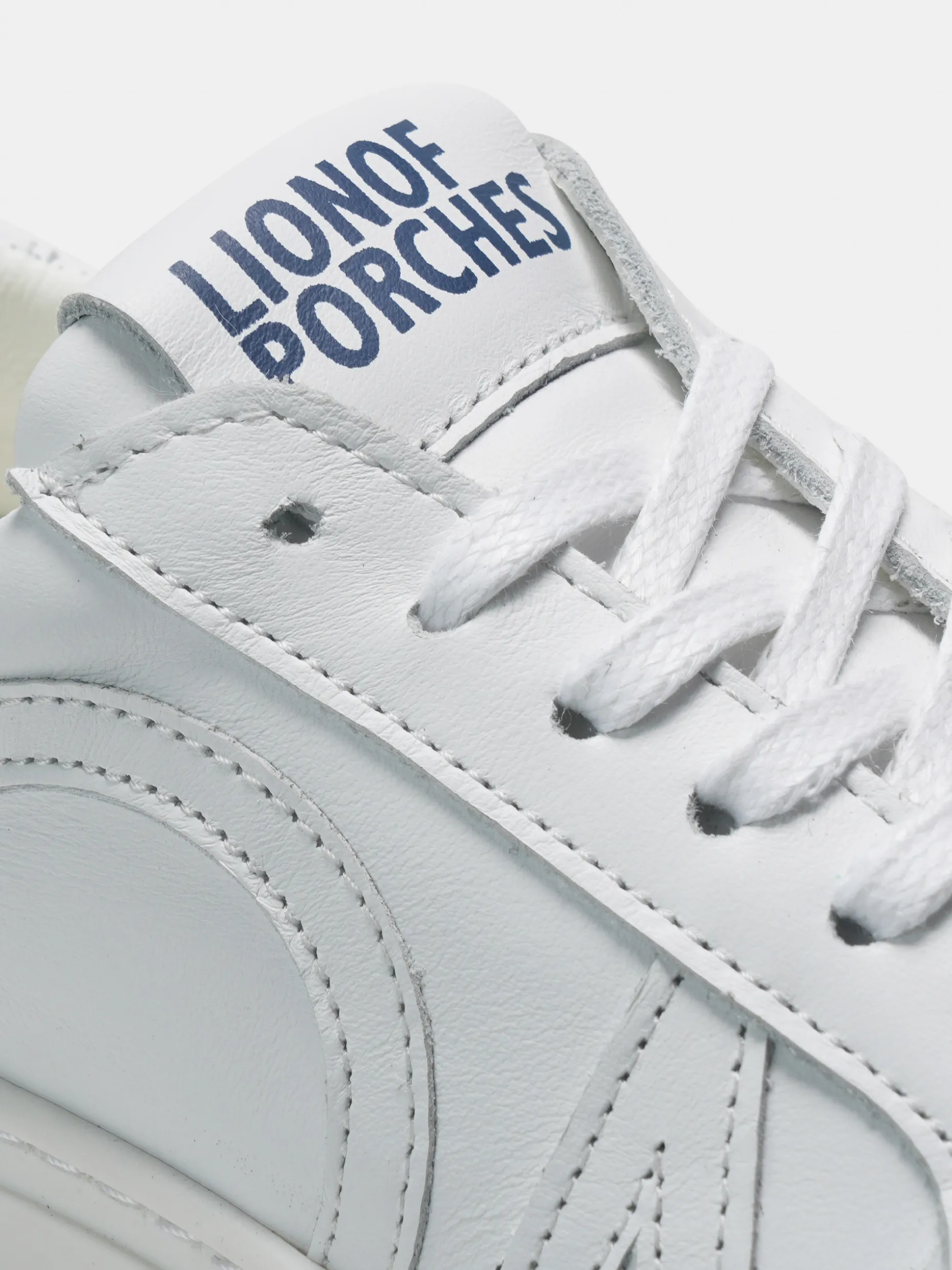 Sapatilhas 100% pele com relevo lateral Lion of Porches. Apertam com cordões. Sola de borracha a contraste. Branding da marca na língua e na parte traseira.