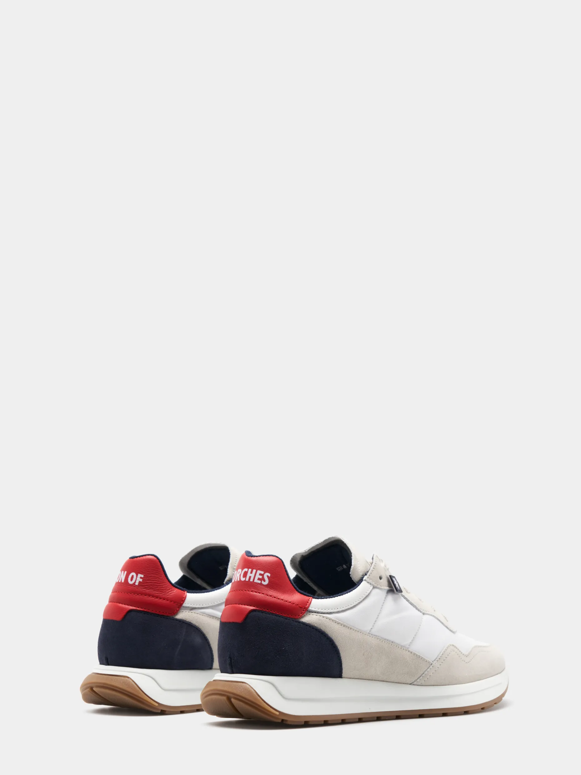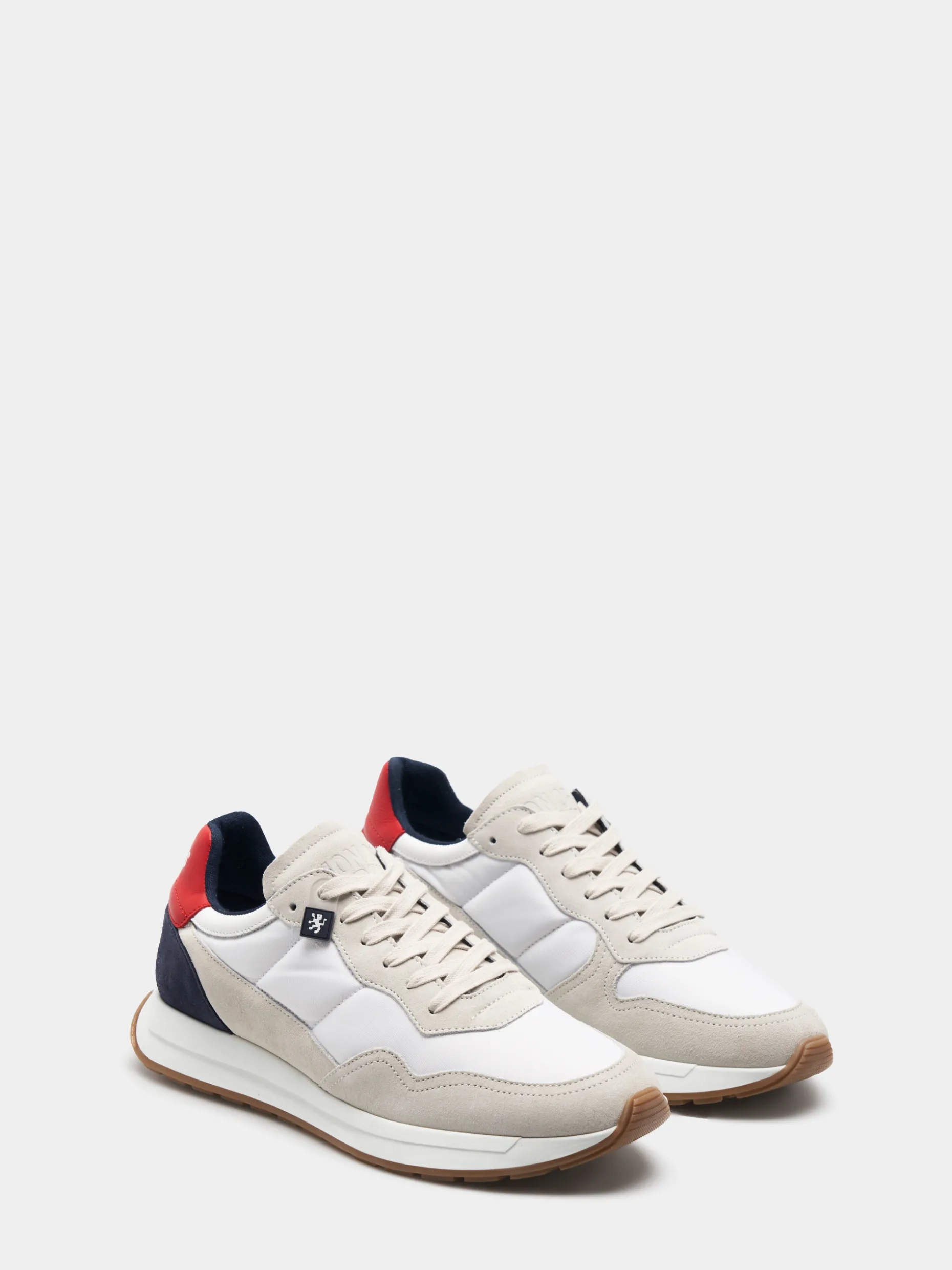 Sapatilhas desportivas combinadas em camurça, nylon e detalhes em pele. Com cordões e parte de trás em contraste de cor com logotipo Lion of Porches no calcanhar. Sola dentada de dois tons.