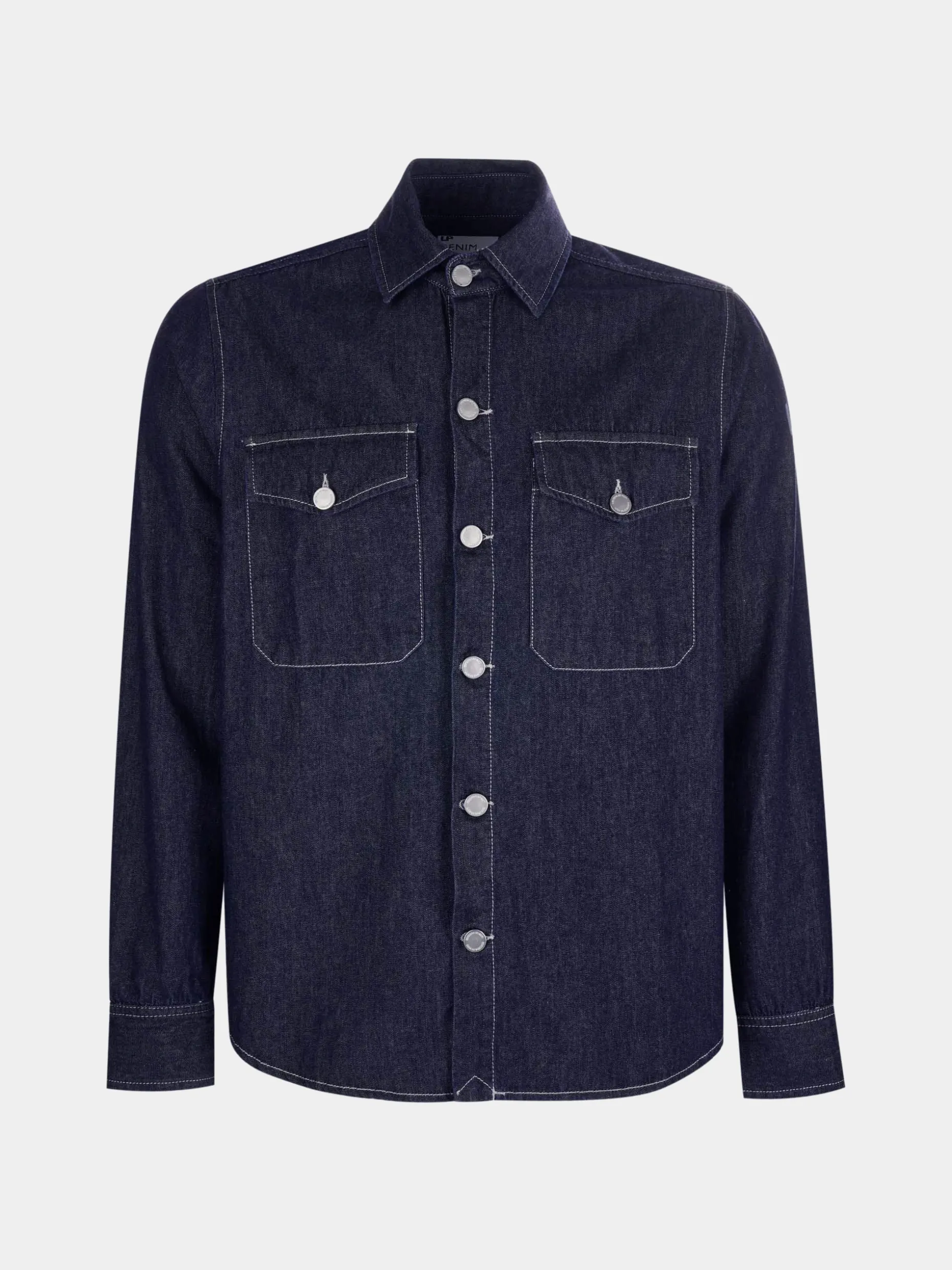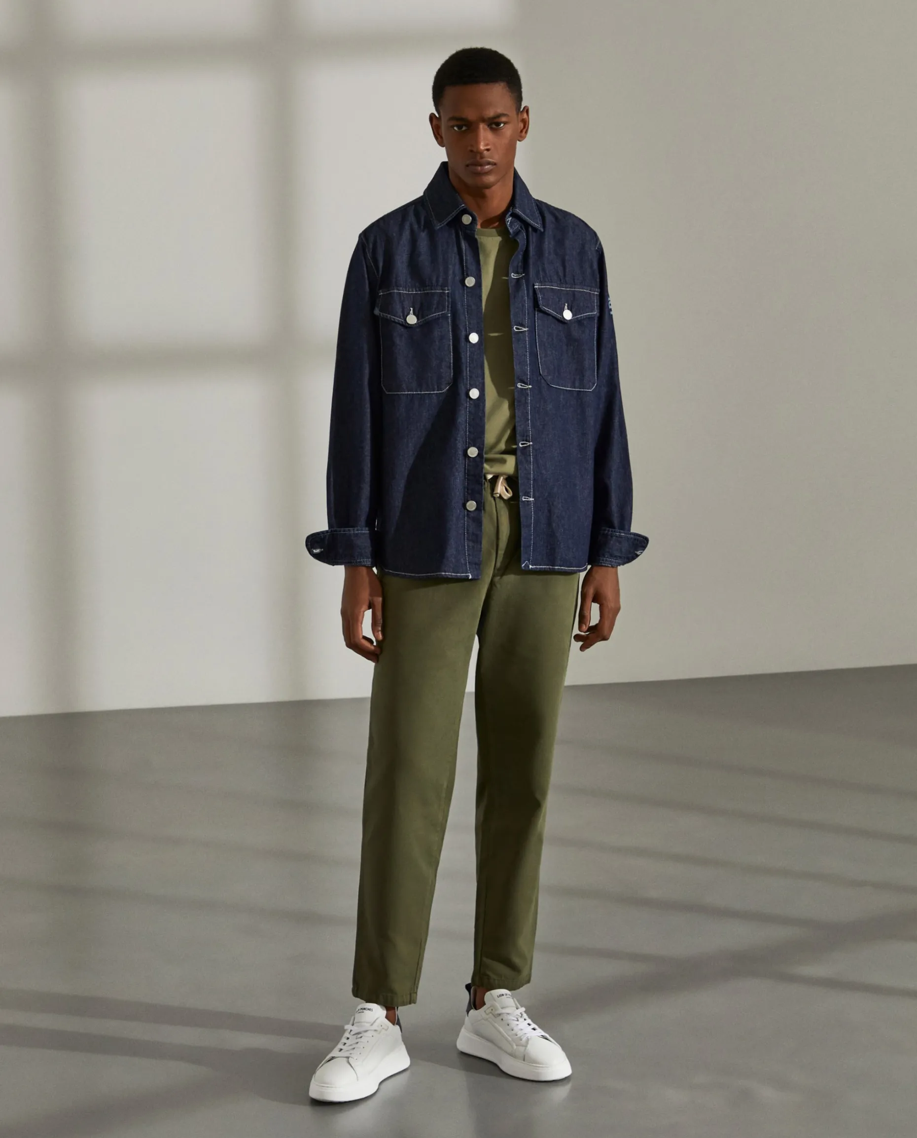 Sobrecamisa de denim. Regular Fit. Aperta com botões personalizados. Emblema estampado na manga esquerda. Dois bolsos no peito de chapa e com pala com botões. Estampado interior “Lion Of Porches”.