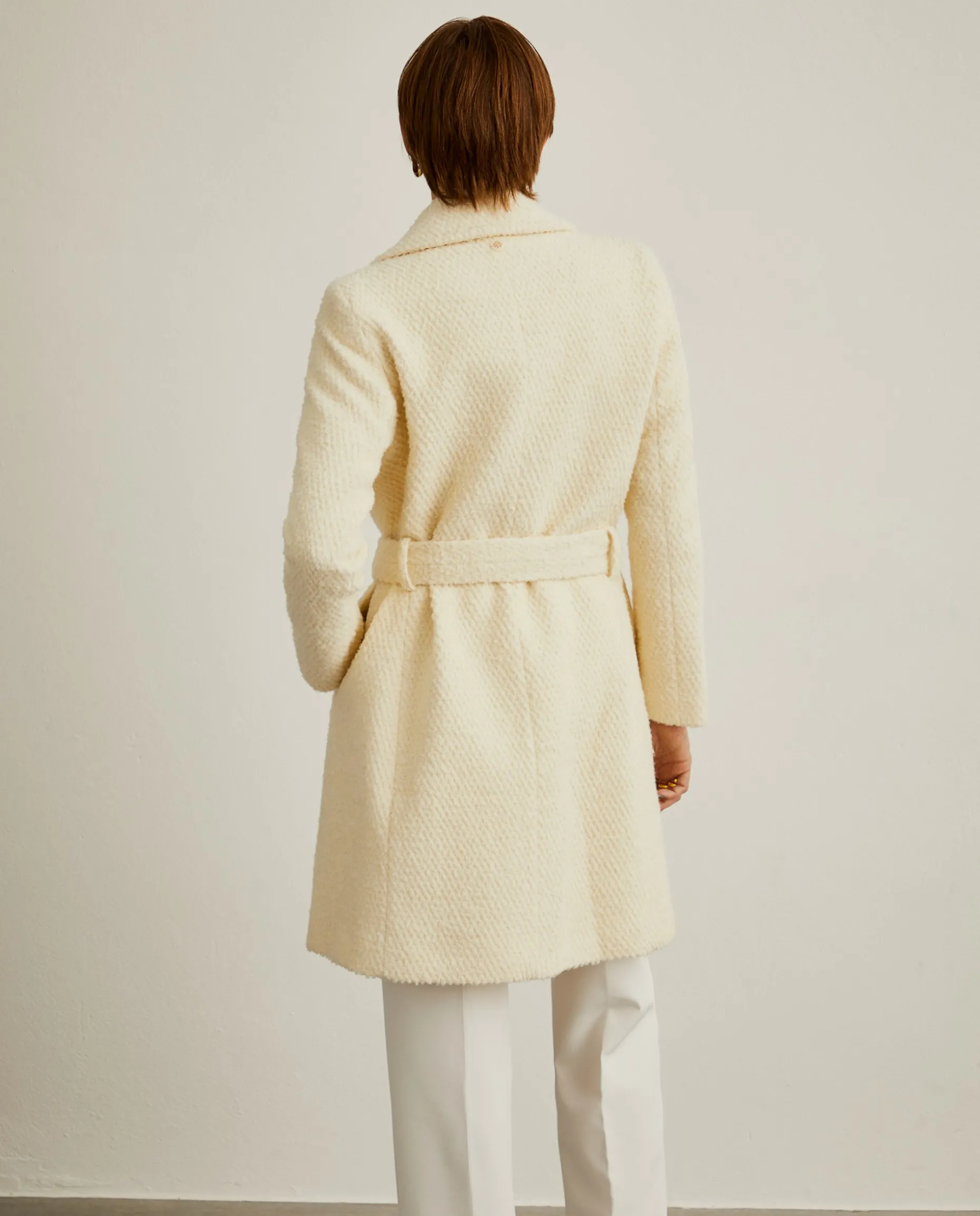 Garanta a máxima elegância com este sobretudo comprido de trespasse. Vem com um cinto ao tom, amovível, para que possa ajustar a gosto. Finaliza com bolsos embutidos nas costuras laterais. Confecionado com uma percentagem de lã e algodão para se manter quente e confortável.