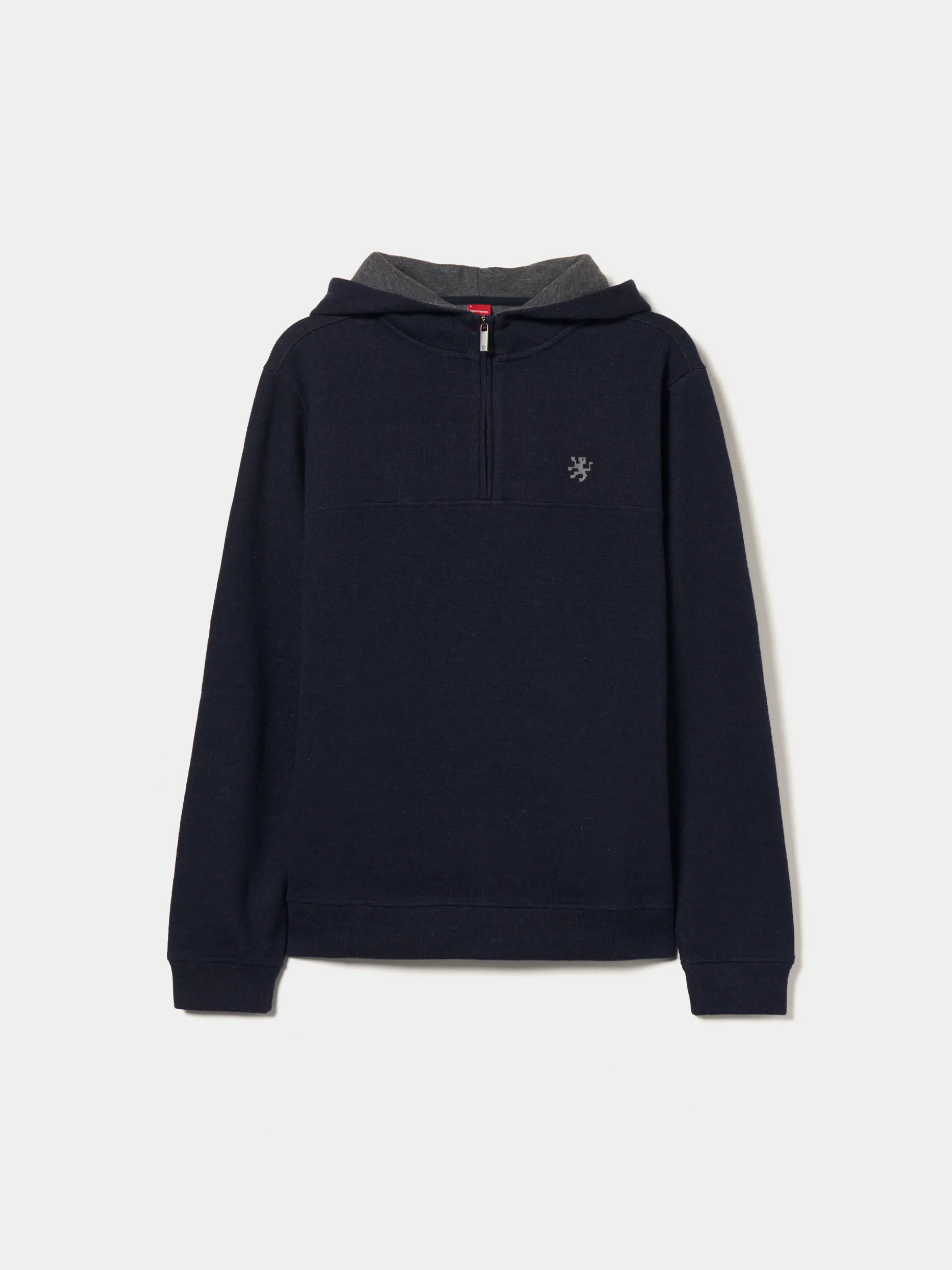 Sweat com capuz e fecho manga comprida com estampado leão em contraste no peito. Fecho com cursor personalizado.