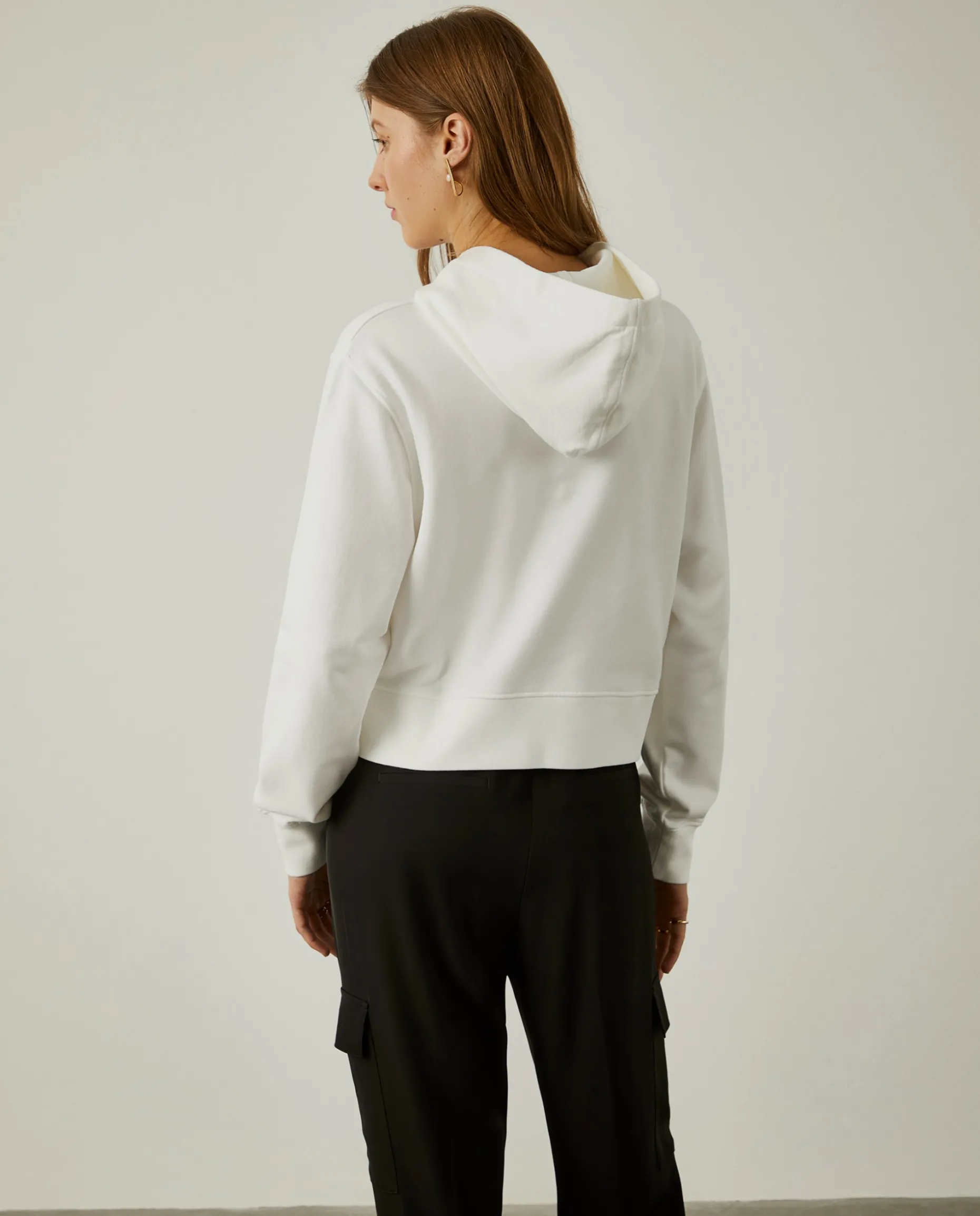 Sweater com capuz com estampado tropical e mensagem em contraste na frente. A base e os punhos são canelados. É confecionada, na totalidade, em algodão para maior suavidade e conforto.