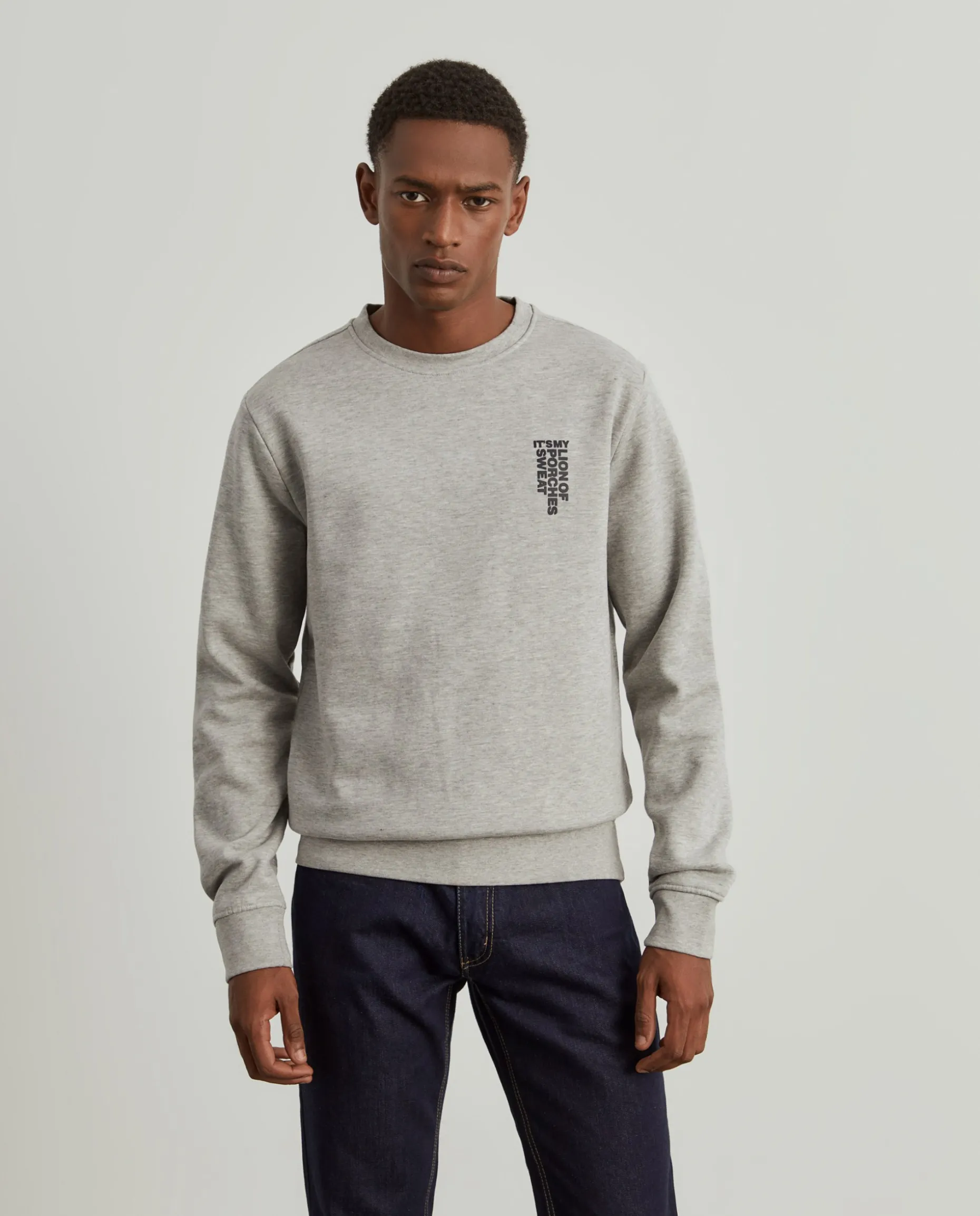 Sweater de manga comprida com mensagem estampada em contraste de cor. De gola redonda.