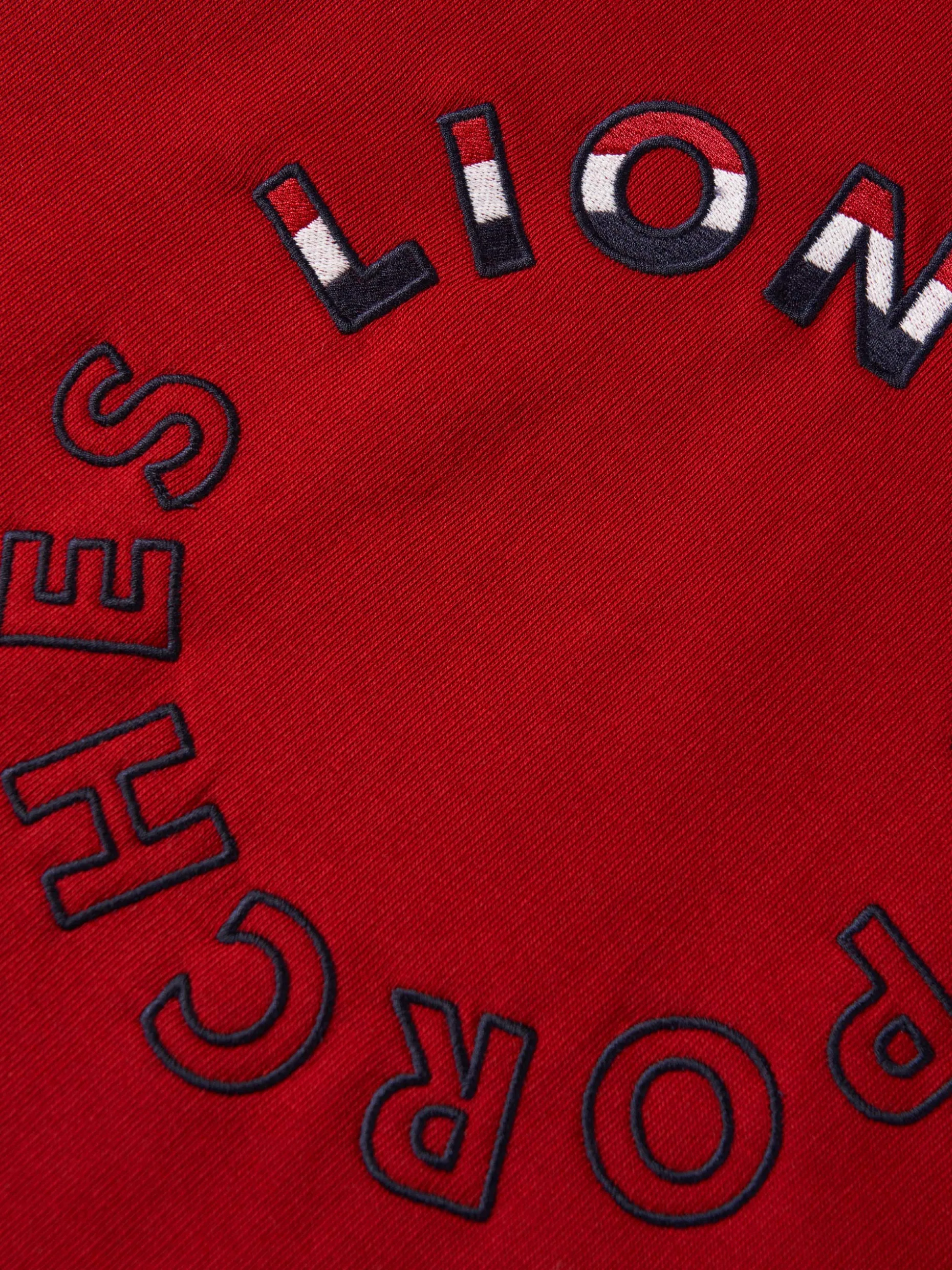 Um essencial num guarda-roupa descontraído e confortável, esta sweater de manga comprida tem capuz ajustável e bordado Lion of Porches na frente. A base e punhos são canelados. É confecionada, na totalidade, em algodão.