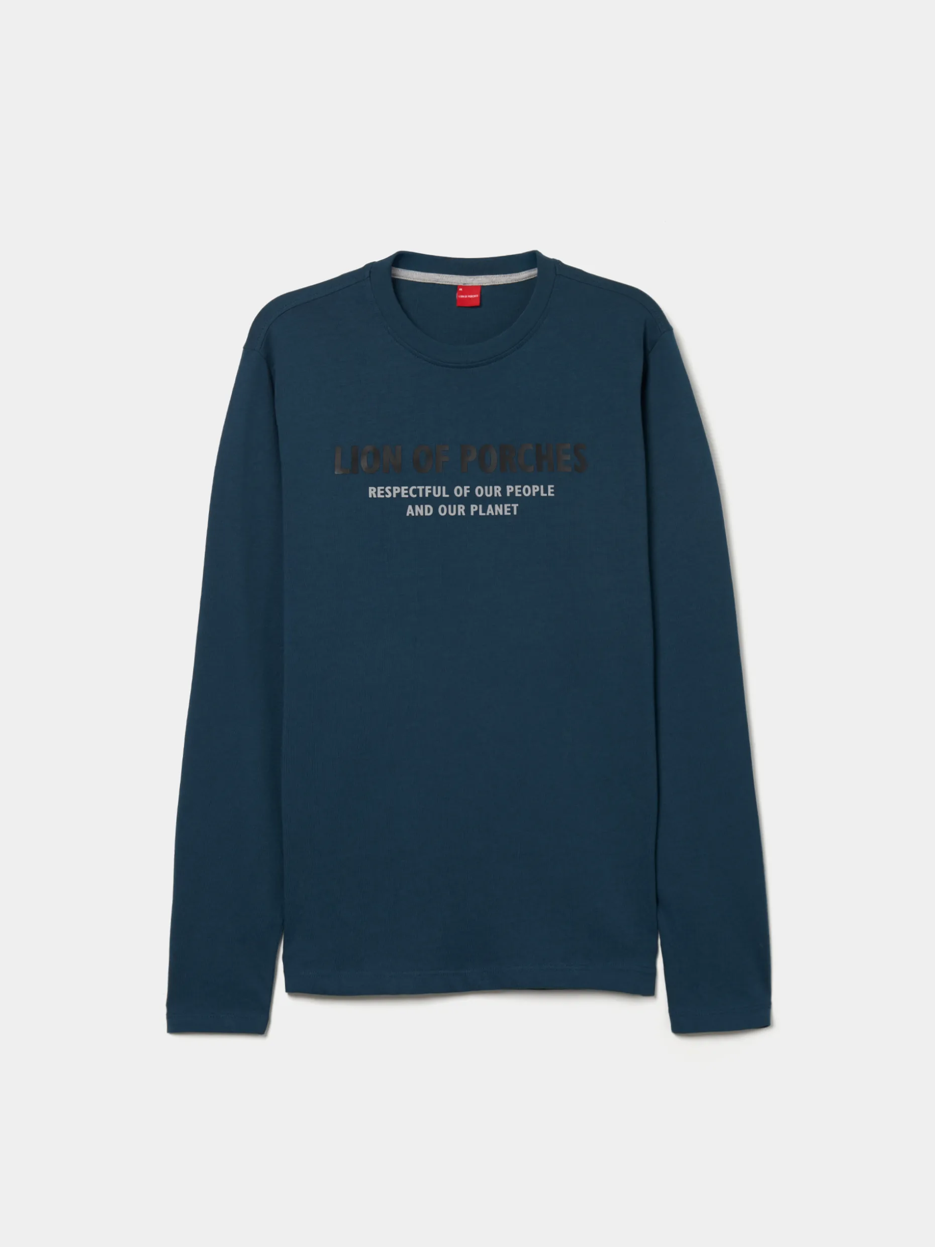Sweater de manga comprida, com mensagem estampada no peito. Disponível em várias cores, é confecionada na totalidade em algodão para maior conforto e suavidade.
