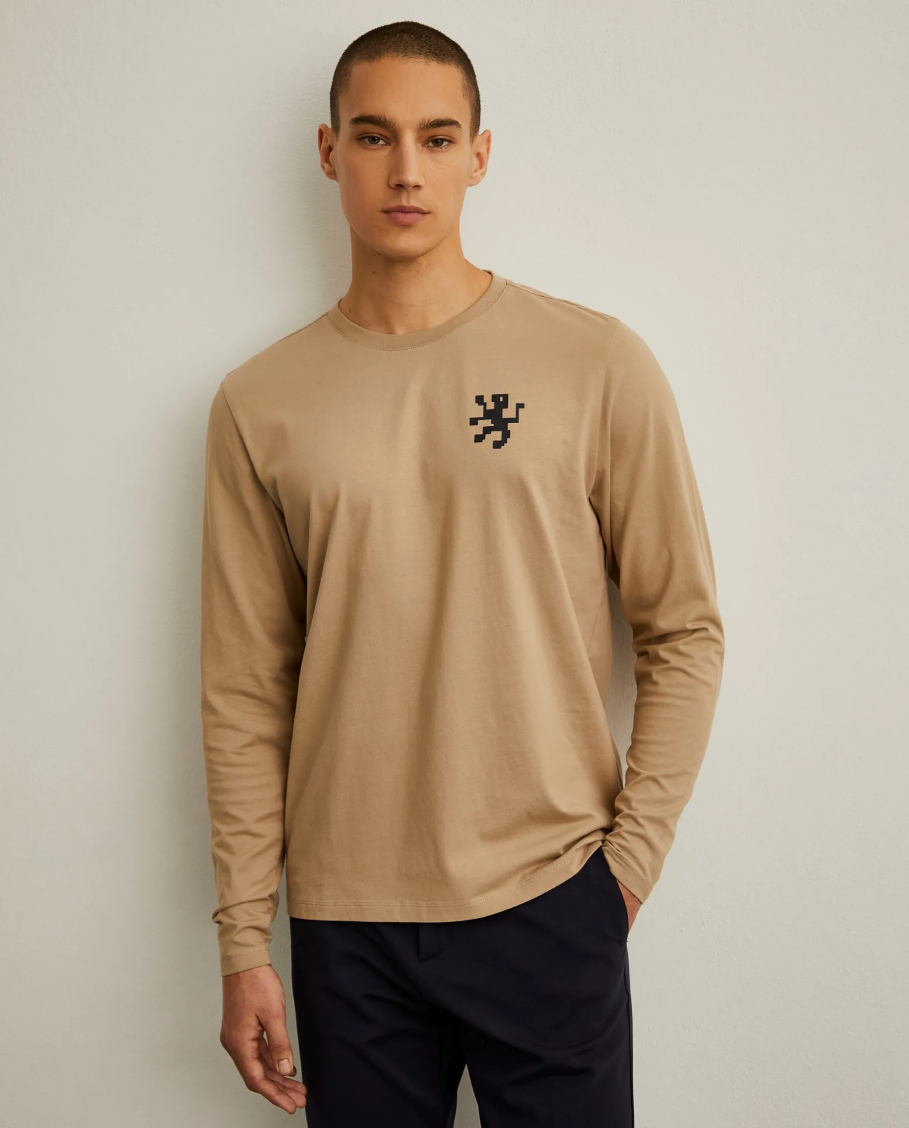 Opte por um look mais descontraído com esta sweater de manga comprida confecionada em algodão. O decote é redondo e finaliza com leão da marca no peito em contraste de cor.