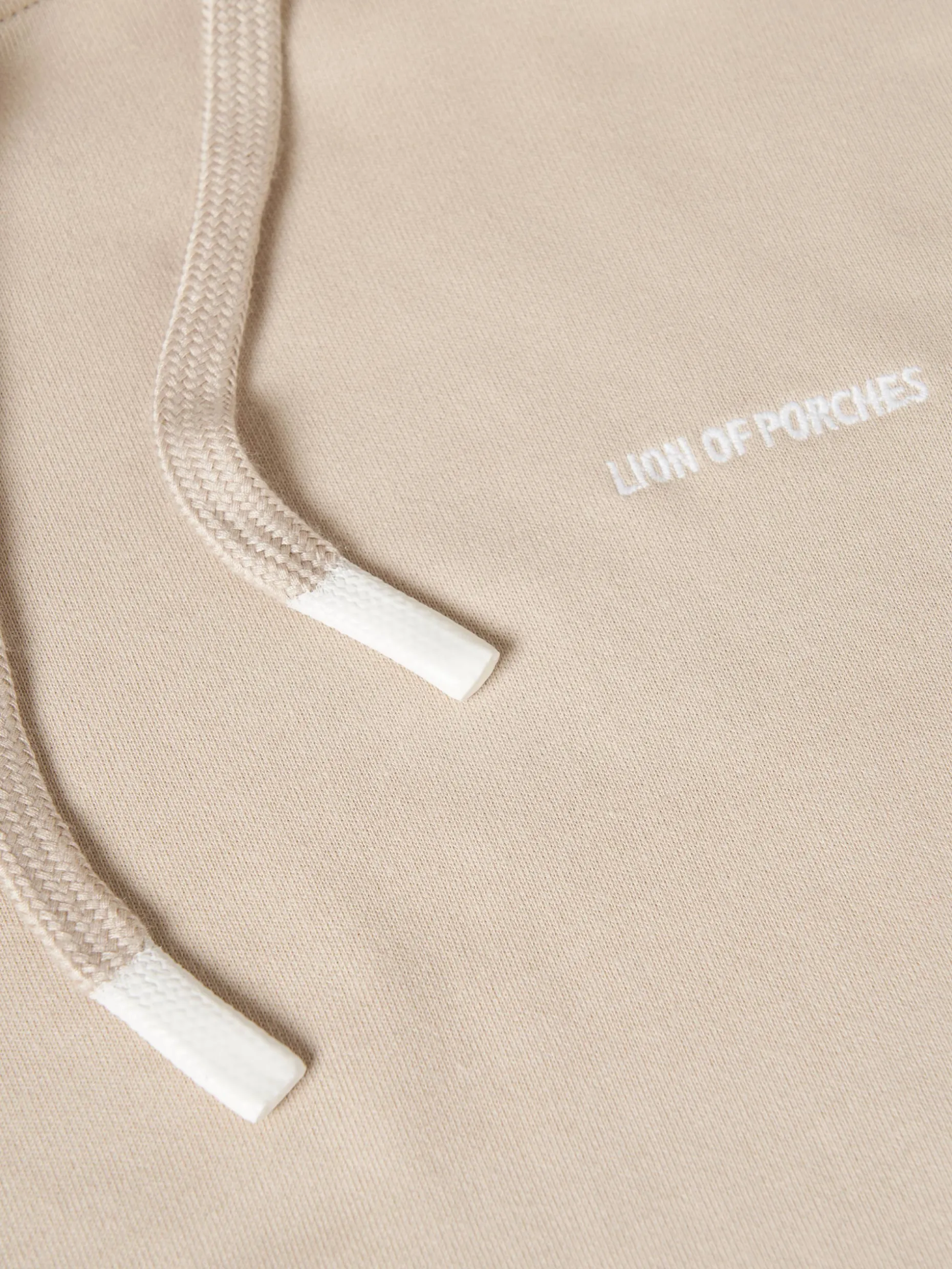 Sweater de manga comprida com capuz ajustável por cordão. A base e punhos são canelados e finaliza com branding Lion of Porches no peito. Disponível em três cores, todas em tons pastel, perfeitas para o verão.