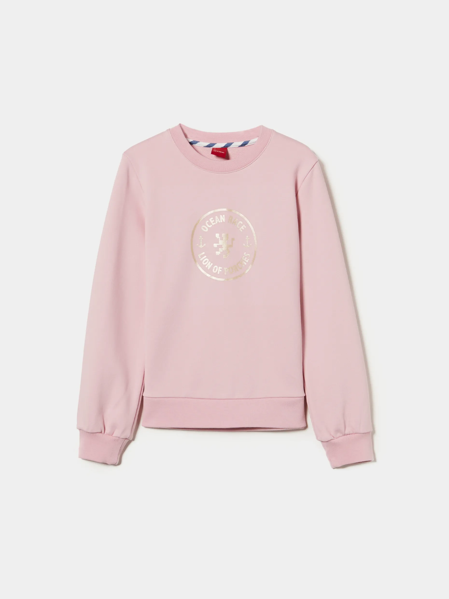 Sweater de manga comprida, com gola redonda, e estampado Lion of Porches em contraste na frente. A base, gola e punhos são canelados Disponível em várias cores.