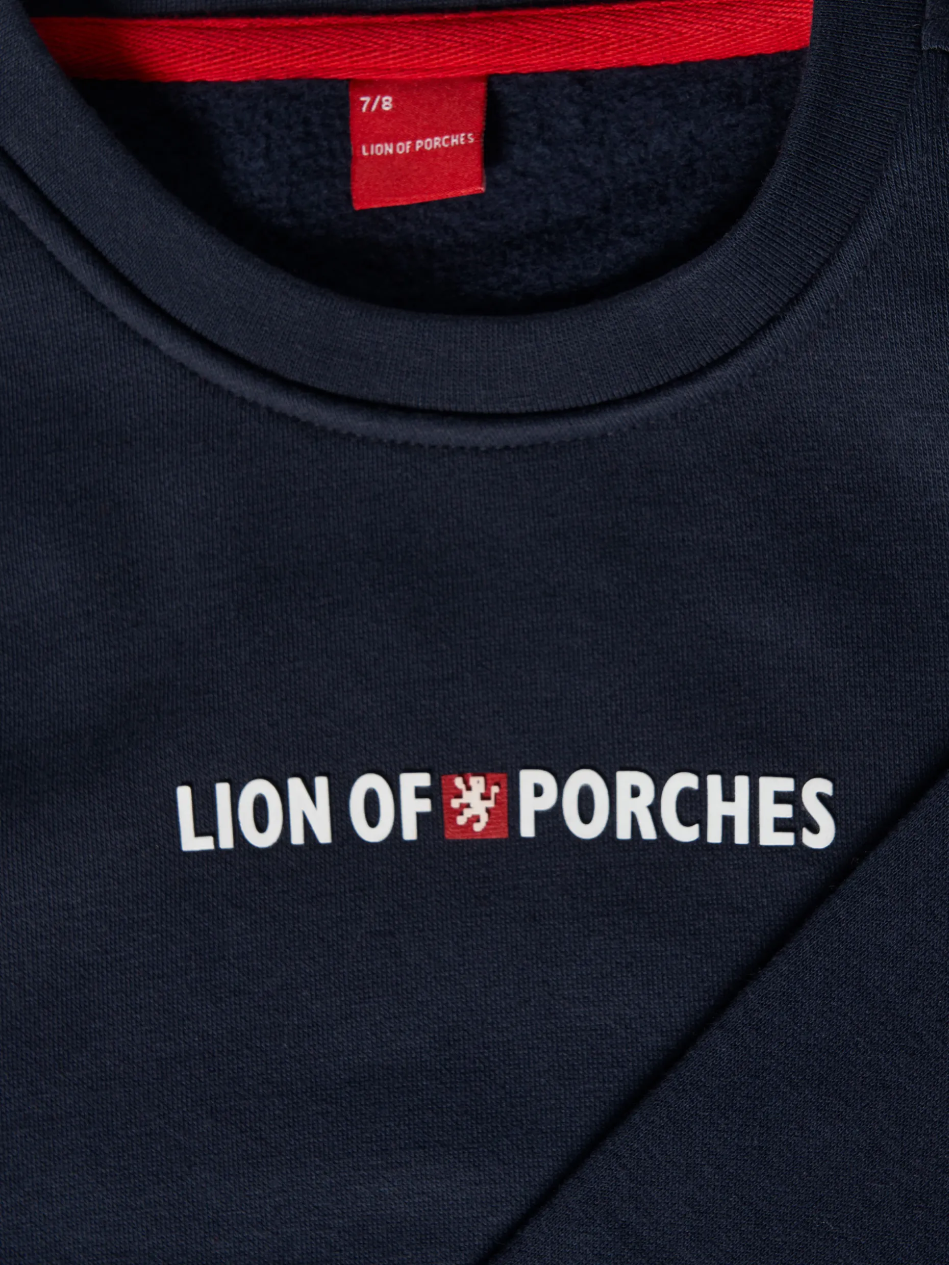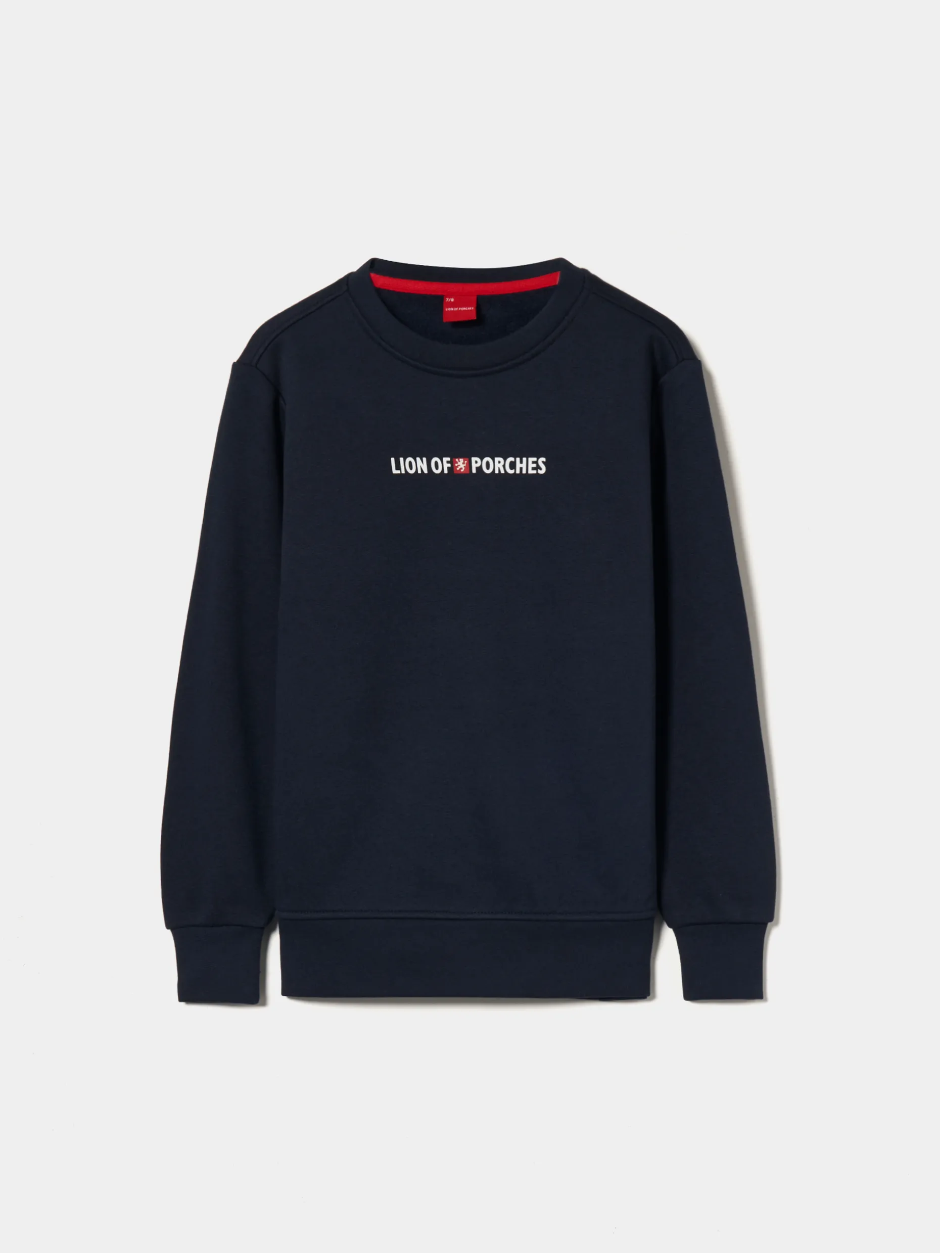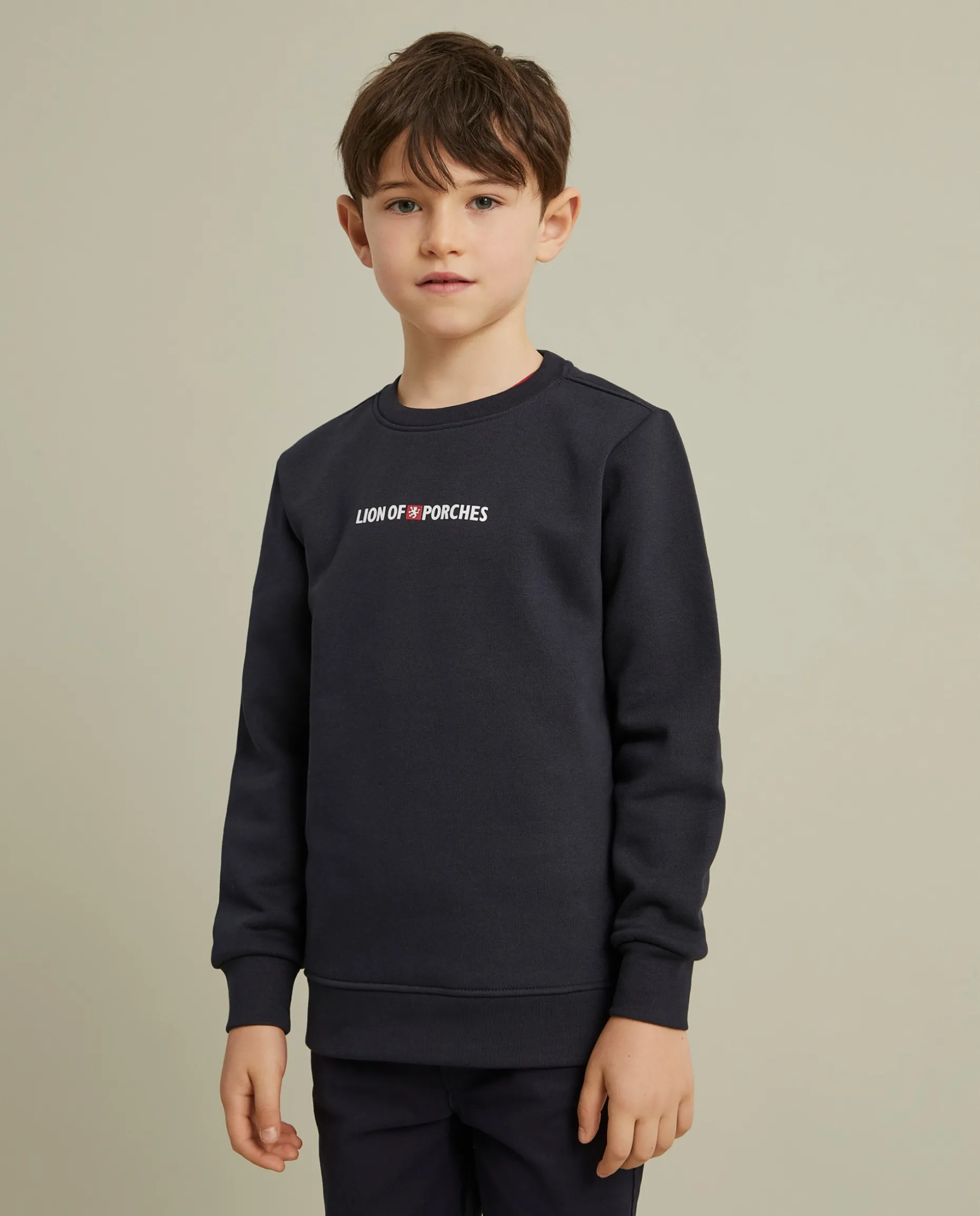 Perfeita para o dia-a-dia dos miúdos, esta sweater de manga comprida tem cor lisa e decote redondo. É cardada por dentro para maior conforto e tem o logotipo Lion of Porches em contraste na frente.