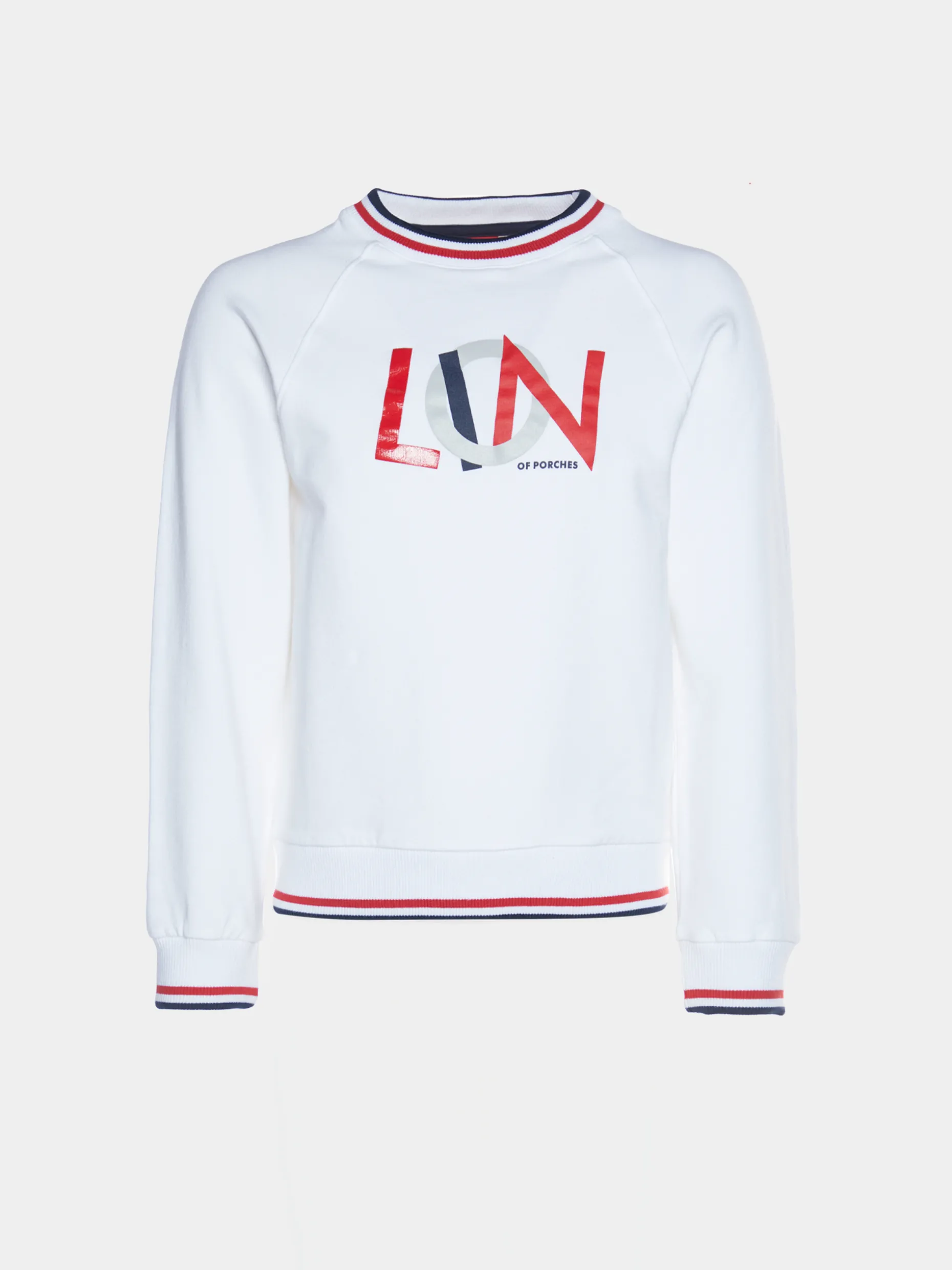Sweatshirt de manga comprida com estampado Lion of Porches na frente em contraste. Gola, punhos e fundo em rib e com riscas em contraste.