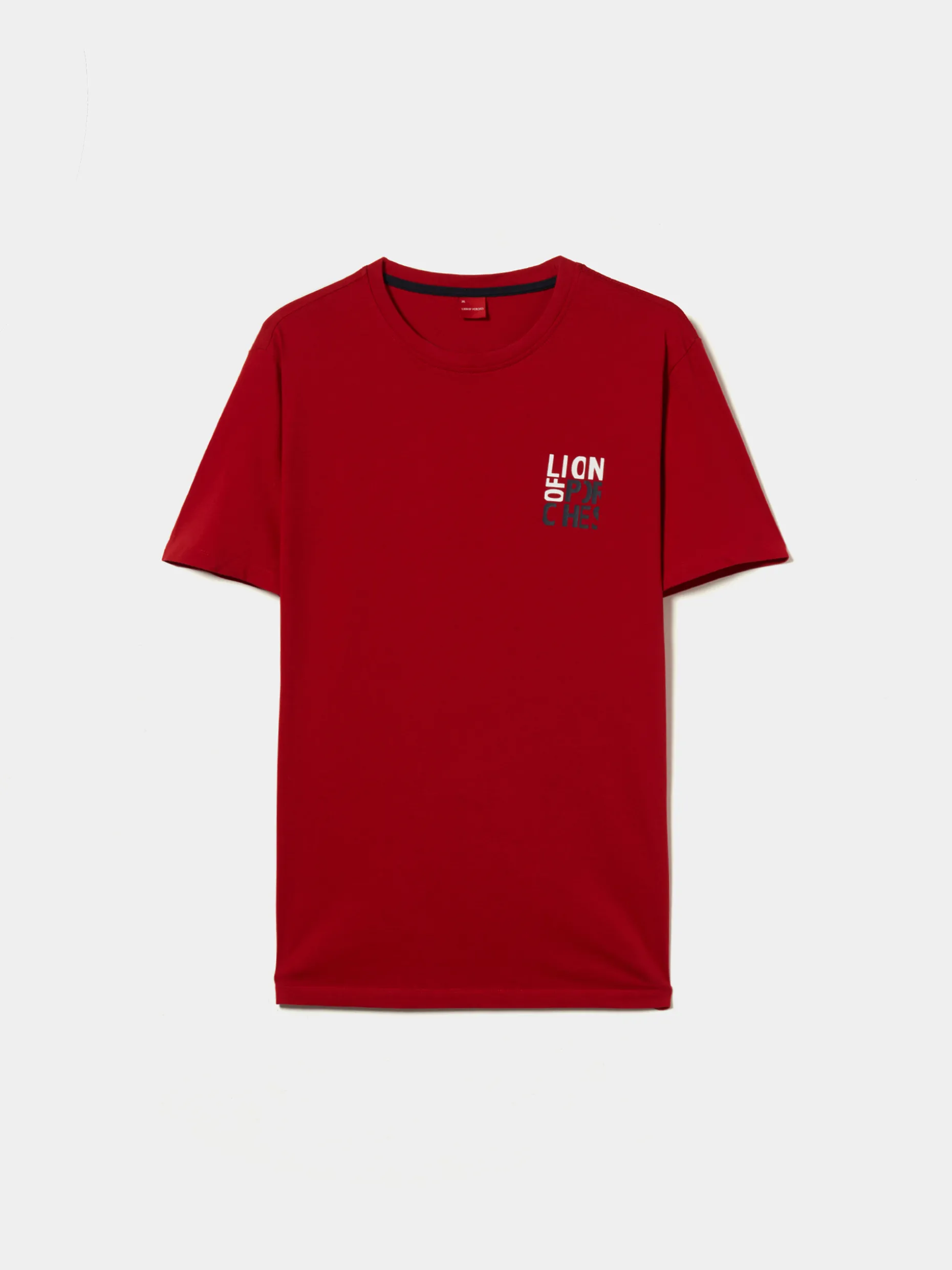 T-shirt básica, de manga curta, com estampado da marca em contraste no peito. Confecionada, na totalidade, em algodão para maior conforto e suavidade.