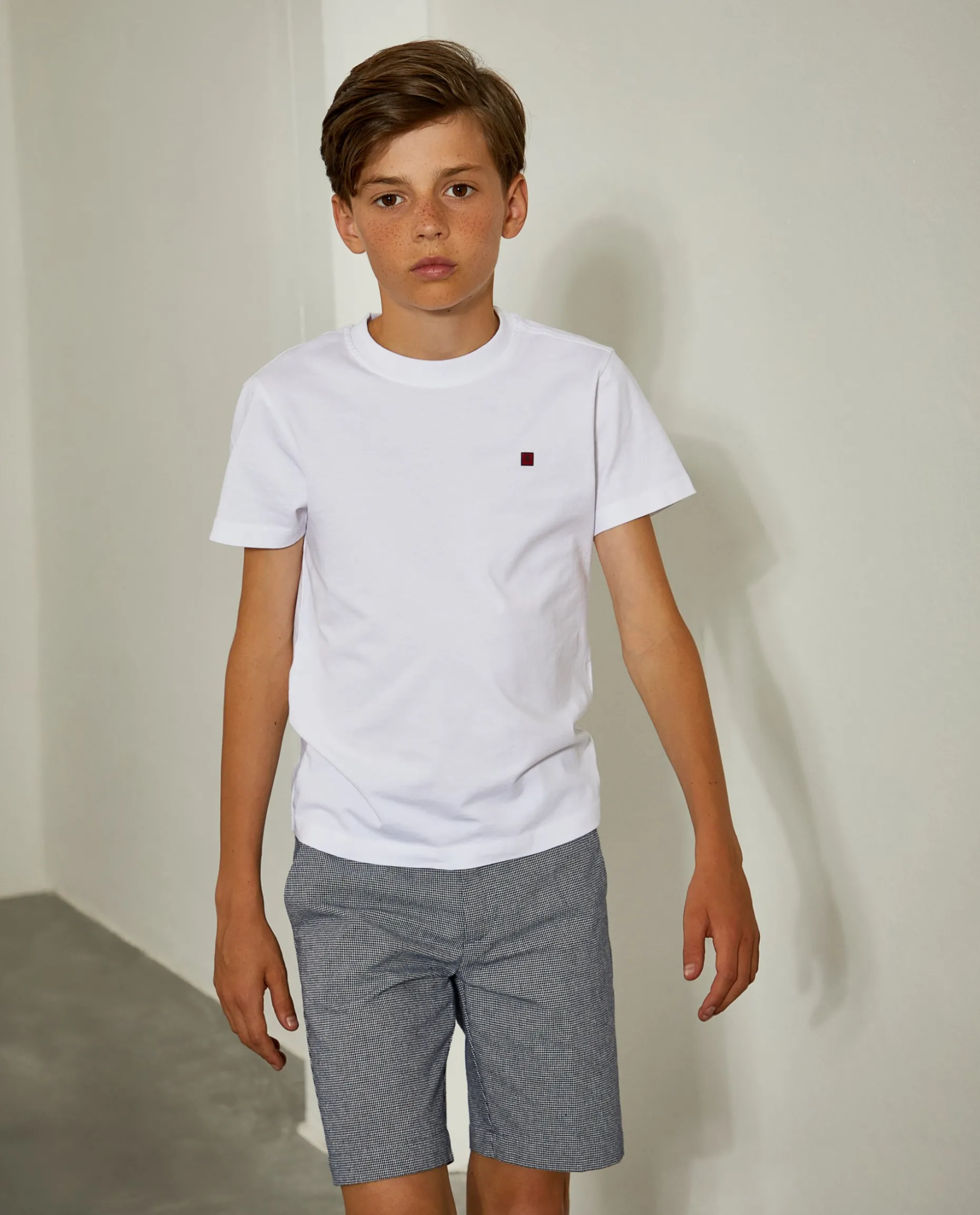 Um indispensável no guarda-roupa dos miúdos para o dia-a-dia ou brincadeiras sem fim. Esta t-shirt básica é confecionada, na totalidade, em algodão para maior conforto. De manga curta e gola redonda canelada, finaliza com pequeno leão da marca em contraste no peito. Está disponível em várias cores.