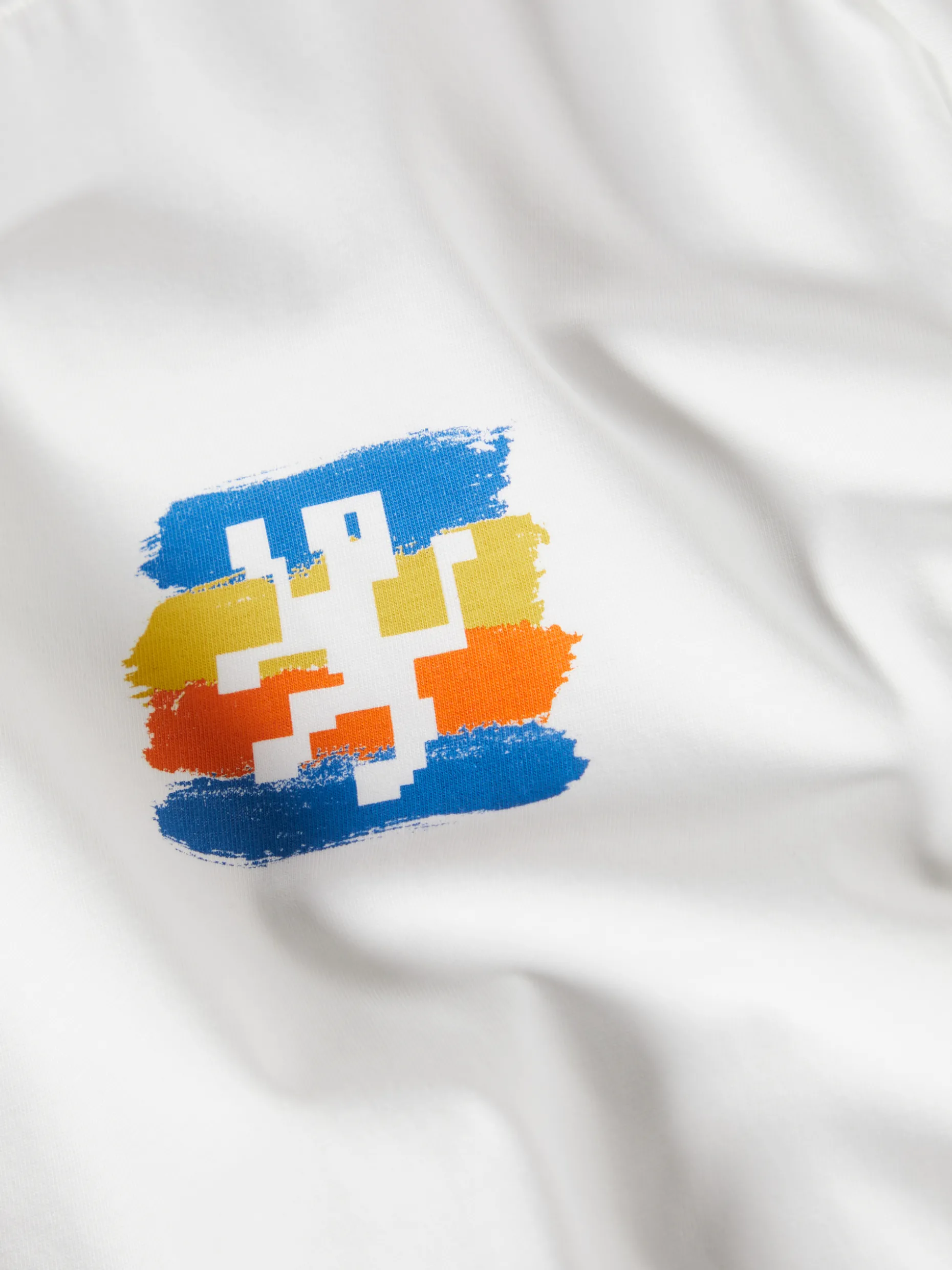 T-shirt de manga curta com leão da marca estampado no peito sobre riscas coloridas. De gola redonda. É confecionada, na totalidade, em algodão para maior conforto e suavidade.