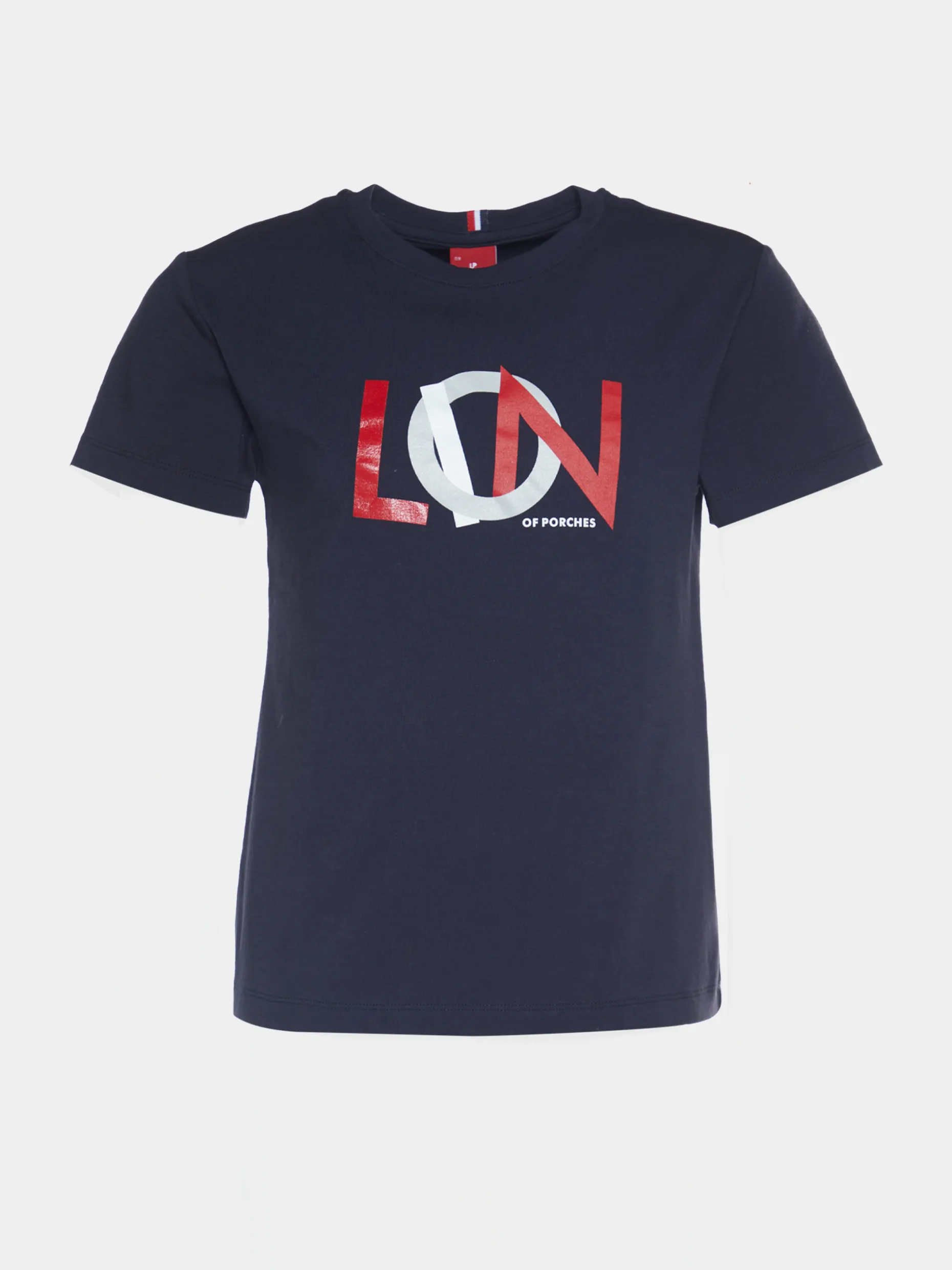 T-shirt de manga curta com estampado Lion of Porches na frente em contraste. Detalhe da fita de riscas tricolor na parte de trás da gola.