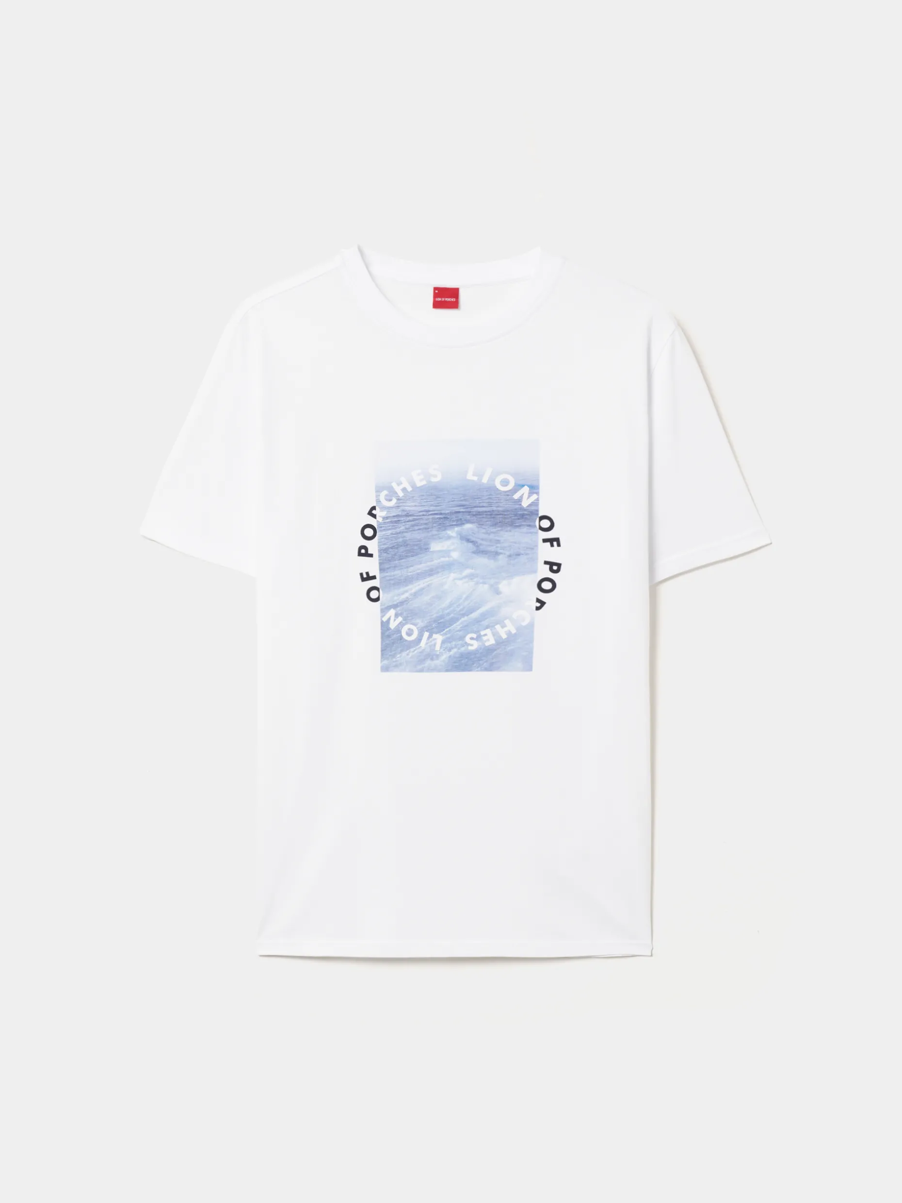 T-shirt de manga curta, em algodão, com estampado e branding Lion of Porches em contraste na frente. Gola redonda.