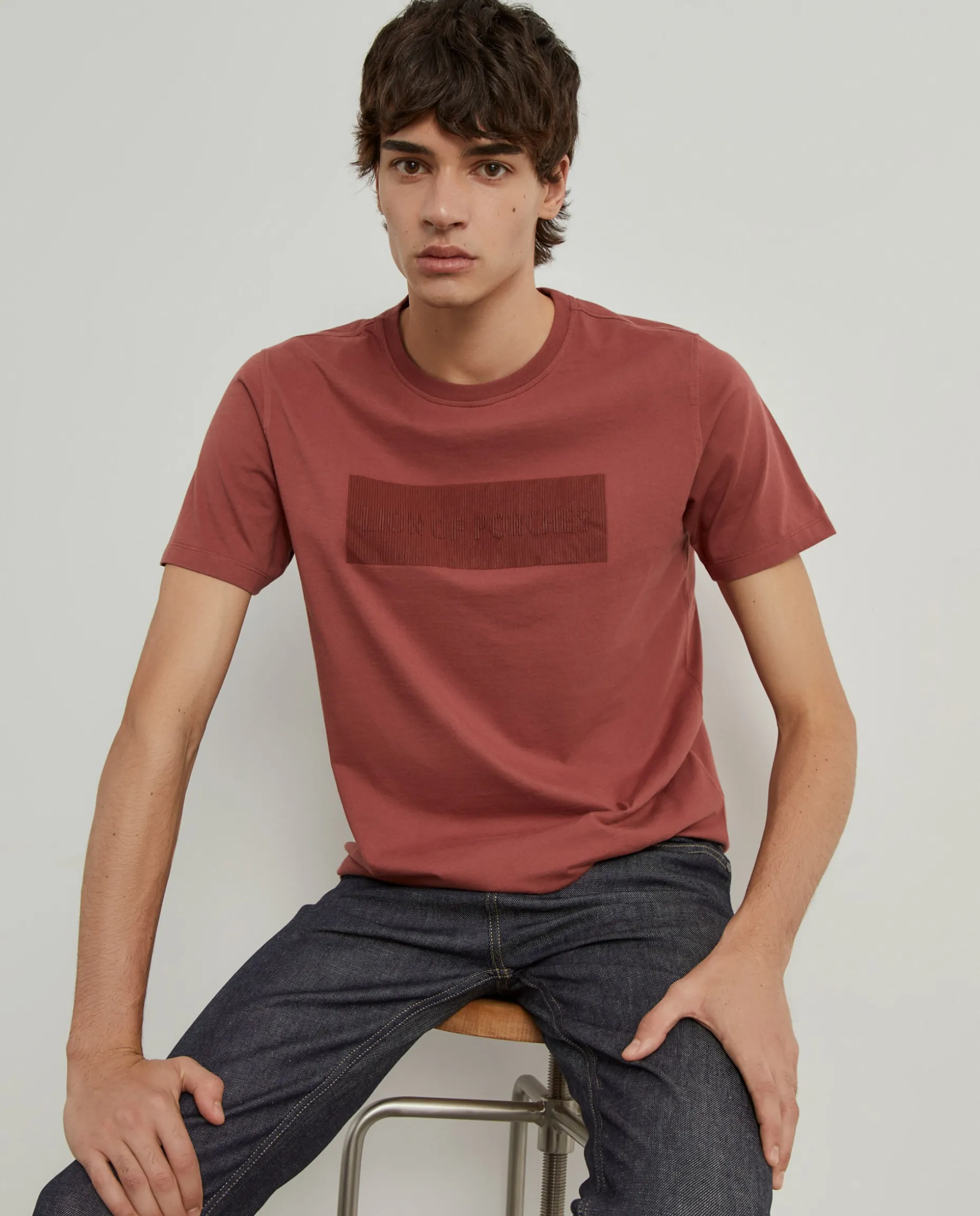 T-shirt de manga curta com estampado Lion of Porches com relevo na frente num tom mais escuro. De decote redondo canelado.