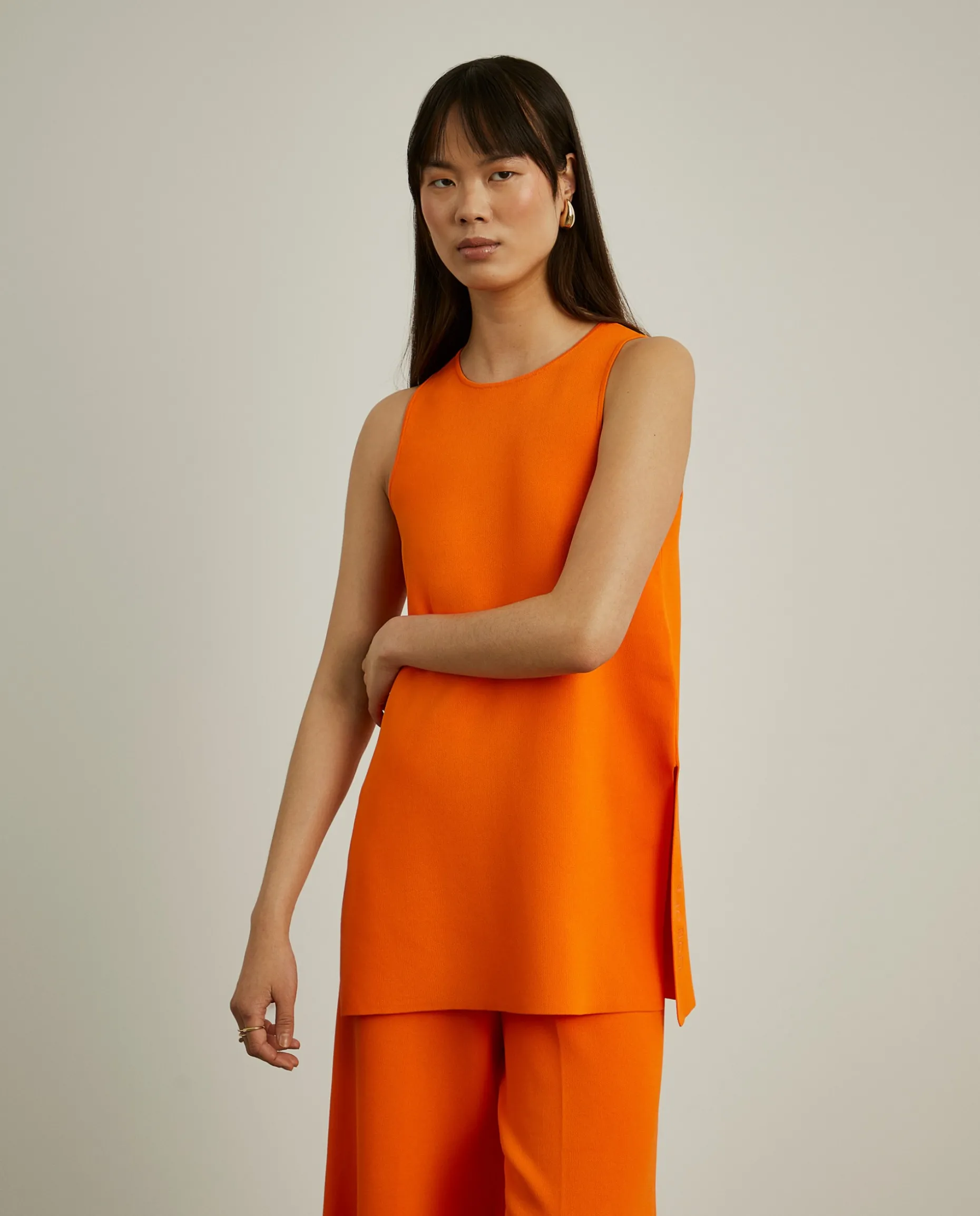 Top de malha, estilo túnica, com manga cava. Com aberturas laterais de lado e branding Lion of Porches em relevo de um dos lados. Para um total look, veja também as calças da mesma coleção.